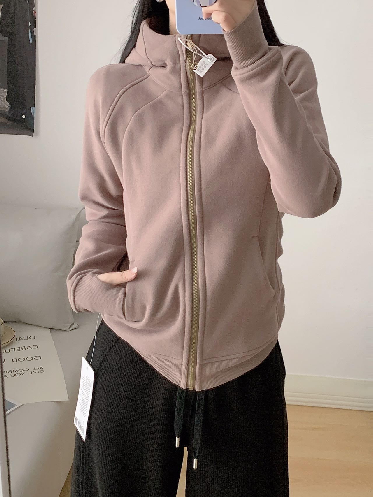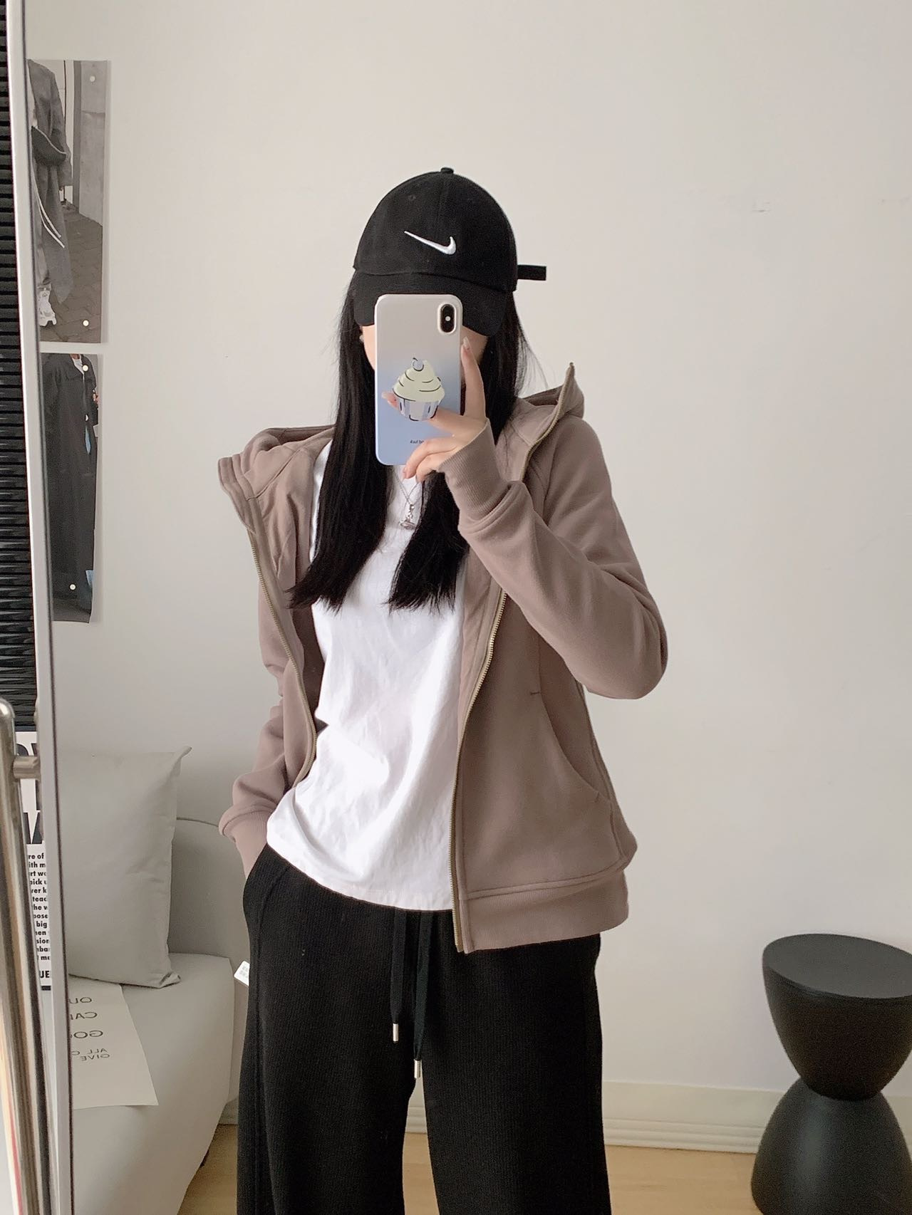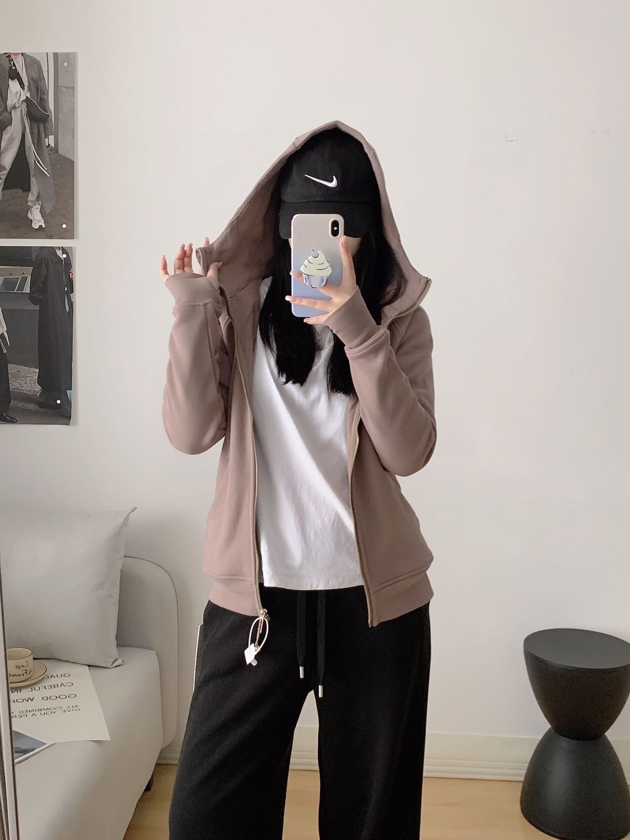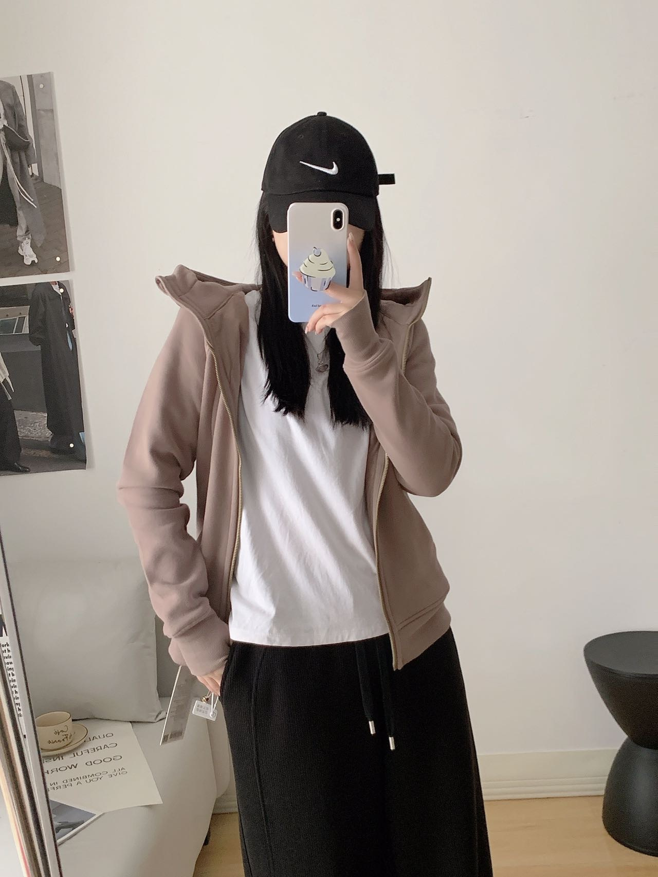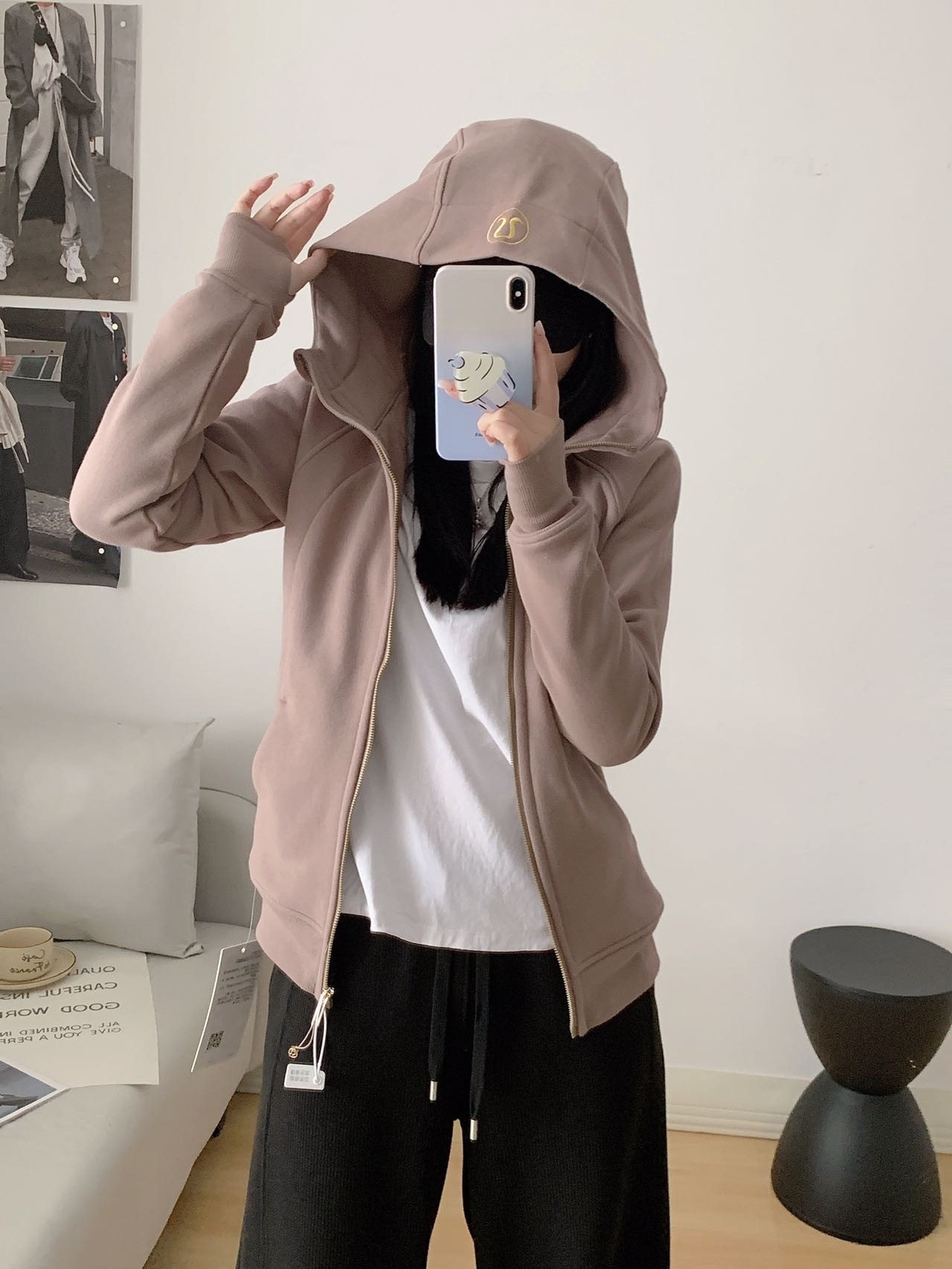 修身版scuba拉链帽衫,长度到约到臀部的位置,显身材高挑纤细~