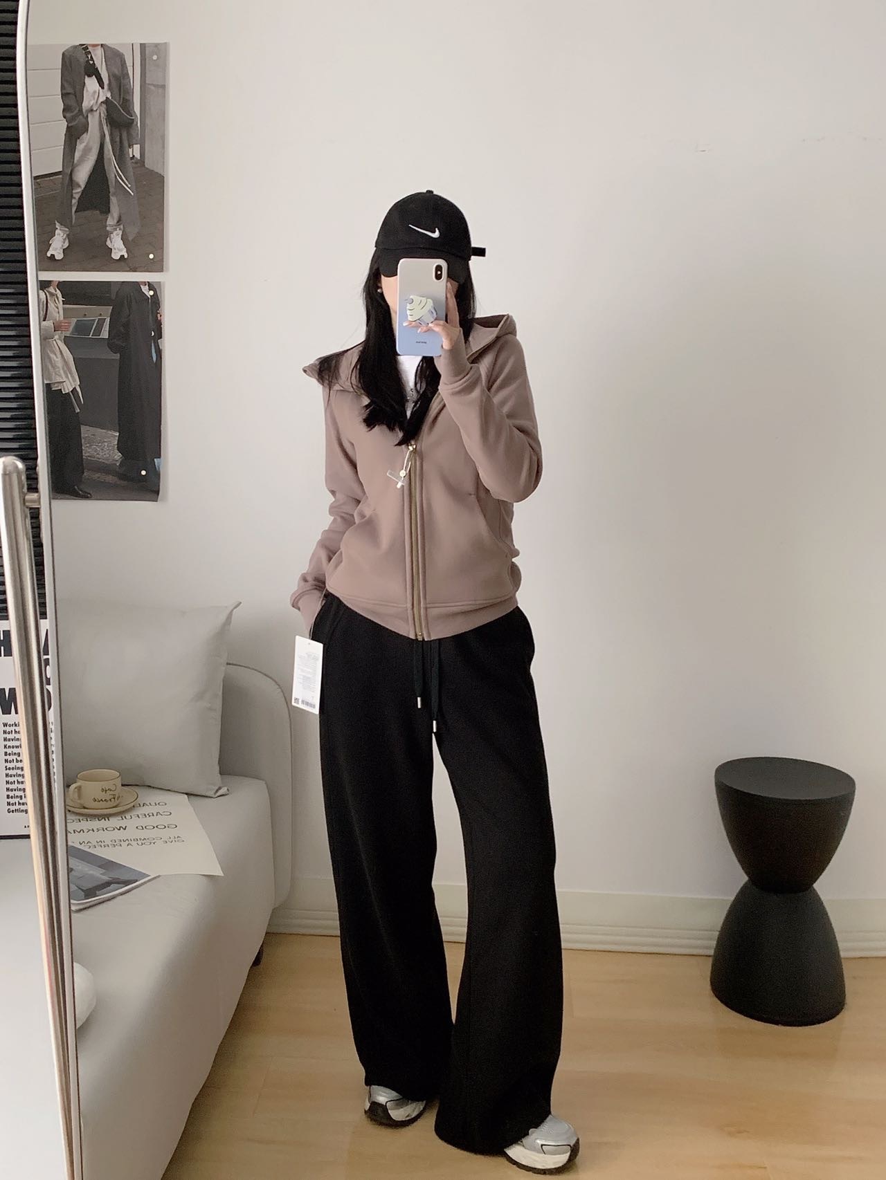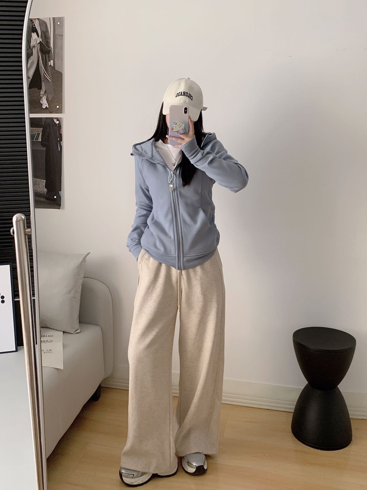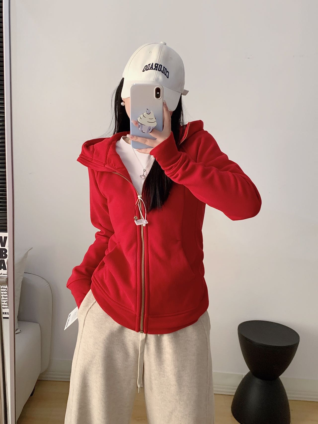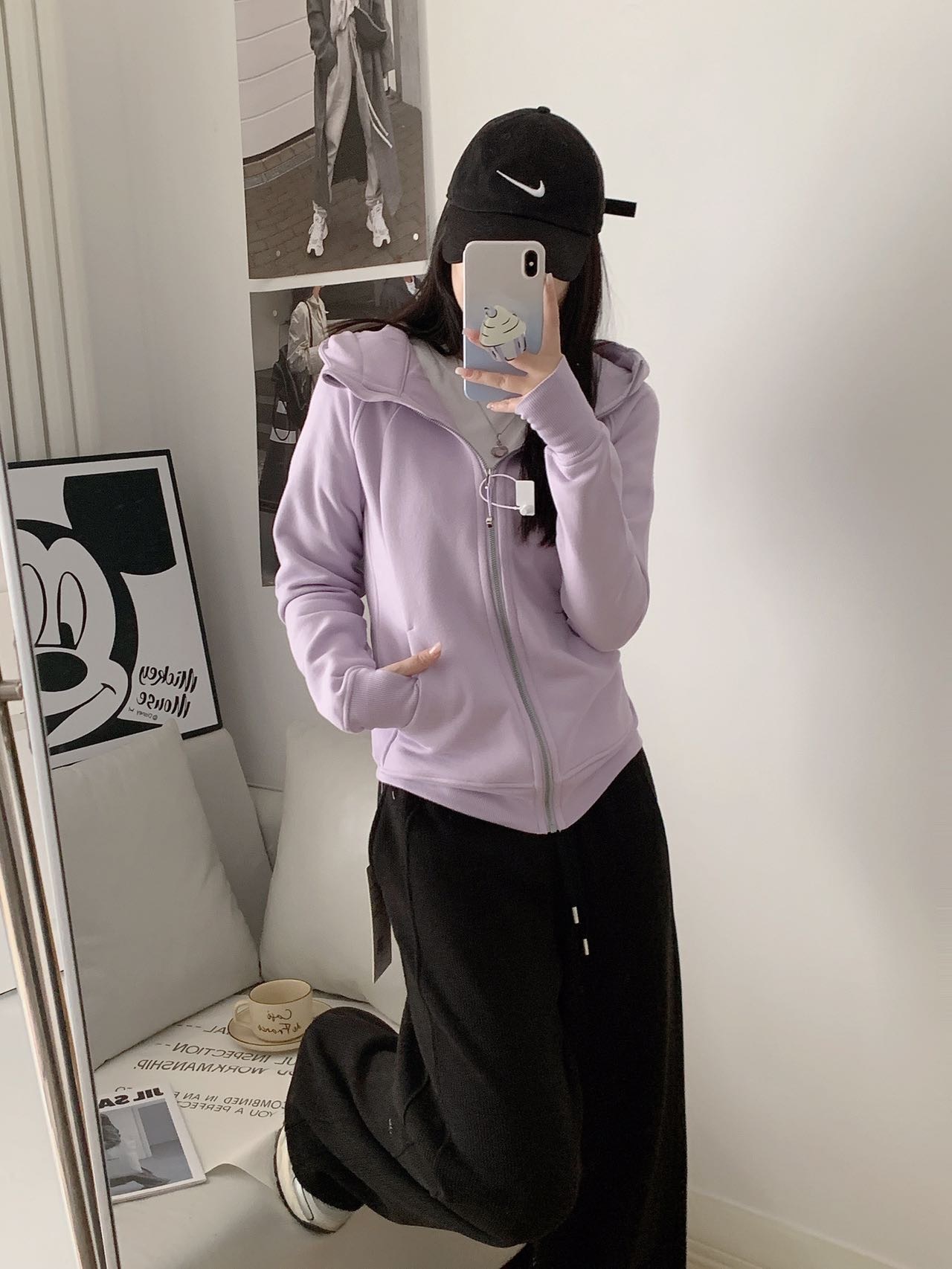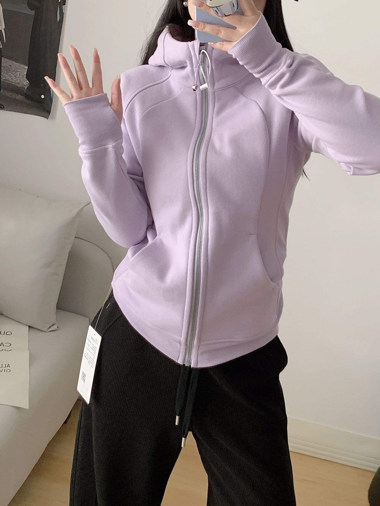 修身版scuba拉链帽衫,长度到约到臀部的位置,显身材高挑纤细~