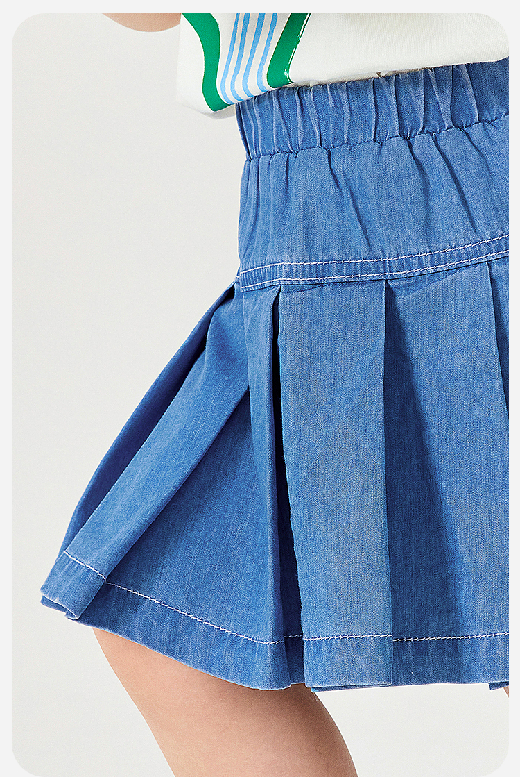 【UPF50+】迷你巴拉短裙女童凉感抑菌防晒软牛仔百褶裙夏季