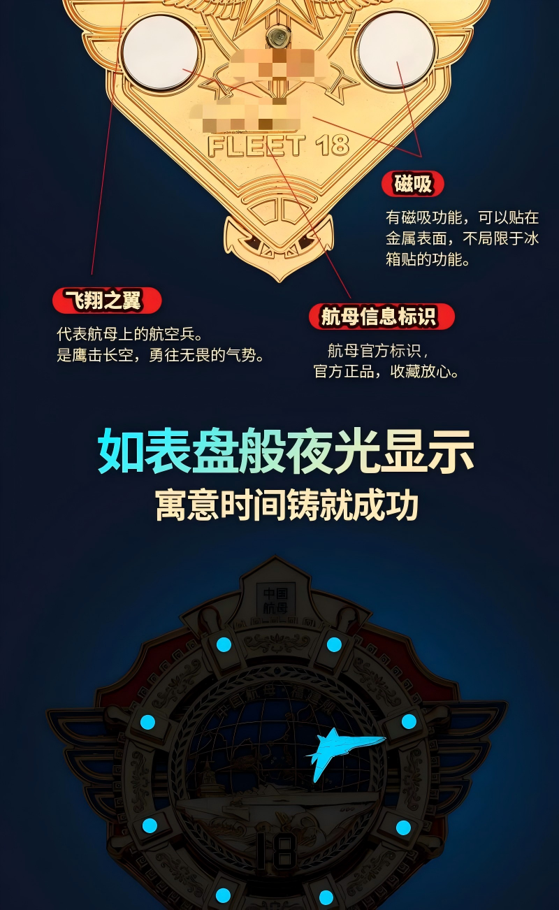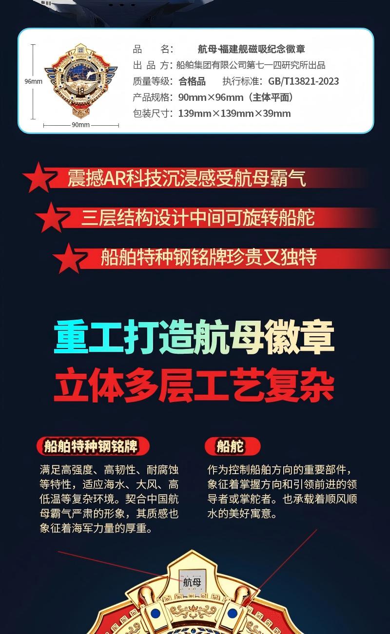 【预售7天发货】中船研究所出品【航母·福建舰磁吸纪念徽章】周彦君大师设计,立体多层工艺+可旋转船舵+夜光设计