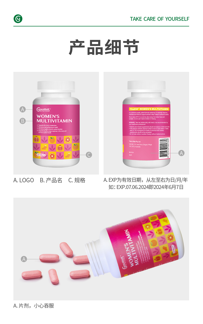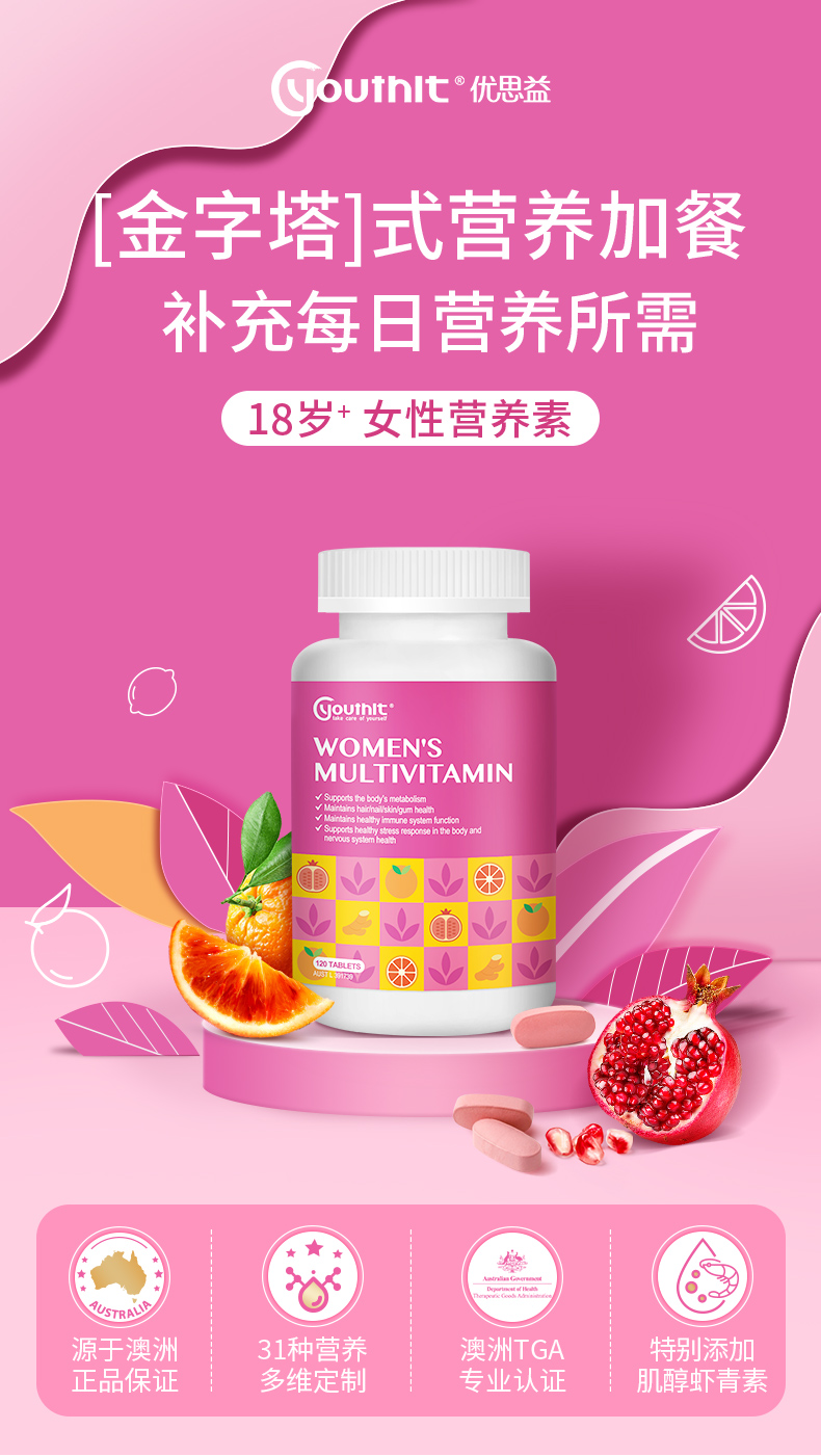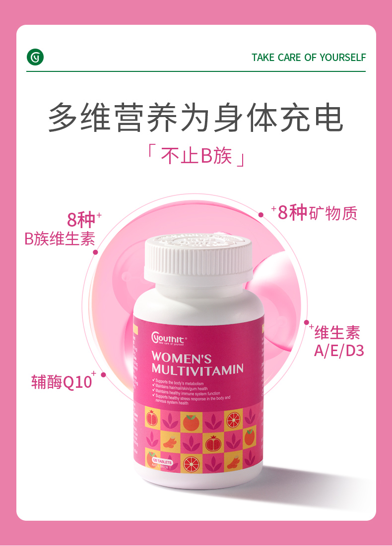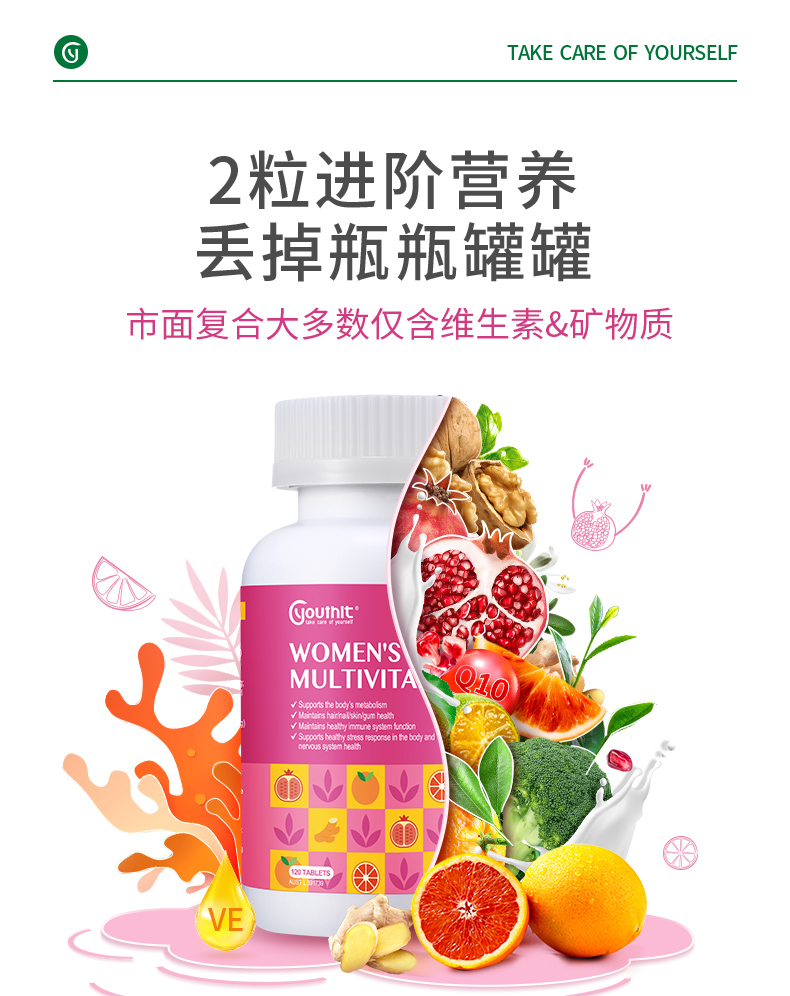 Youthit优思益女性多种复合维生素120片防脱发 抗氧化
