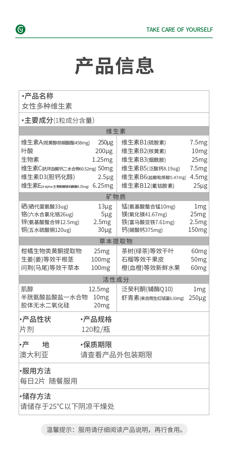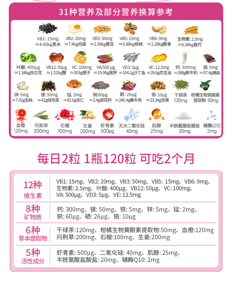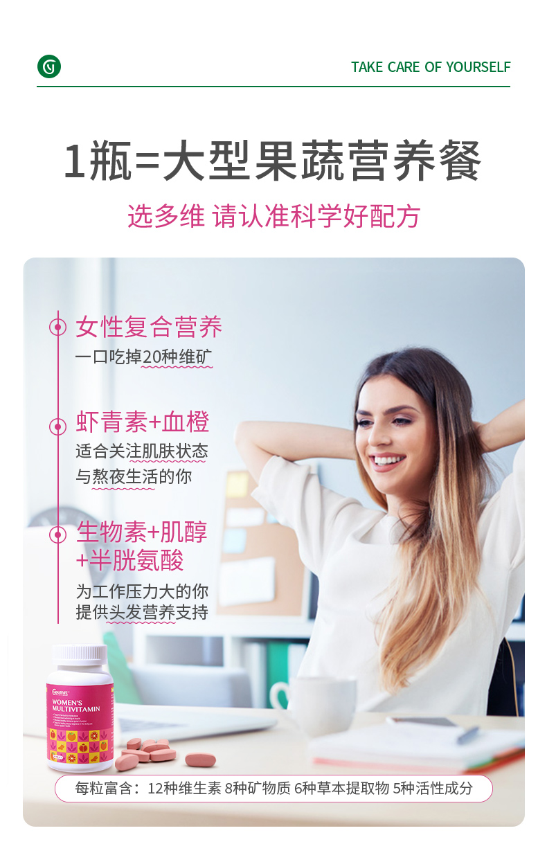 Youthit优思益女性多种复合维生素120片防脱发 抗氧化