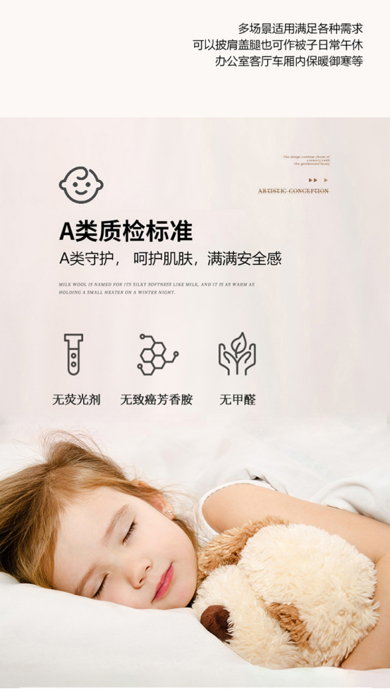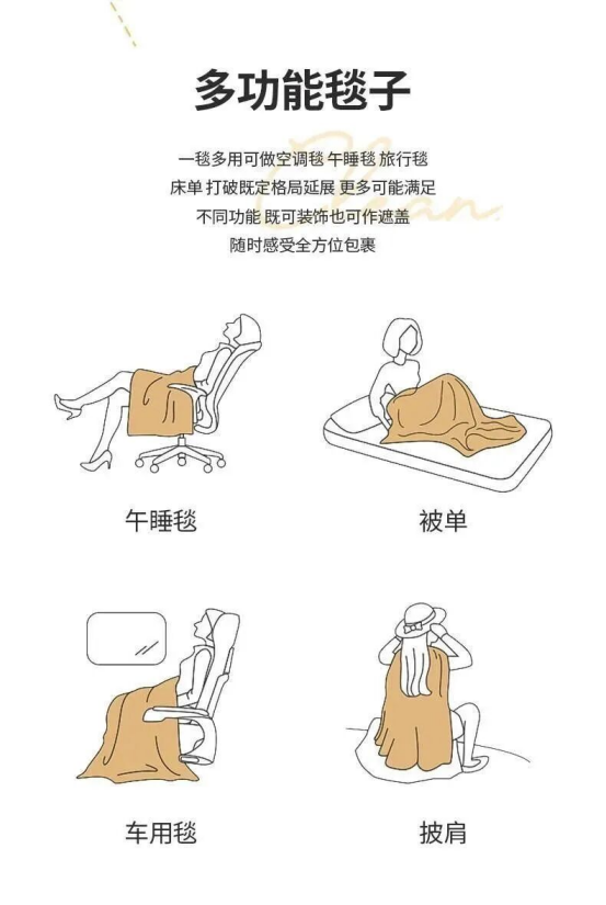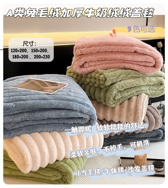 这样一款柔软舒适可以四季使用性价比还奇高的牛奶绒毛毯 是一款全家人都适用的毯子非常非常推荐大家购买 9色可选·4个尺寸 学生宿舍里·上班族的办公室、自驾车子里、·露营帐篷里、客厅里打盹·熬夜加班披肩 哪哪都能使用!