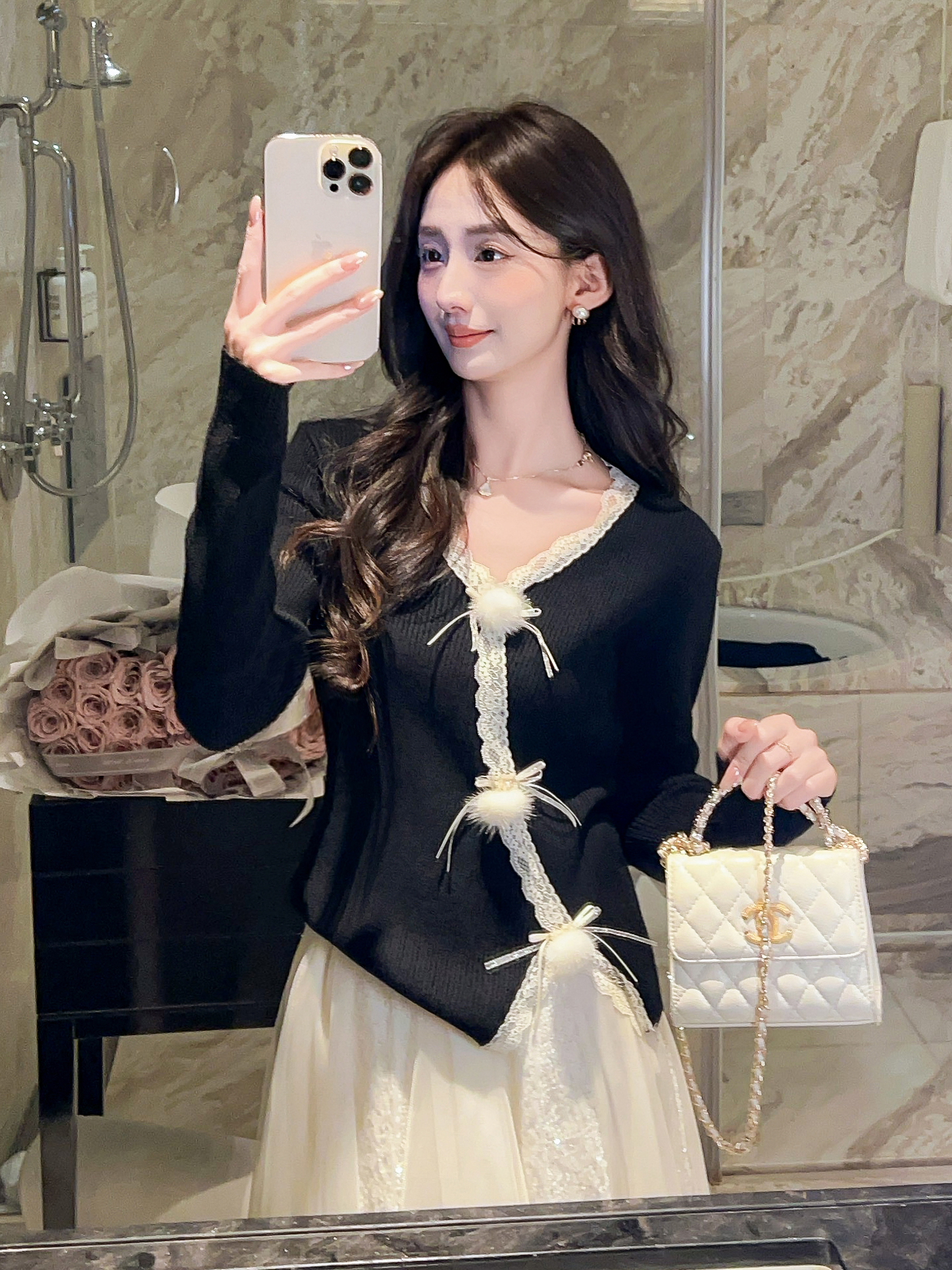 张心子【月光奏鸣】V领蕾丝系带通勤百搭气质衬衫上衣 U2509010