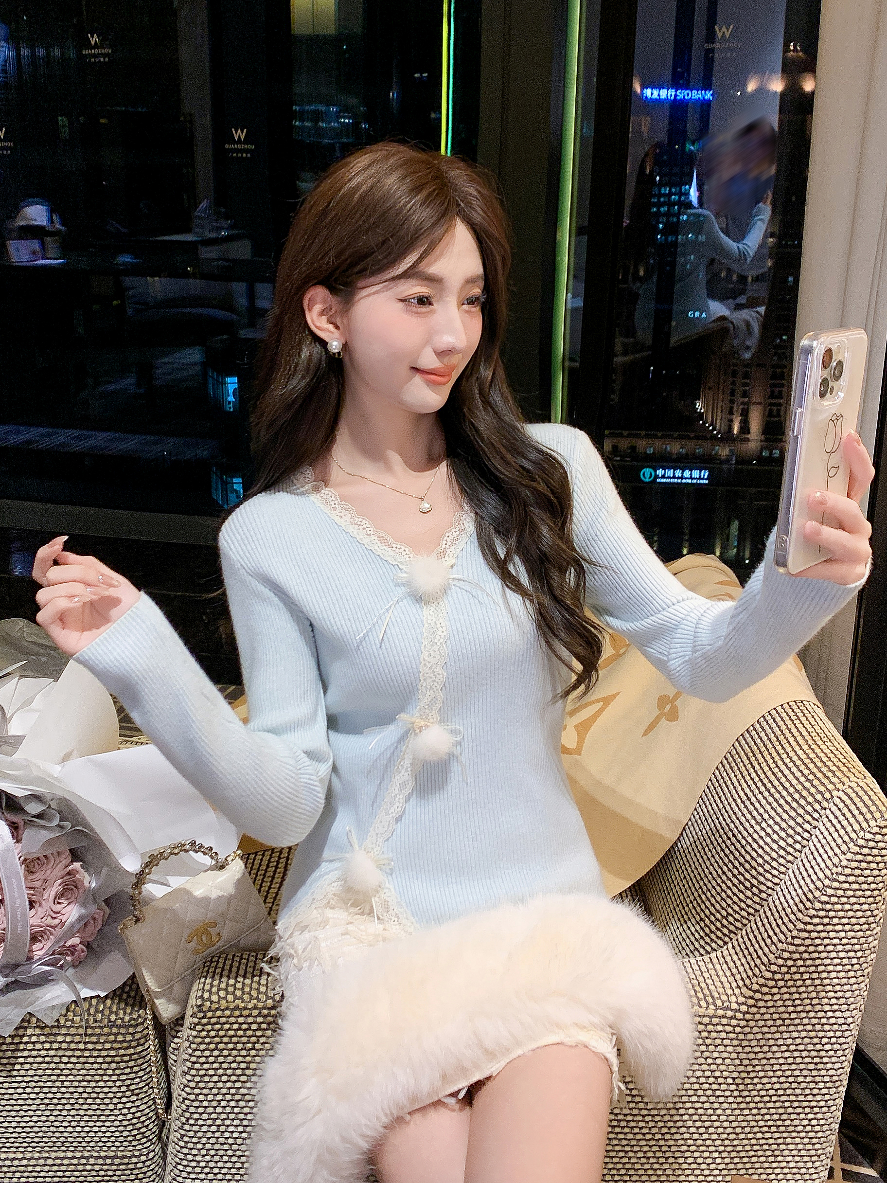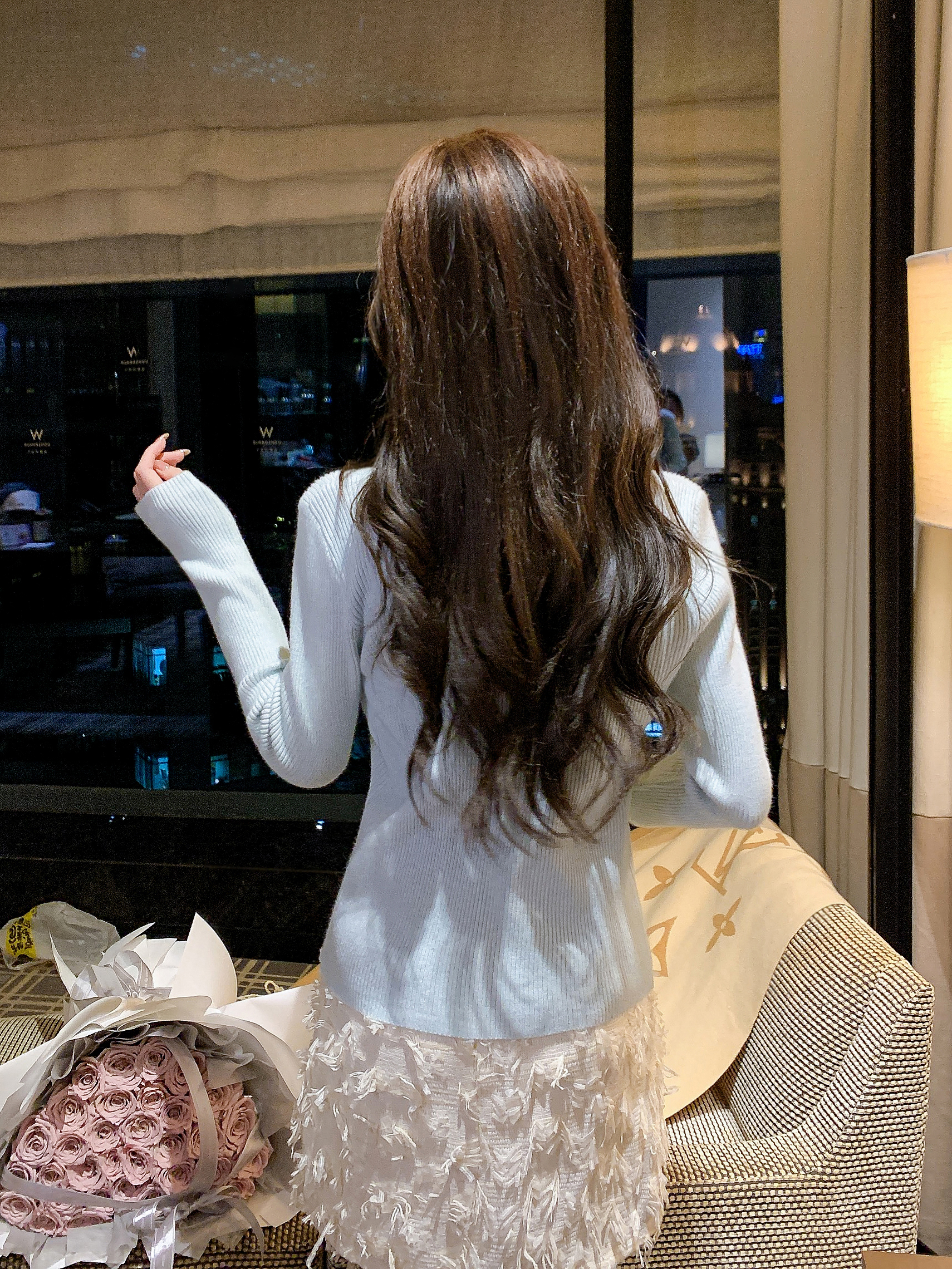 张心子【心动甜心】V领厚实保暖针织衫上衣 U2511087