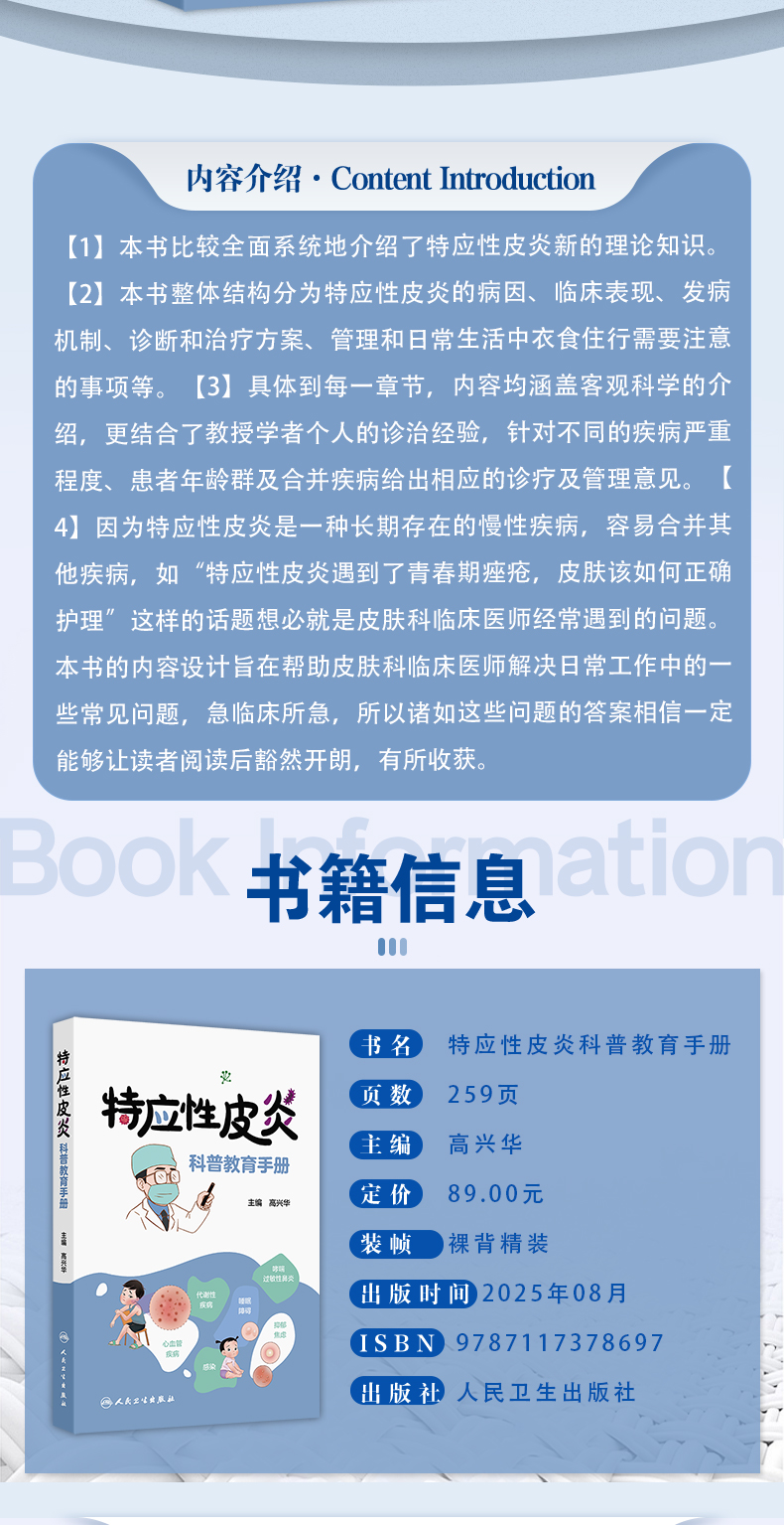 特应性皮炎科普教育手册 高兴华 主编 本书比较全面系统地介绍了特应性皮炎的理论知识 西医 皮肤病学9787117378697人民卫生出版社