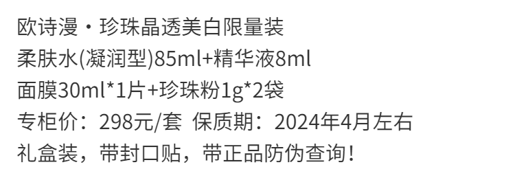 【爆款超低价预售 急单慎拍】欧诗漫珍珠晶透美白护肤品礼盒装