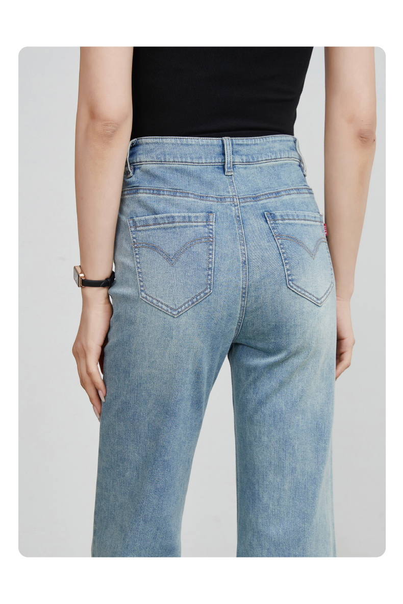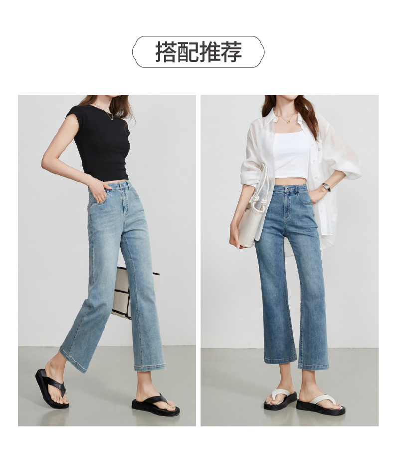 逸阳八分喇叭牛仔裤女2024年夏季新款宽松显瘦小个子微喇裤子1006