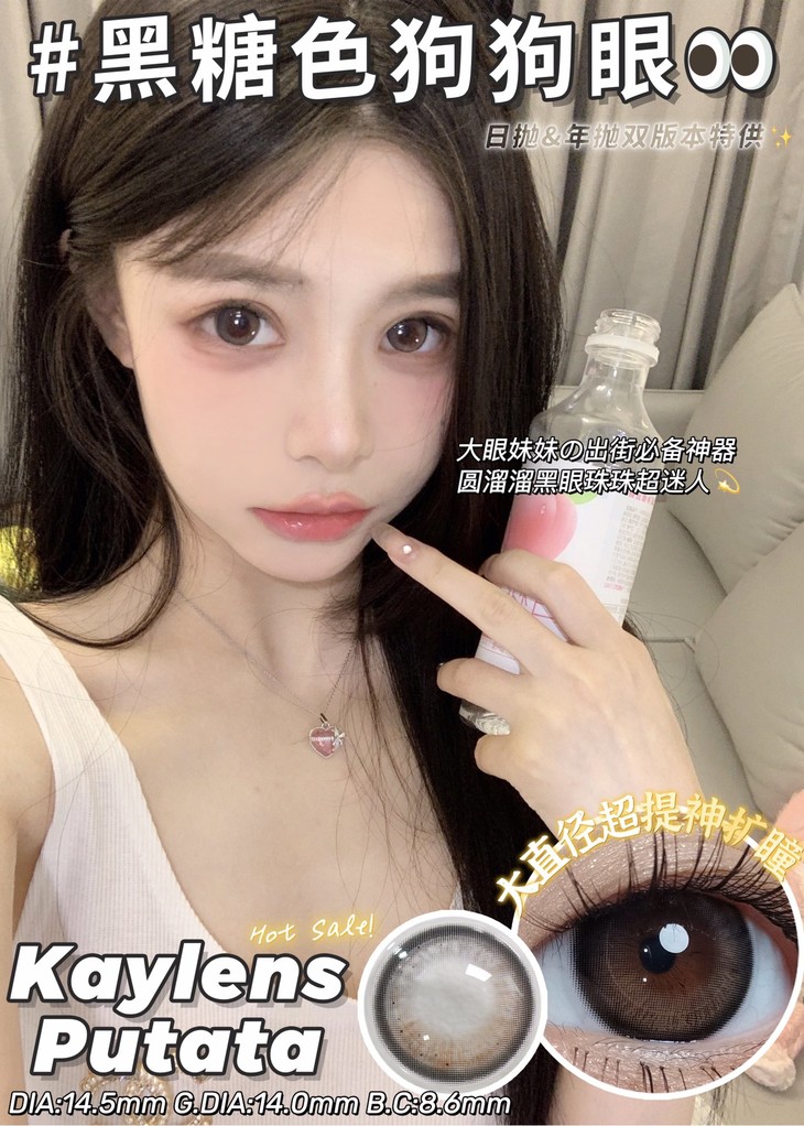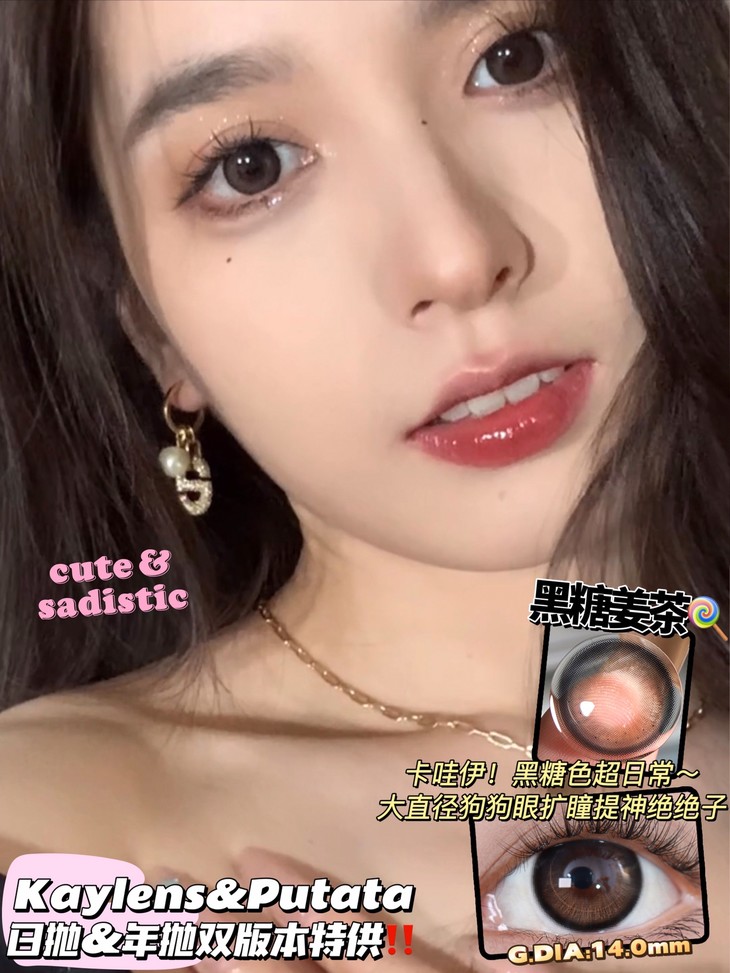 putata 年抛美瞳 黑糖姜茶 直径14.5mm着色14.0mm 0-800度无525/575