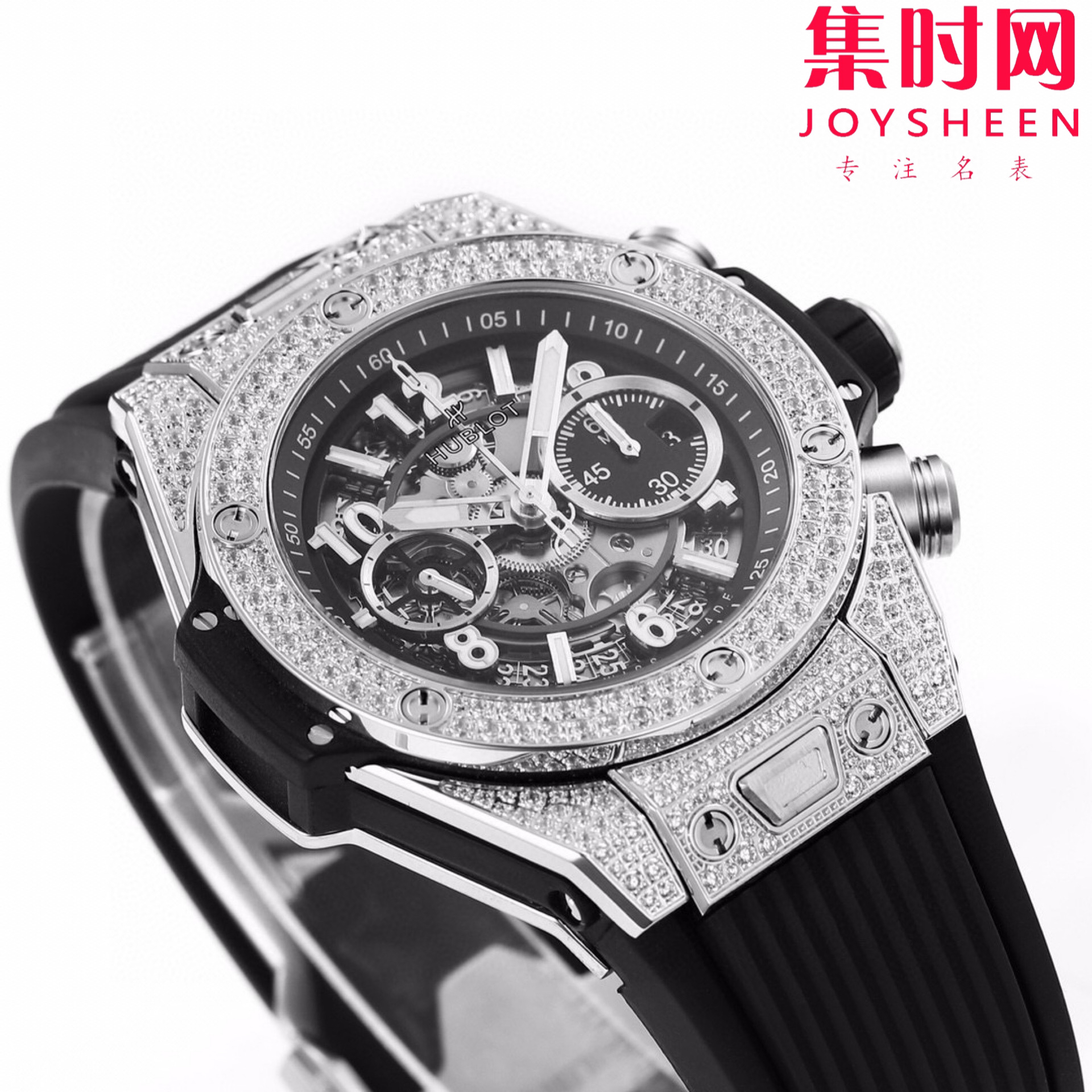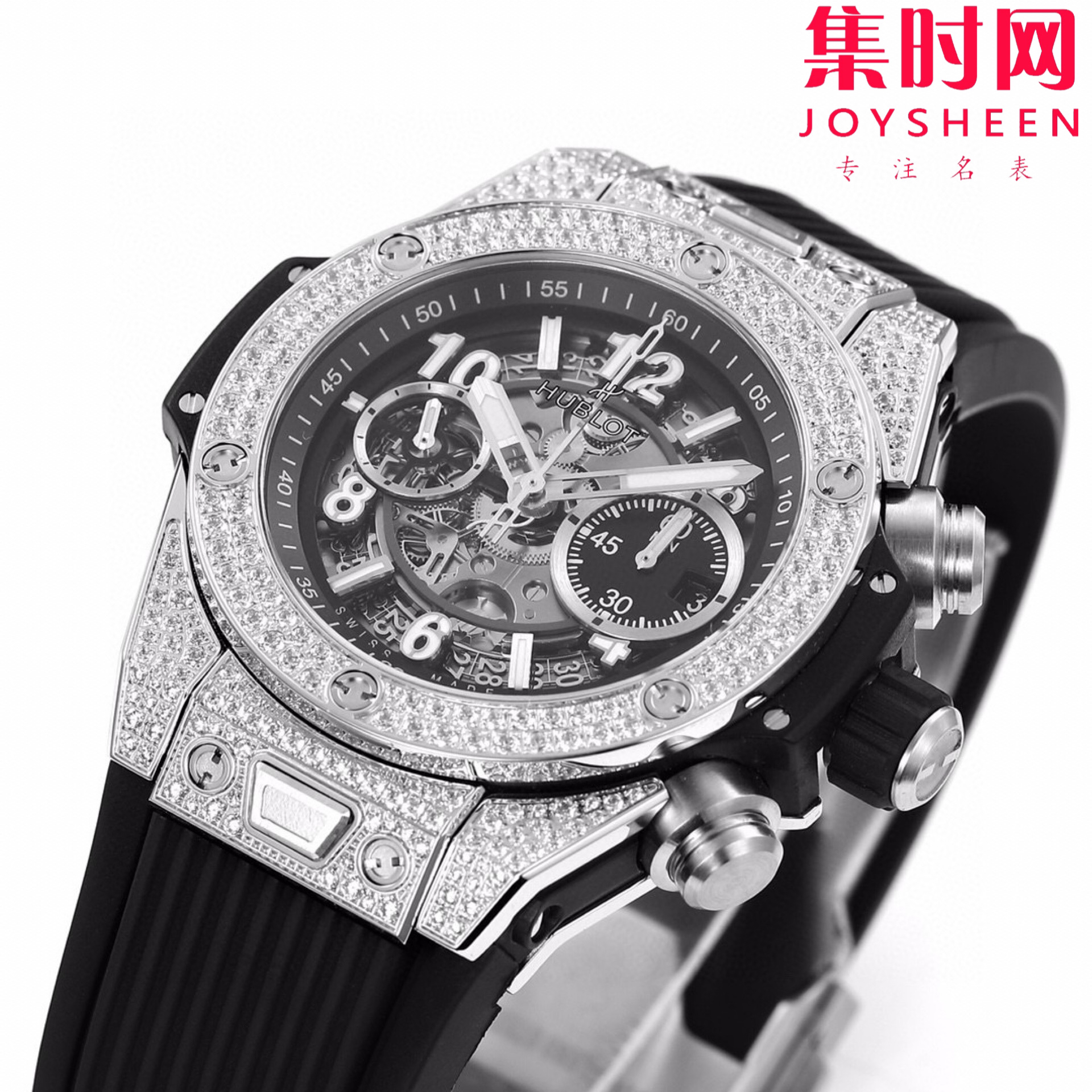 BBF满钻满天星 BIG BANG 大爆炸系列 神器 全新定制恒宝专属UNICO HUB 1280自动上链计时机械机芯 3字位镂空日历环,3字盘60分钟计时,8字位水平离合 9字位小秒轮 标配钛金属结构 蓝宝石水晶表镜 七彩纹指针质感无可挑剔 表盘直径44mm 全部功能完mei实现 秒杀其它工厂的所有细节和做工 也是唯yi与正品媲美的副本大爆炸 天花板级别