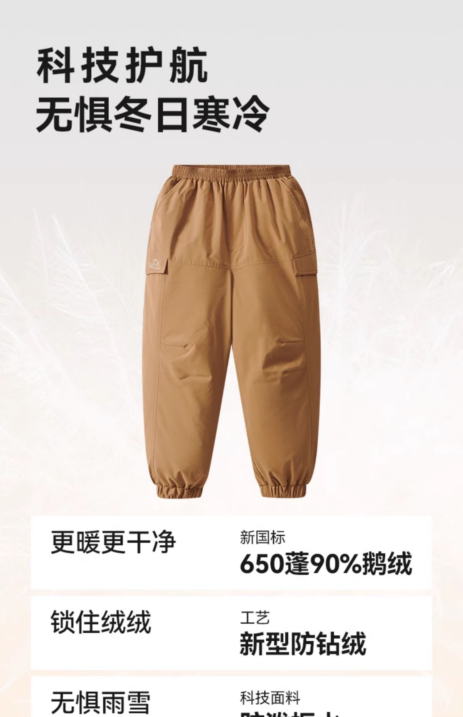 伯希和户外儿童羽绒裤新款男童女童650蓬轻薄高弹防风鹅绒长裤
