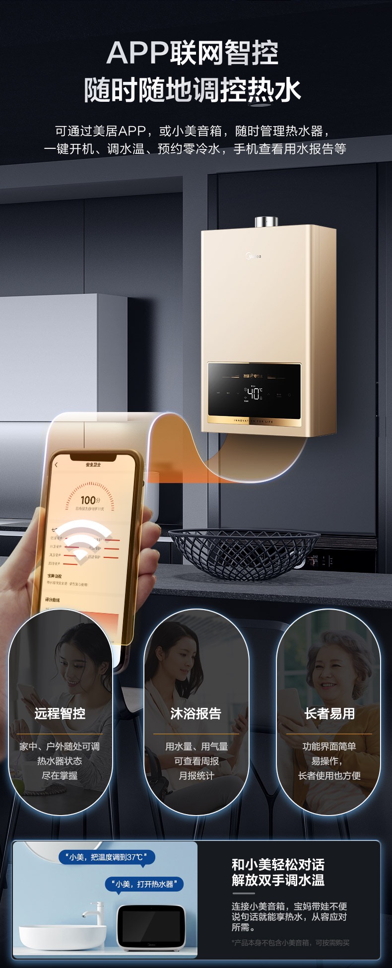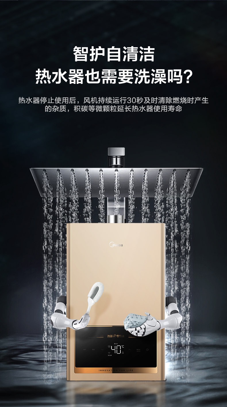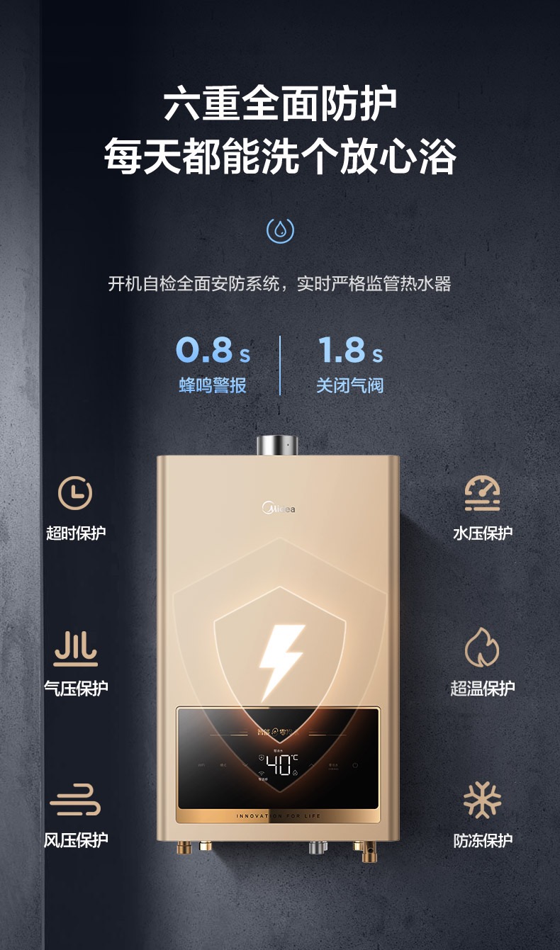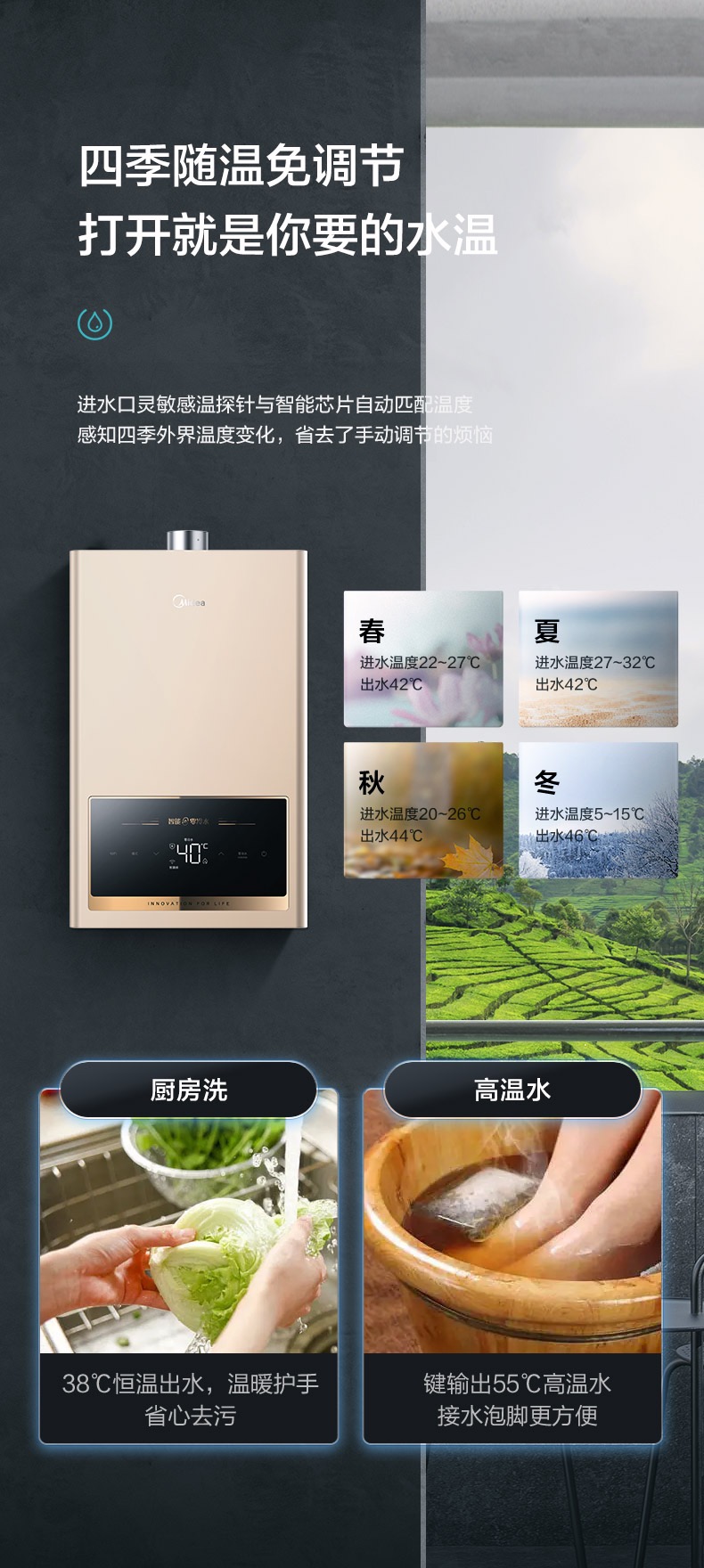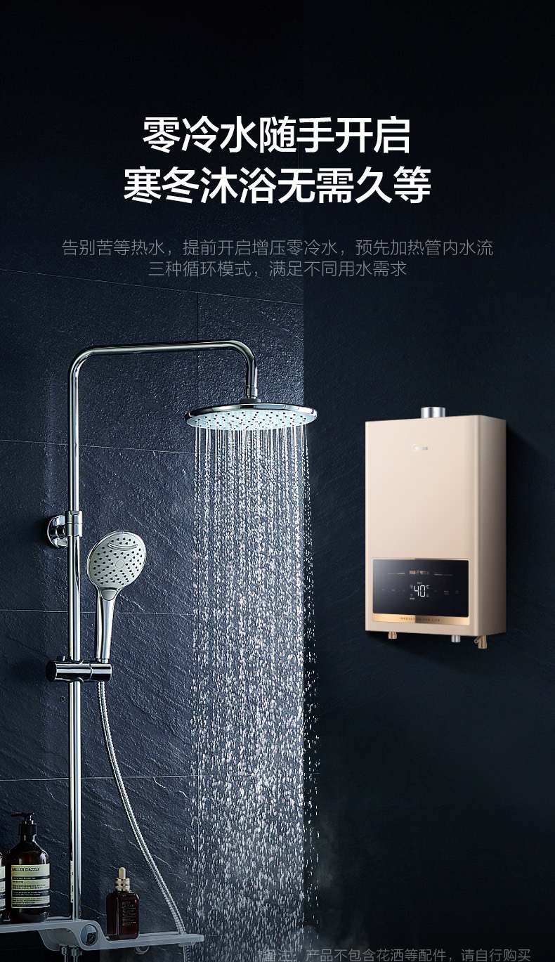 美的(Midea)(510480)JSQ30-16HT1 恒温式燃气热水器 摩卡金 12T电辅加机械防冻