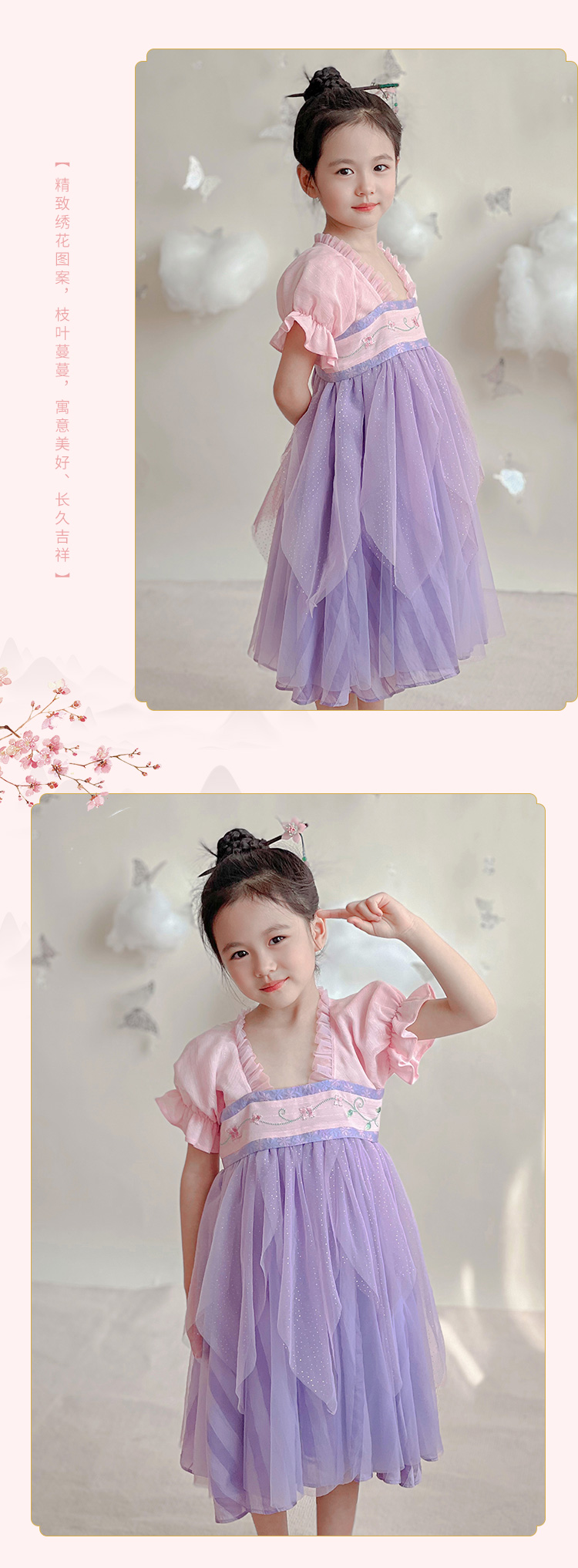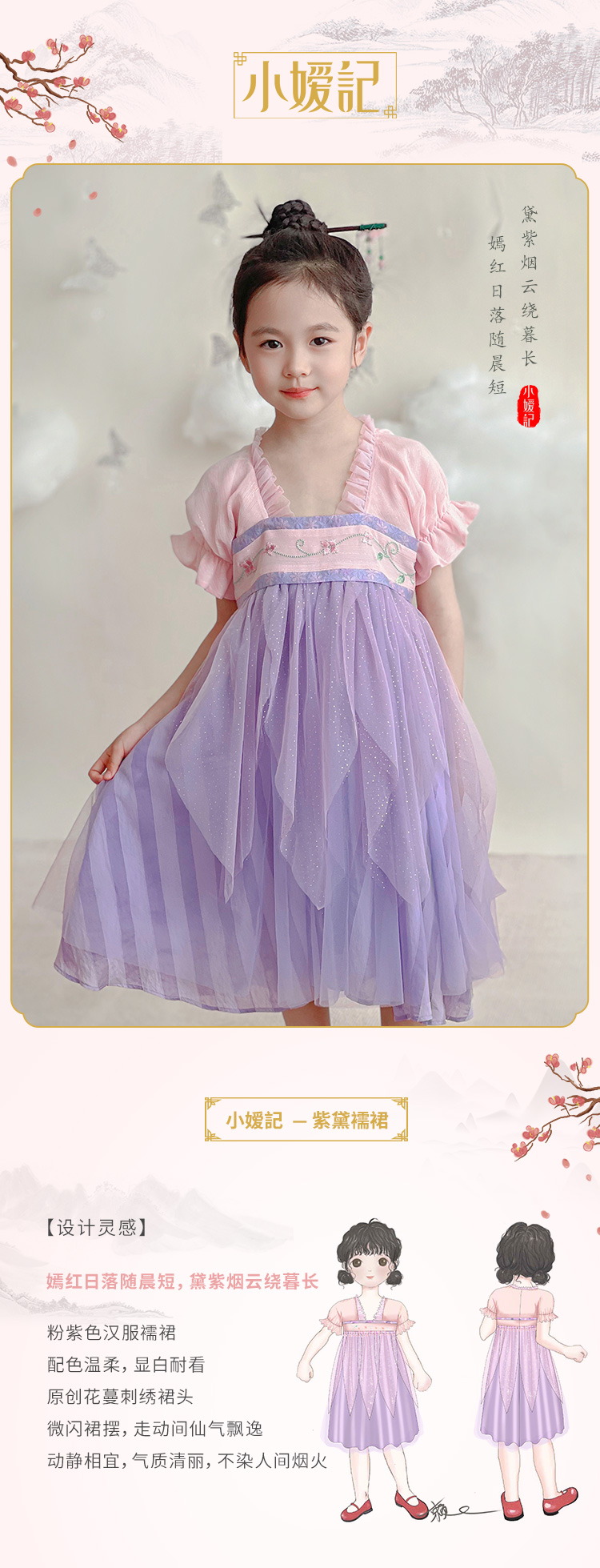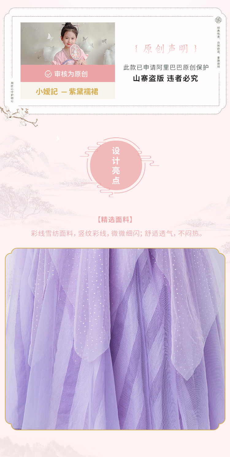 小嫒記春夏新款女童汉服国风中式时装周走秀款——紫黛襦裙