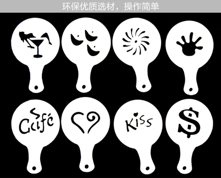 咖啡 拉花模具 咖啡印花 模型 撒粉垫 拿铁 花式咖啡 16枚