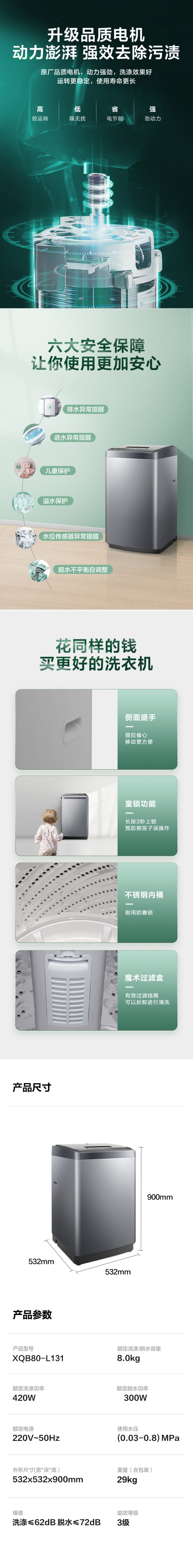 容声洗衣机(251998)家用波轮洗衣机全自动8公斤大容量10大洗护程序 快洗 省水节能 桶自洁XQB80-L131