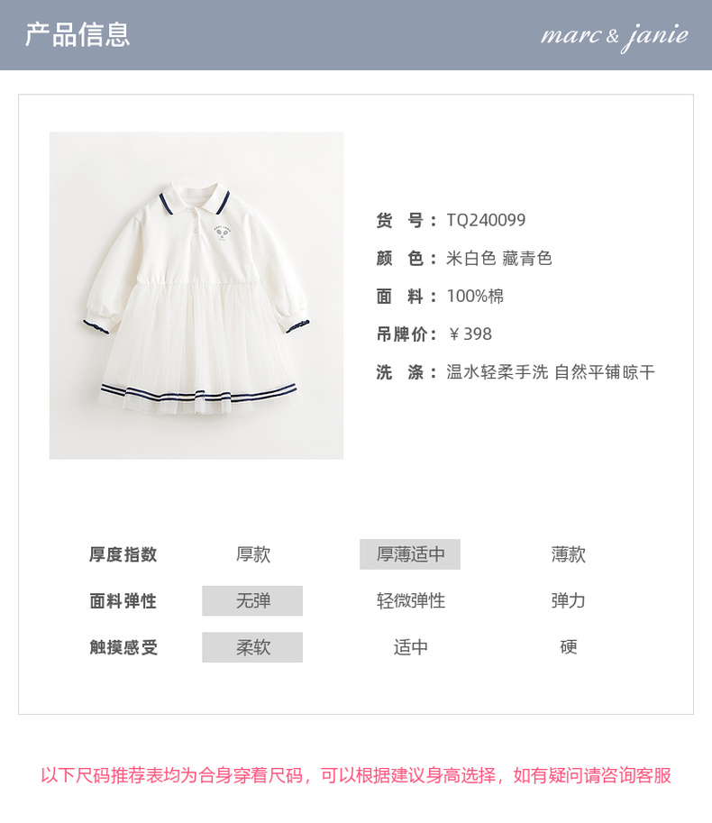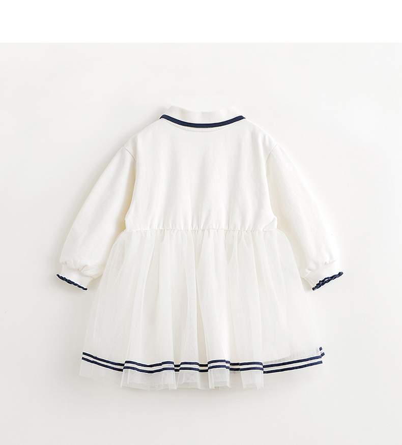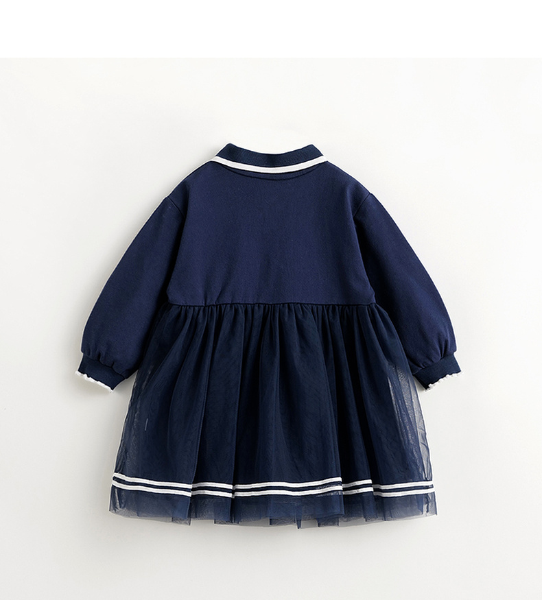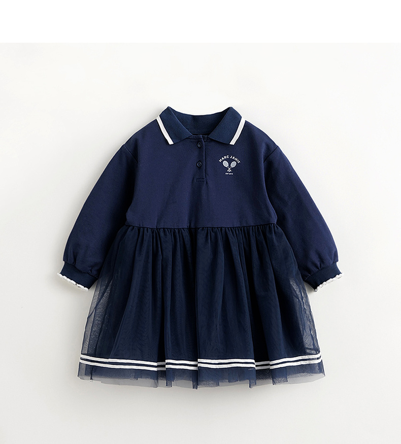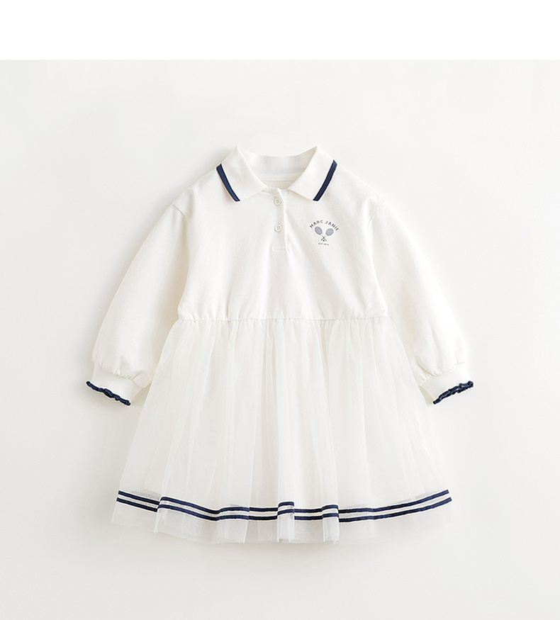 马克珍妮女童元气学院拼接网纱连衣裙儿童纯棉裙子春装新款240099