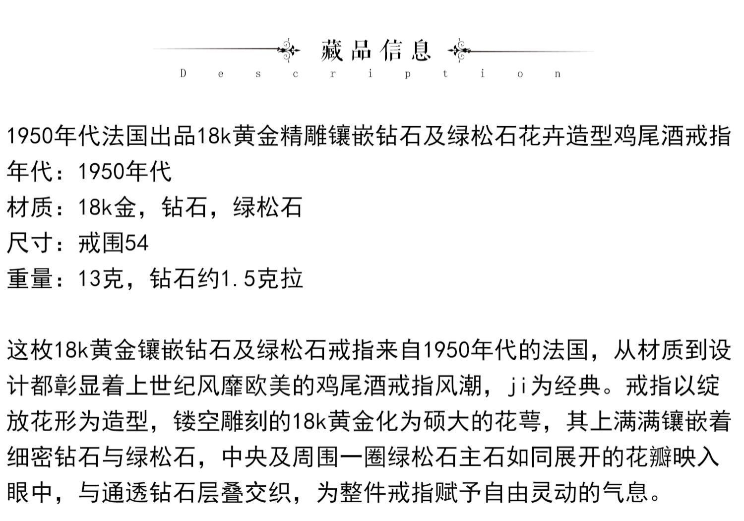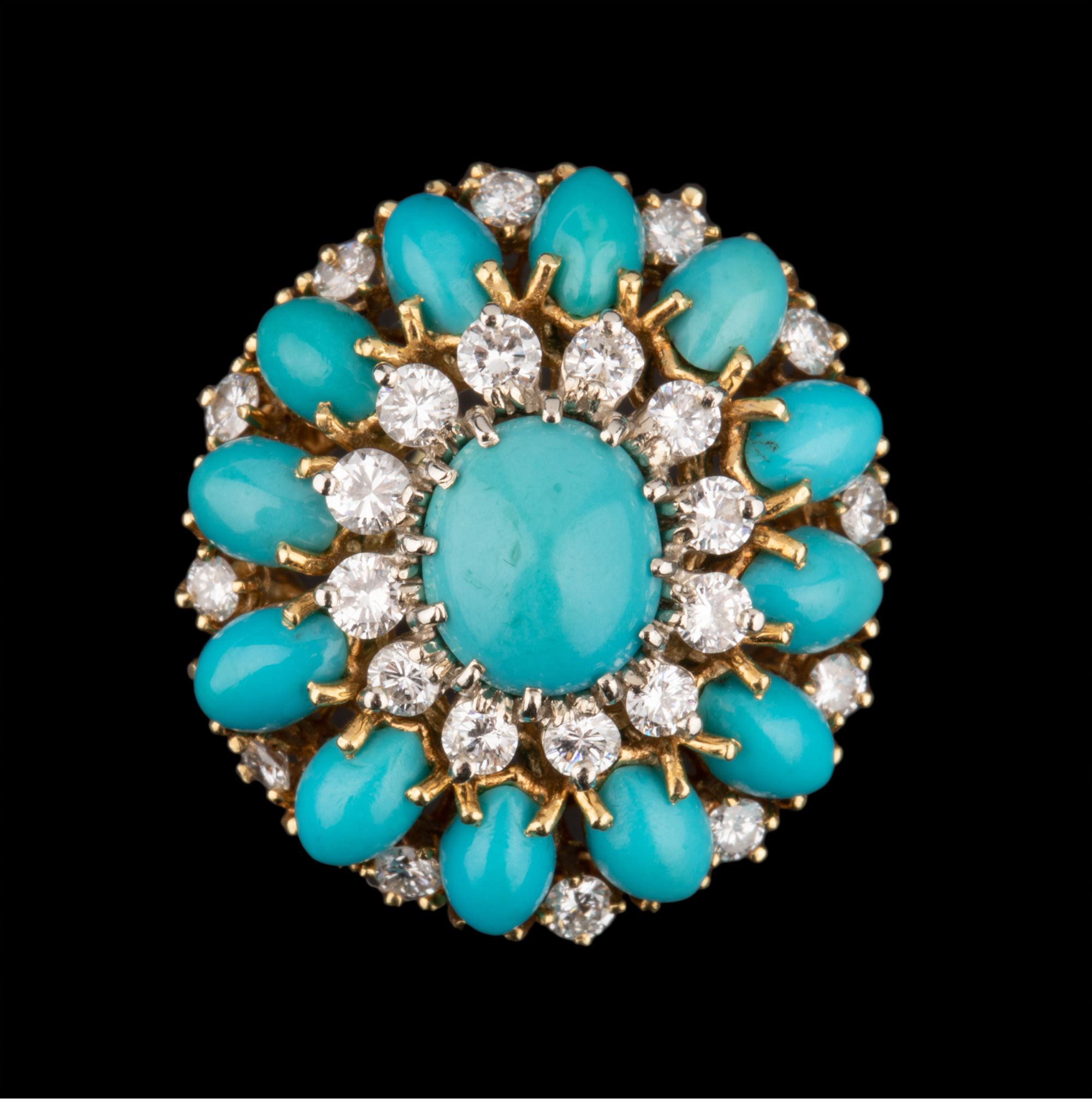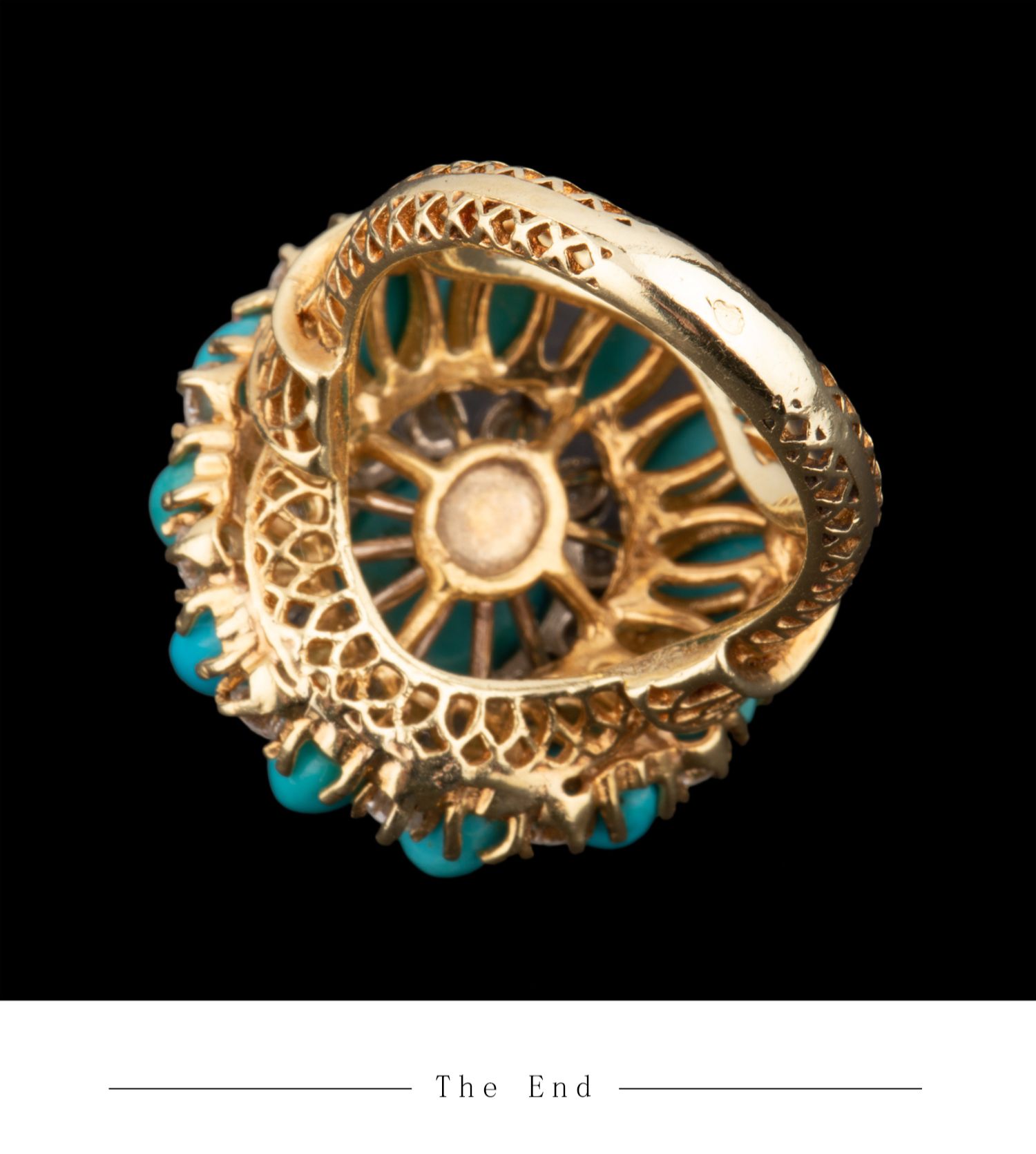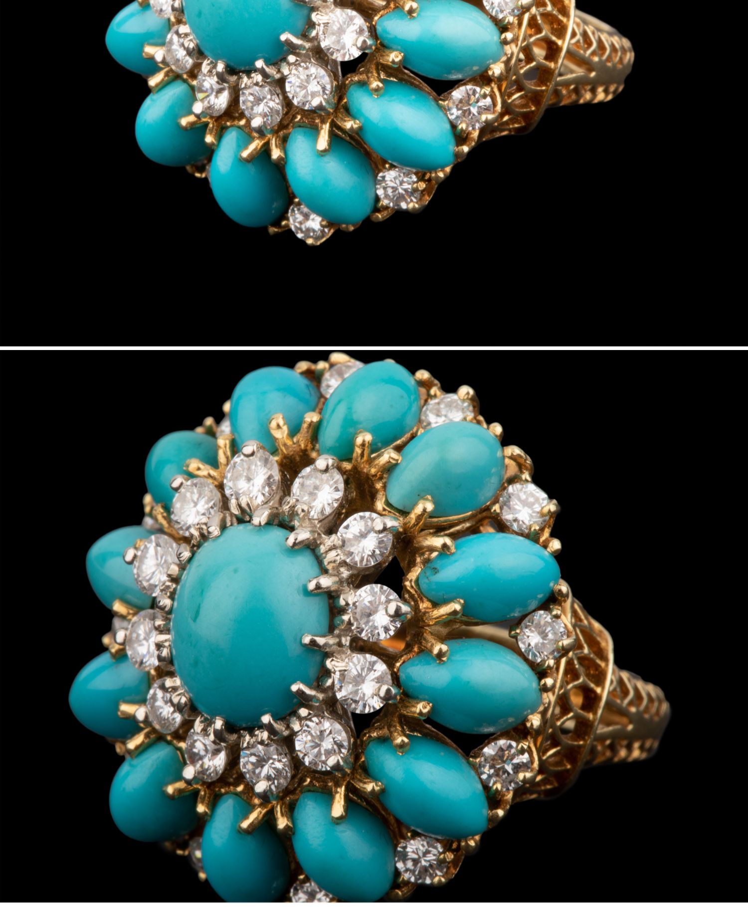 独角鹿西洋古董首饰珠宝18K黄金精雕镶嵌钻石及绿松石鸡尾酒戒指