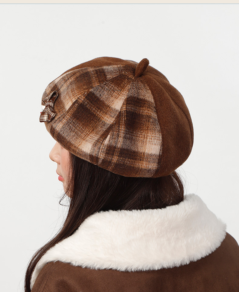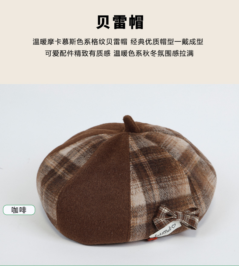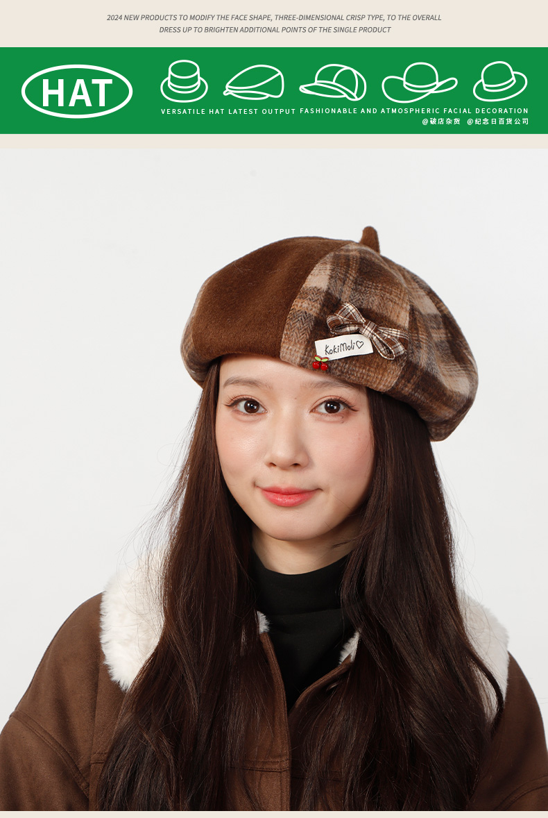 可爱配件精致有质感格纹拼接贝雷帽-纪念日百货门店同款166443303