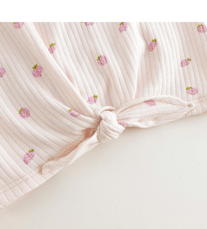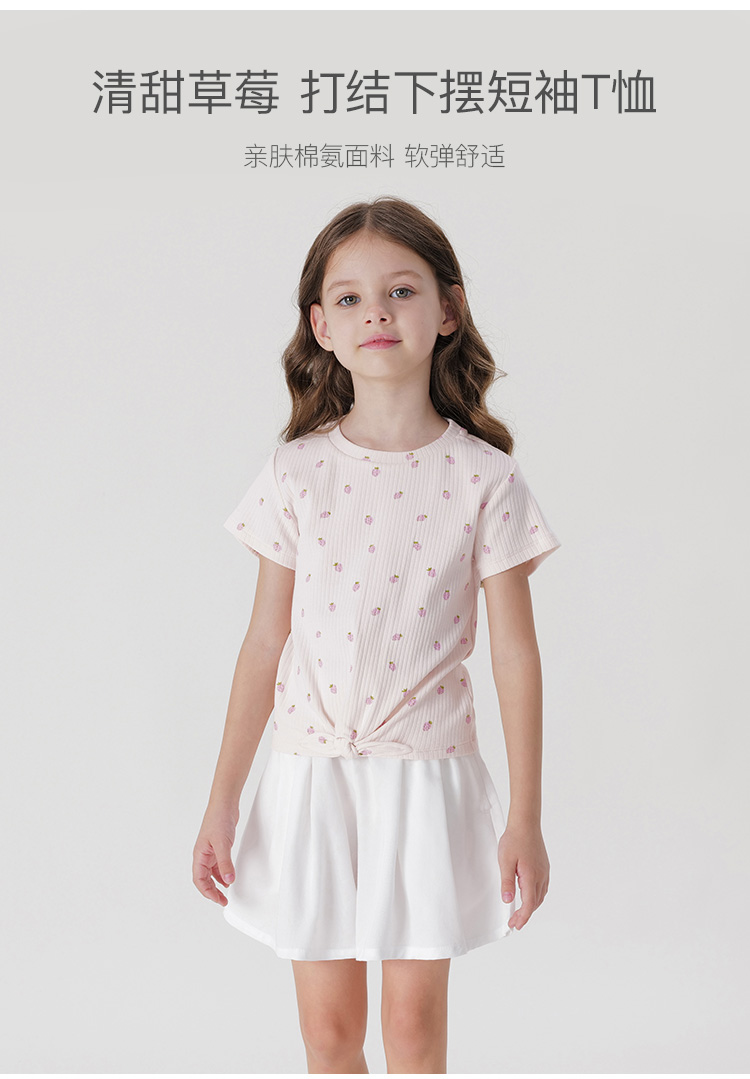马克珍妮2024年夏装新款女童甜美草莓满印打结短袖T恤240739