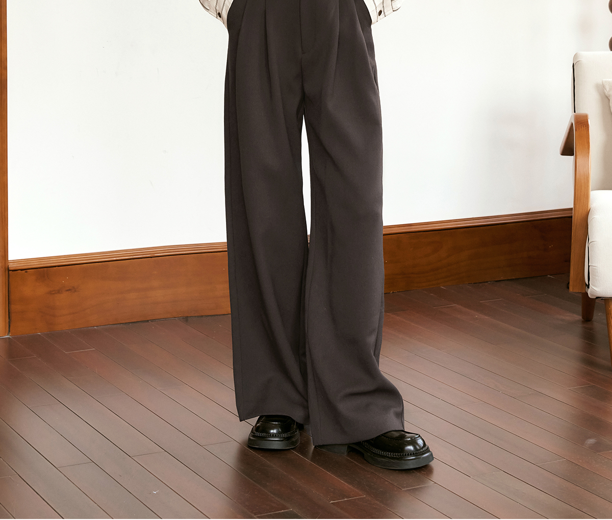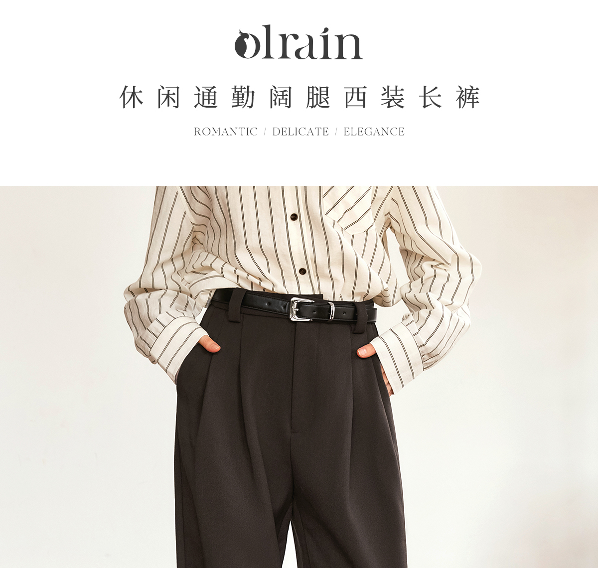 OLrain欧芮儿咖色休闲裤女冬季2024年新款百搭显瘦高级感阔腿裤