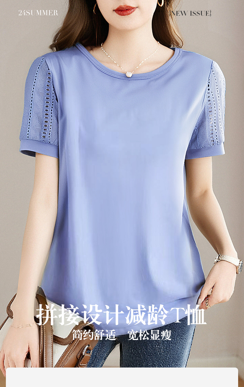 高端冰丝女士短袖t恤2026新款大码半袖女装宽松夏季纯棉上衣洋气