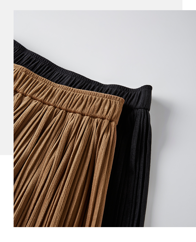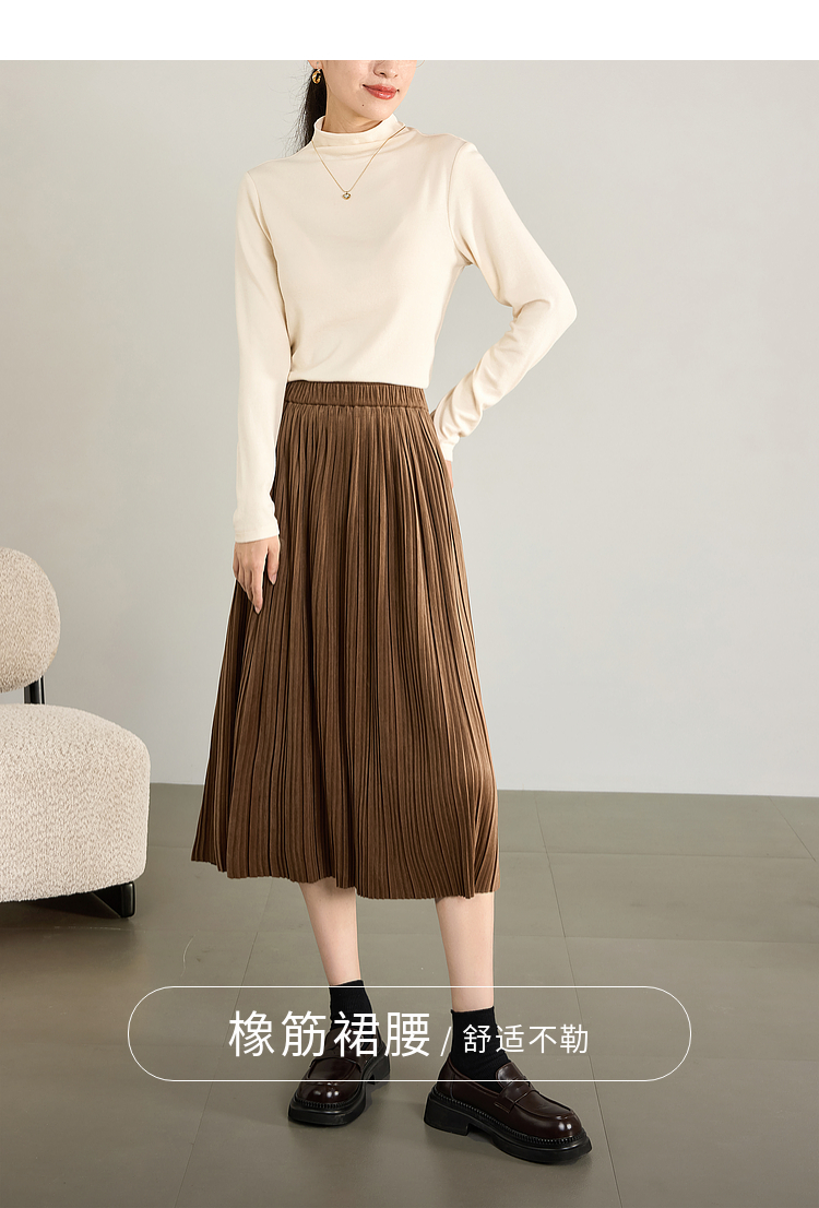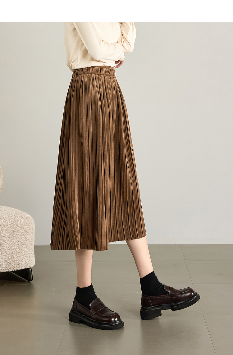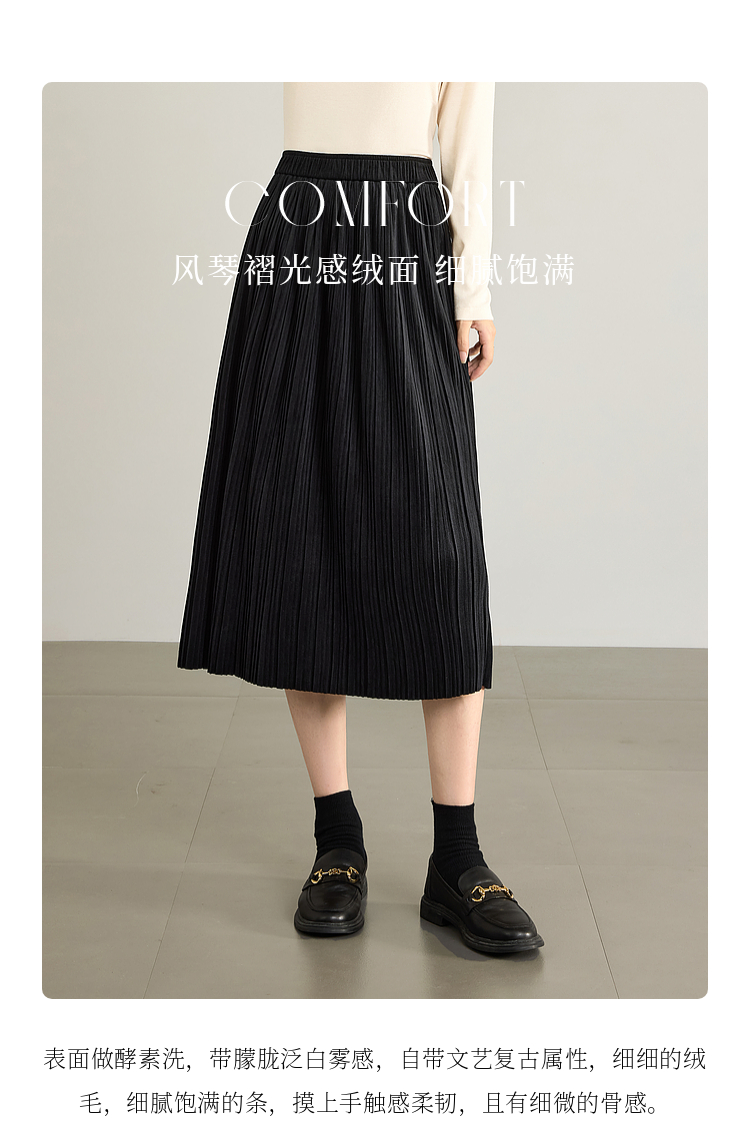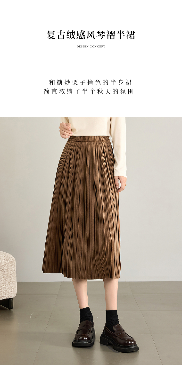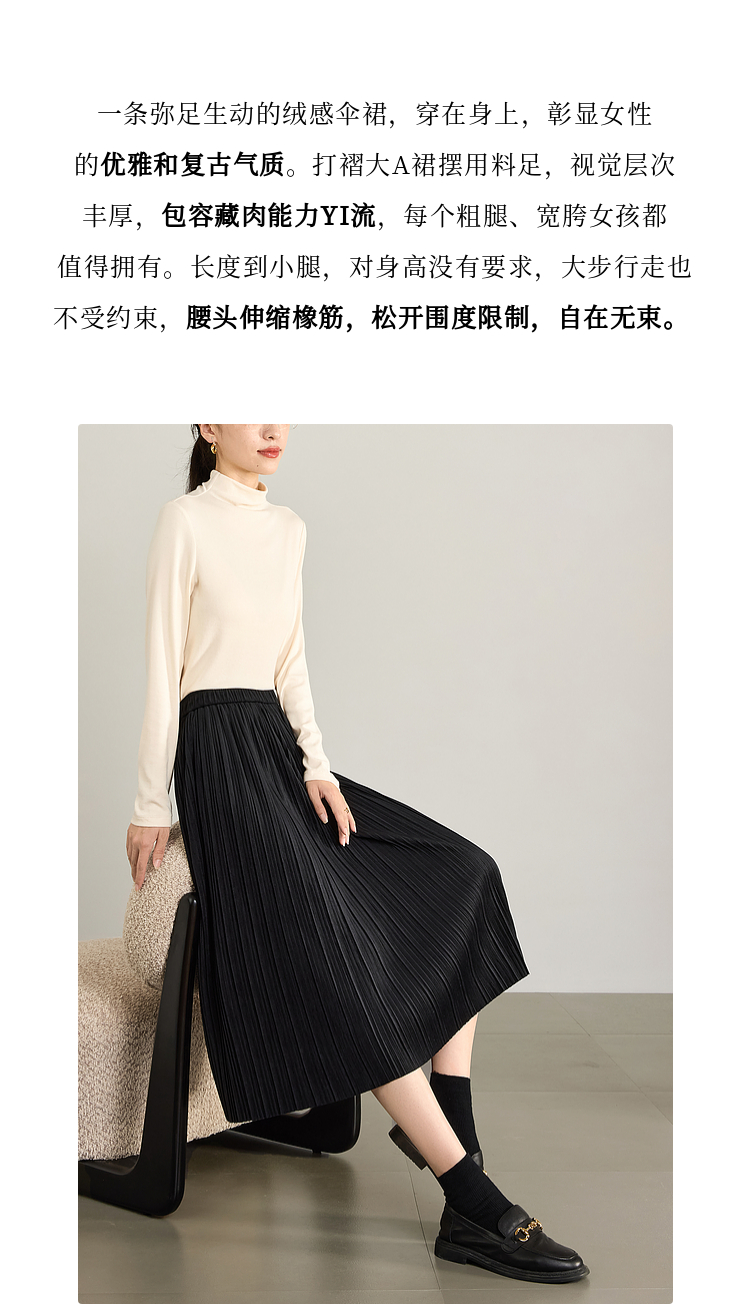 【专属特价】熙世界复古绒感百褶半身裙女秋季2025新款高腰赫本气质a字裙伞裙