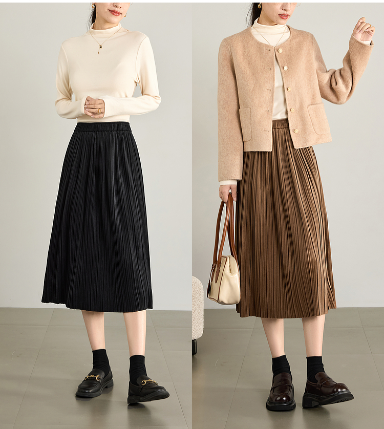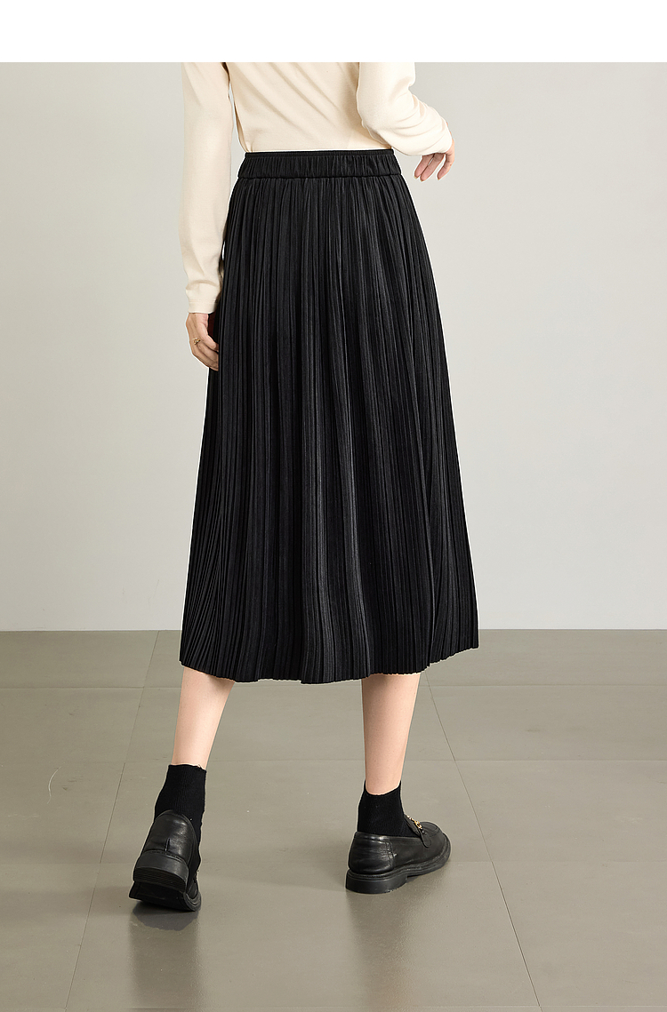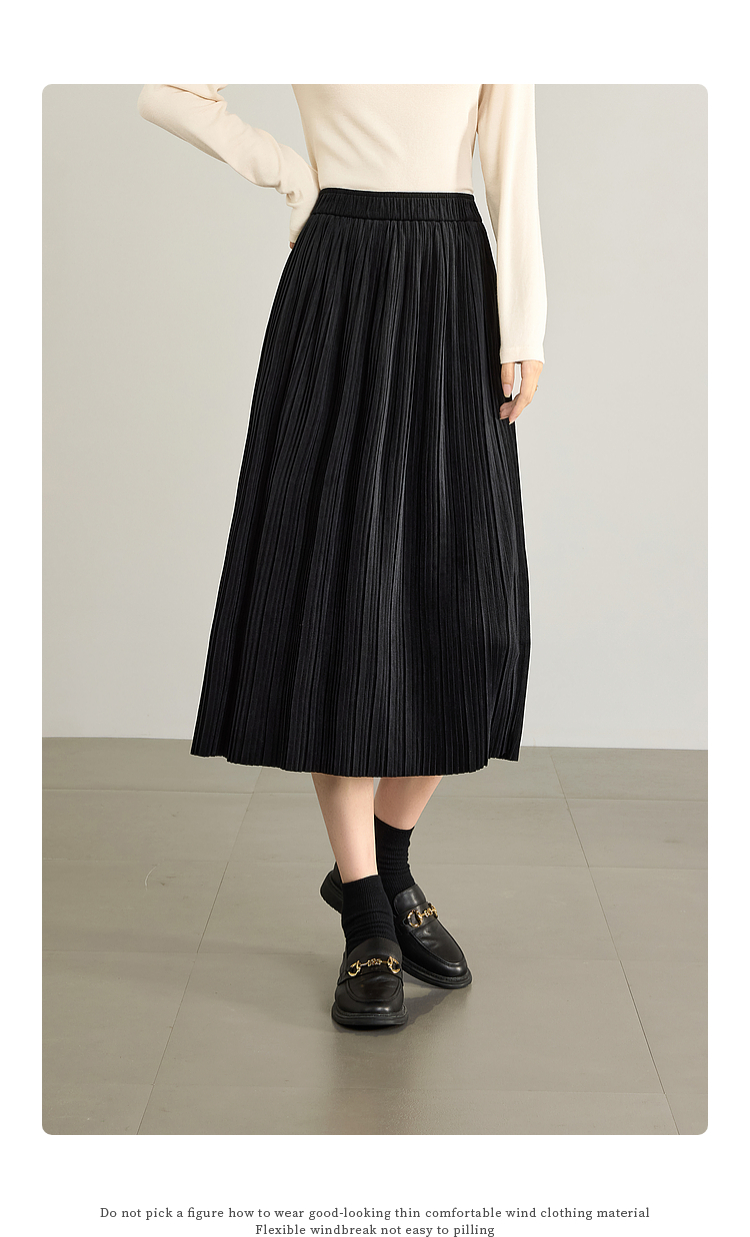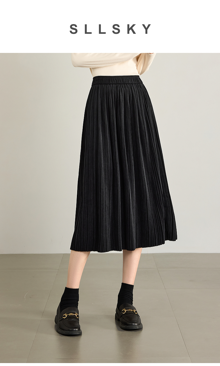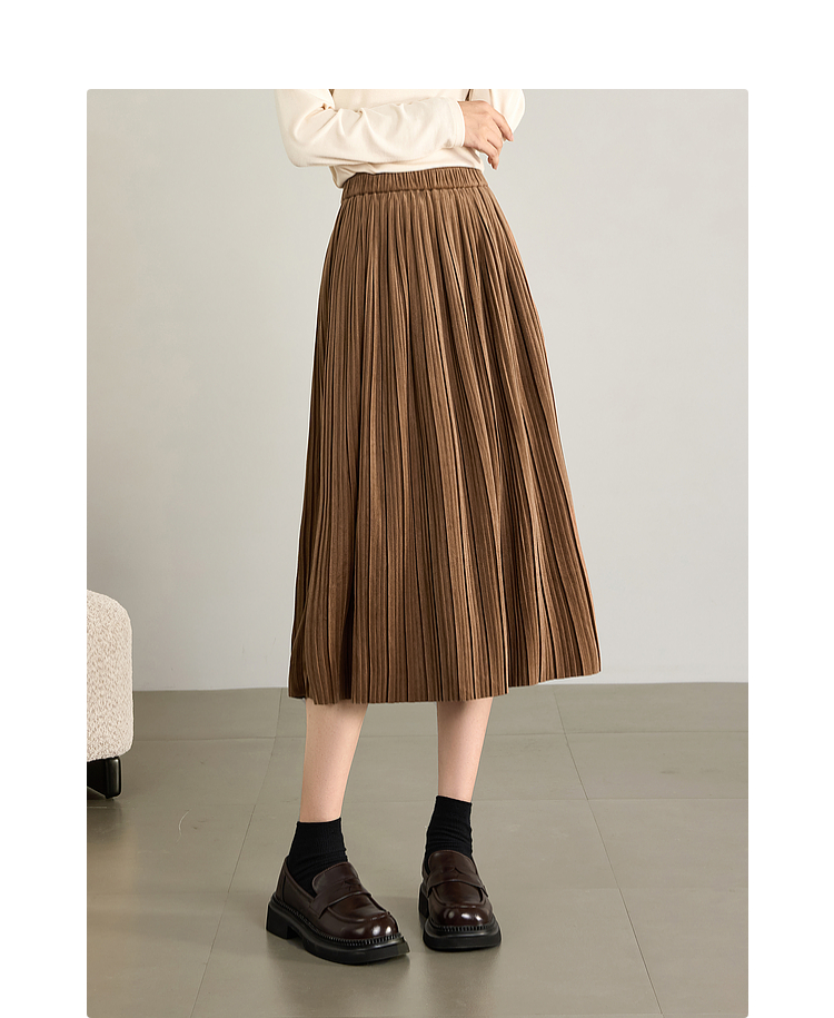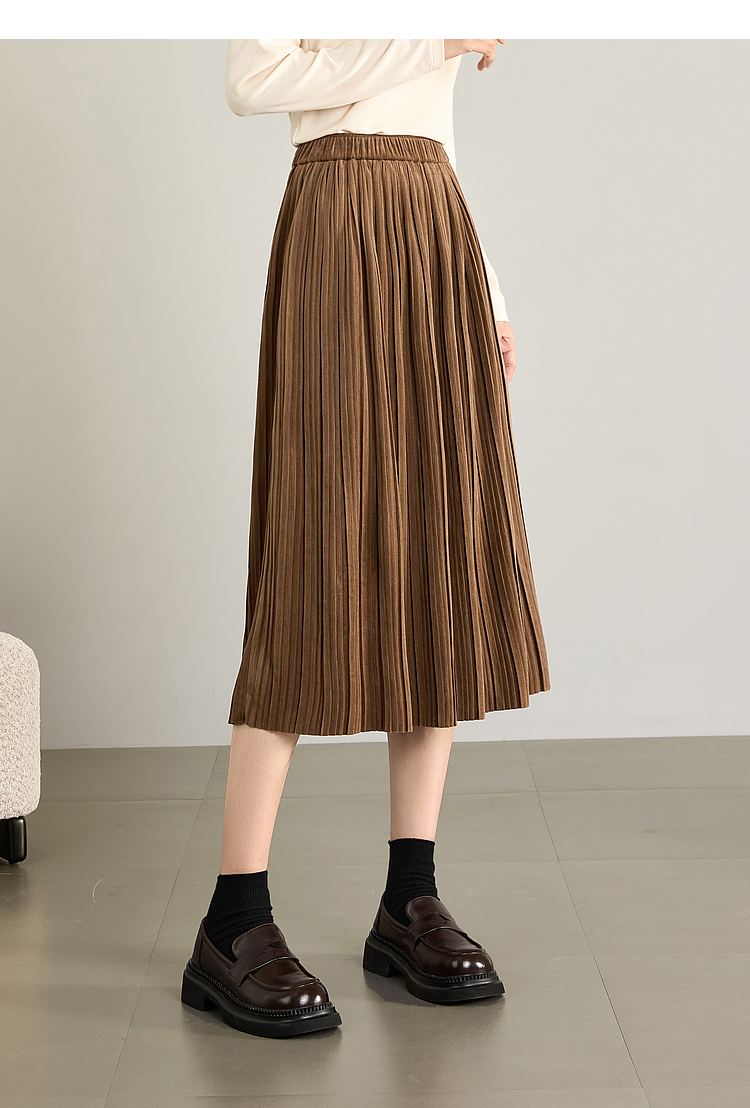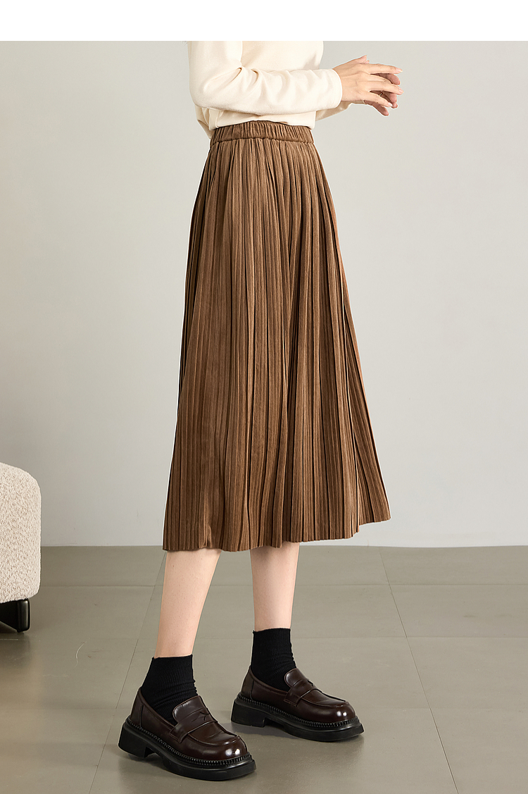 【专属特价】熙世界复古绒感百褶半身裙女秋季2025新款高腰赫本气质a字裙伞裙
