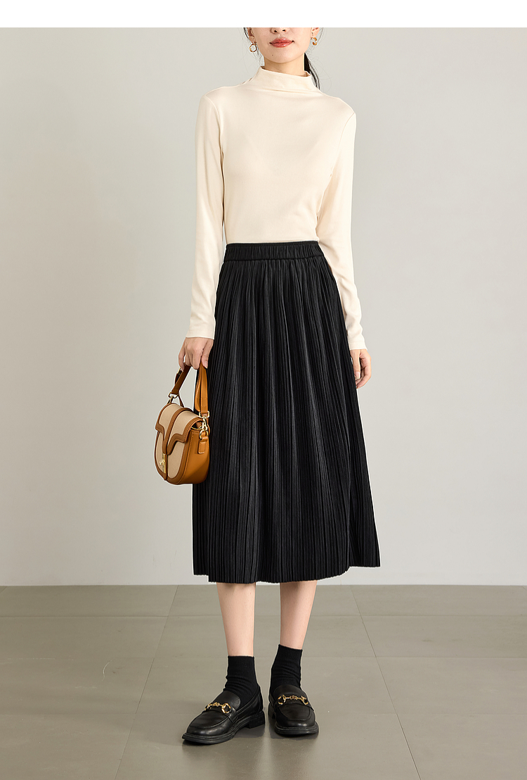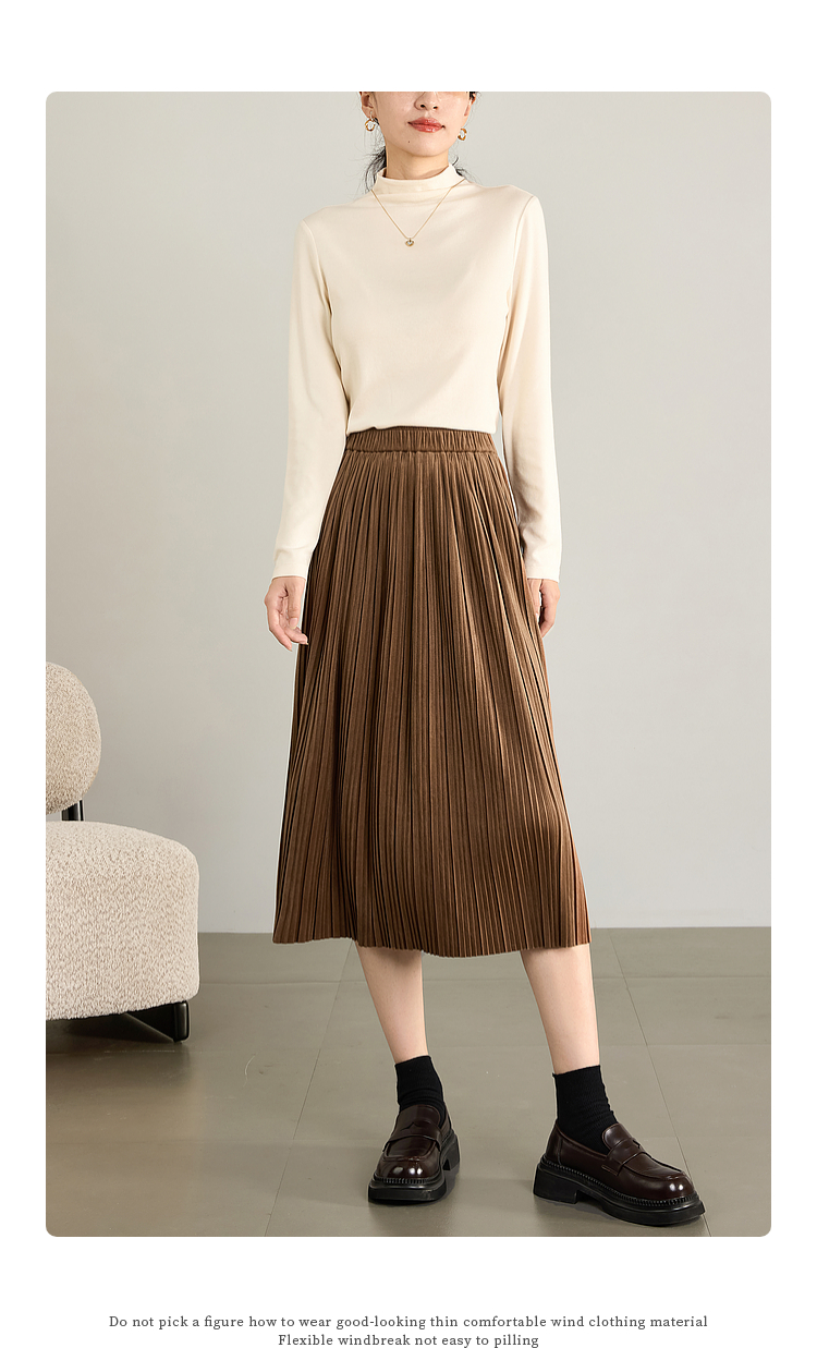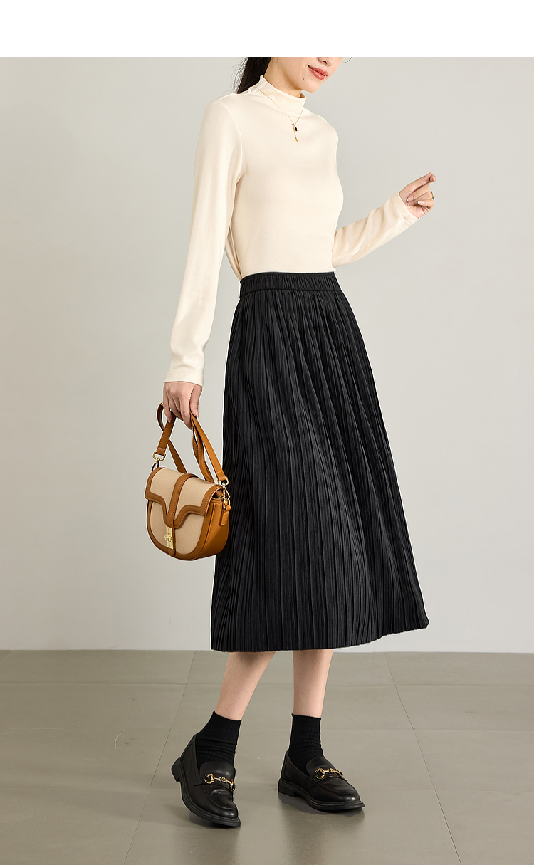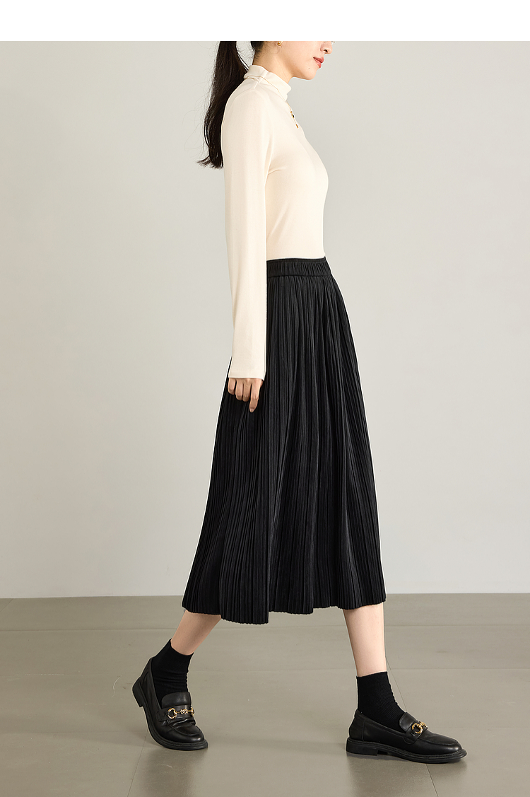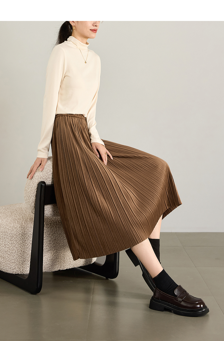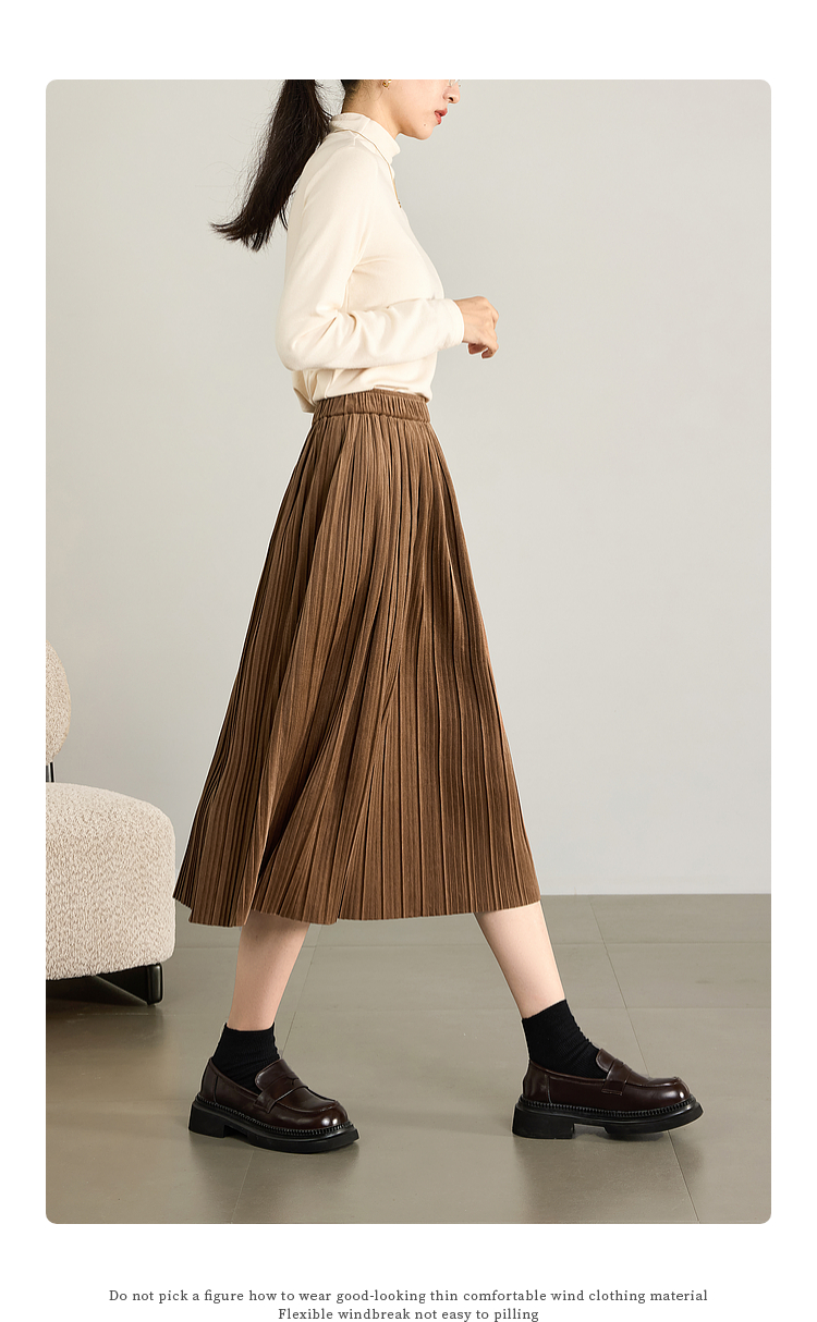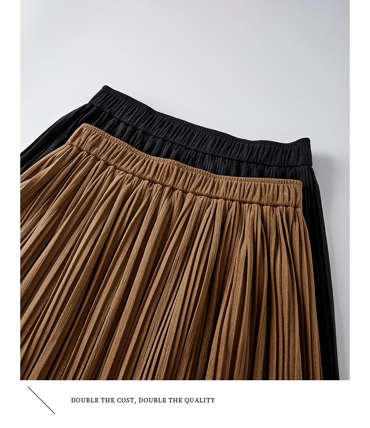 【专属特价】熙世界复古绒感百褶半身裙女秋季2025新款高腰赫本气质a字裙伞裙