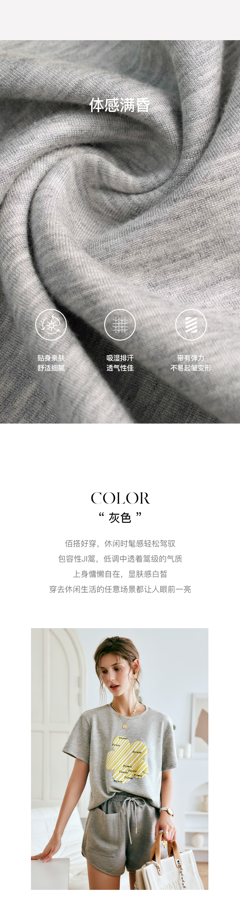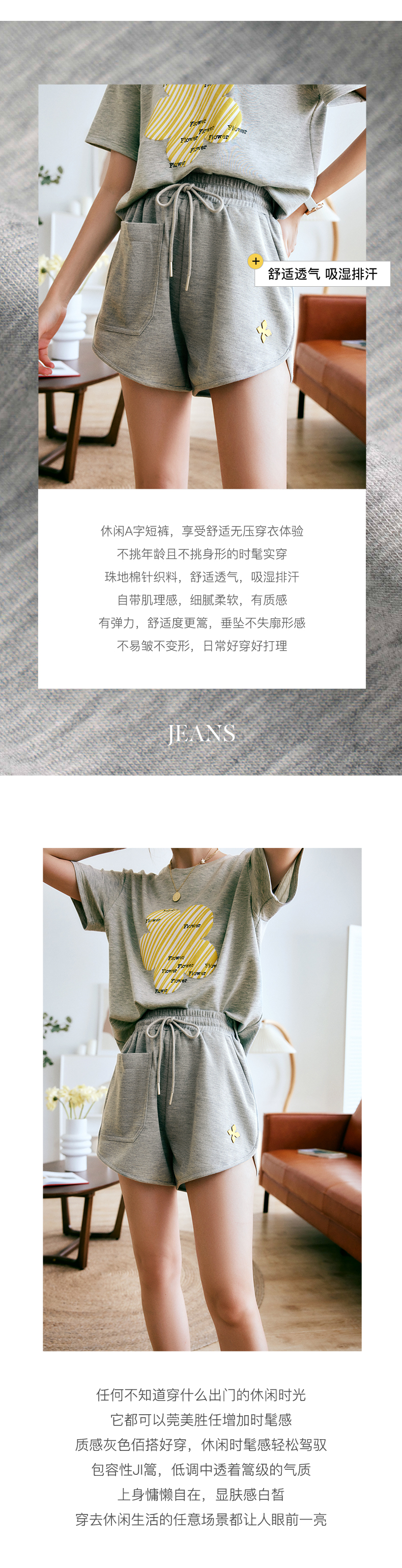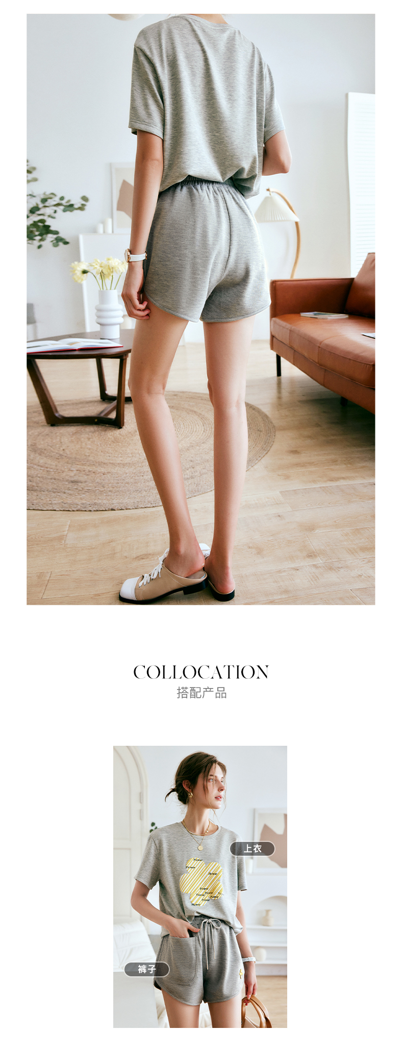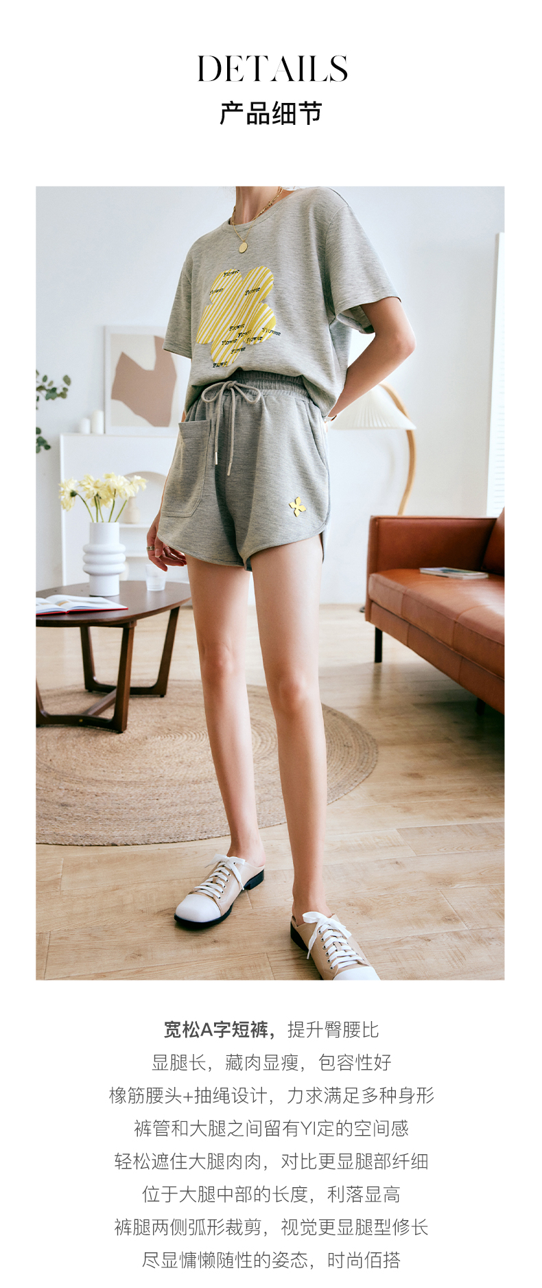 欧芮儿OLrain法式灰色休闲裤女夏季2022年新款高腰阔腿运动短裤