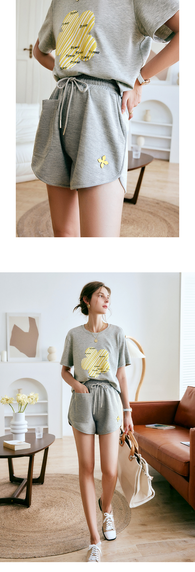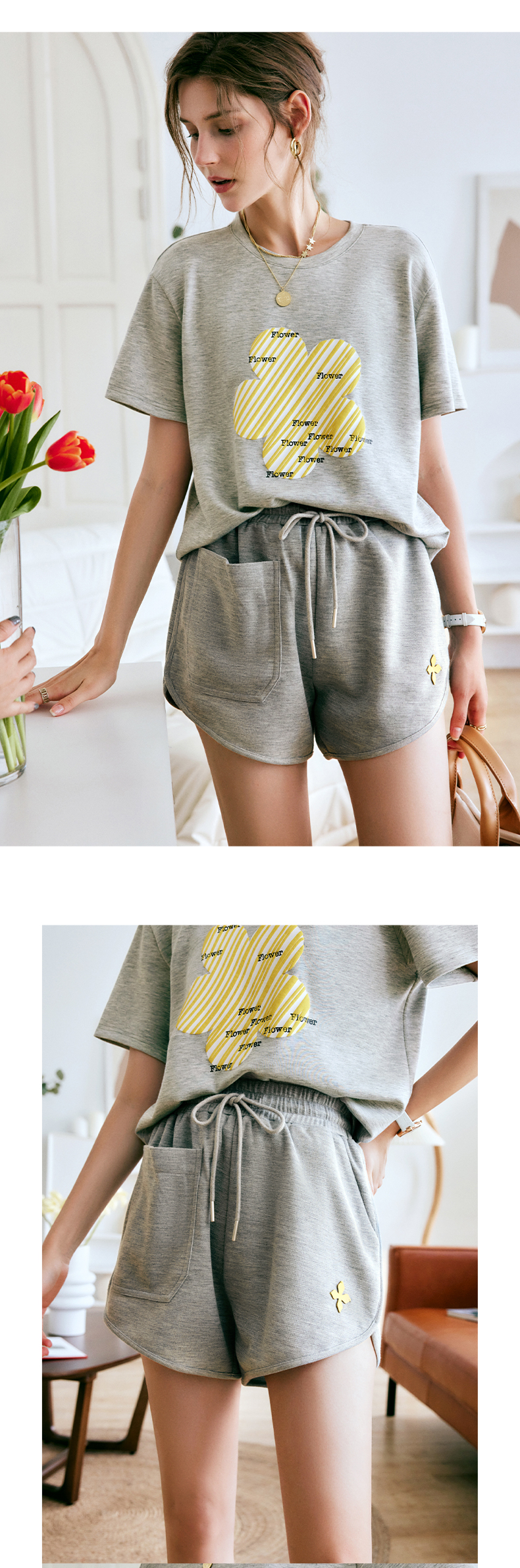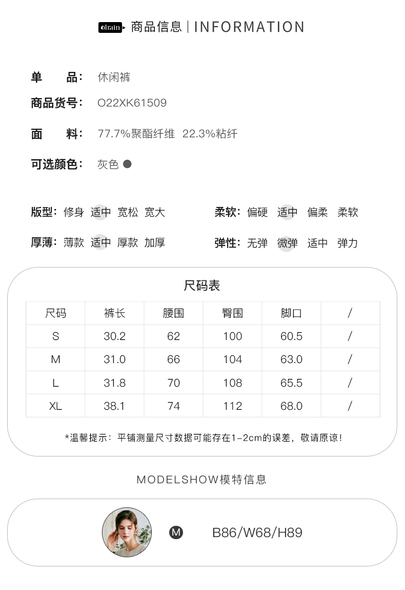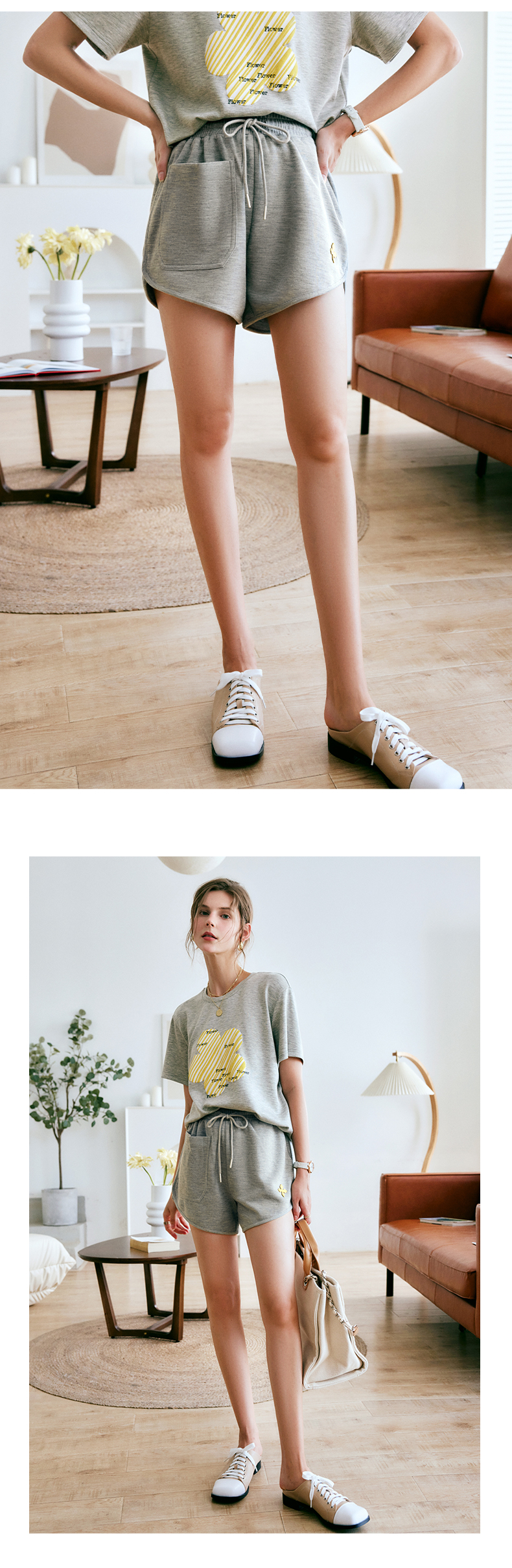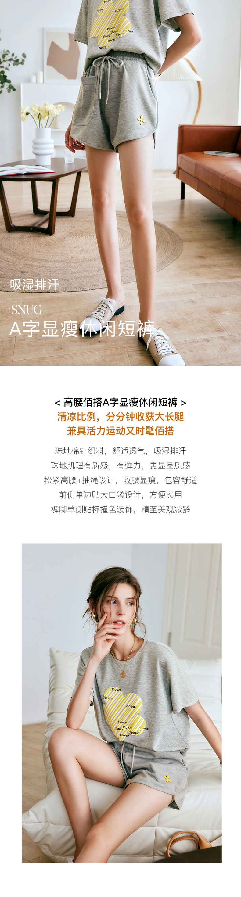 欧芮儿OLrain法式灰色休闲裤女夏季2022年新款高腰阔腿运动短裤