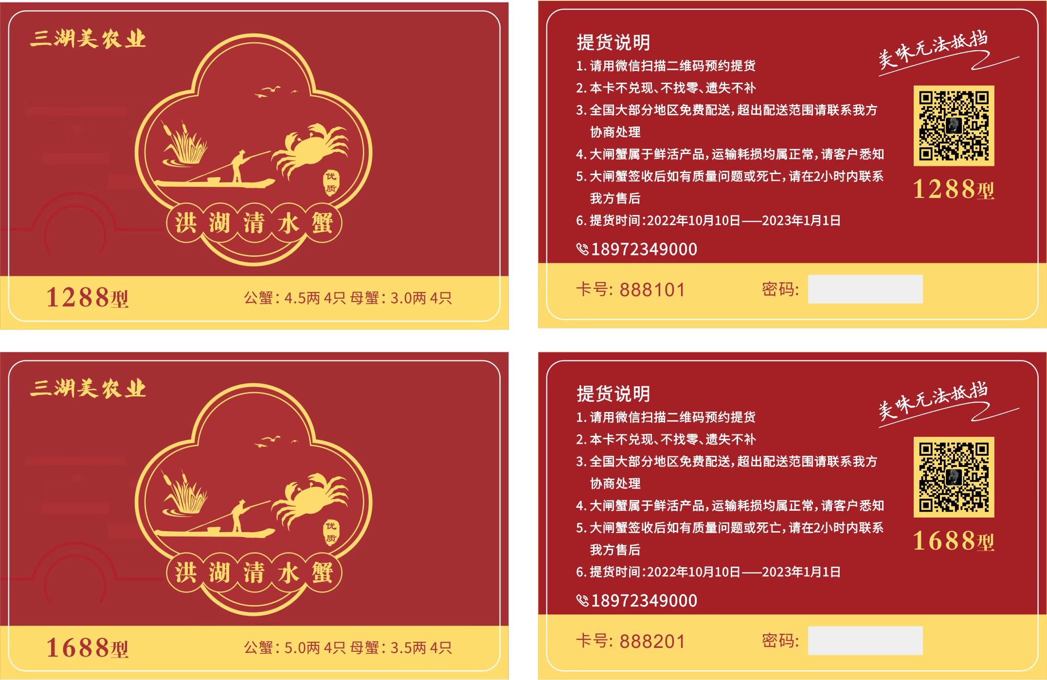 【严选】鲜活大闸蟹礼品卡1288型/1688型 4公4母共8只(厂家直发)