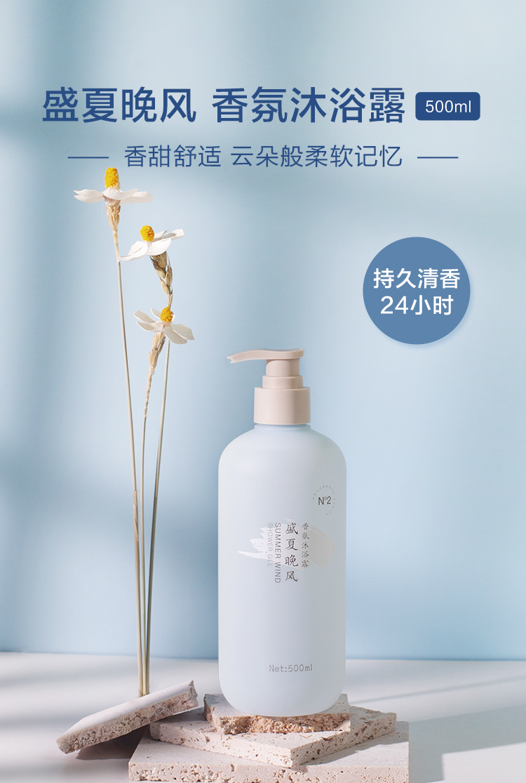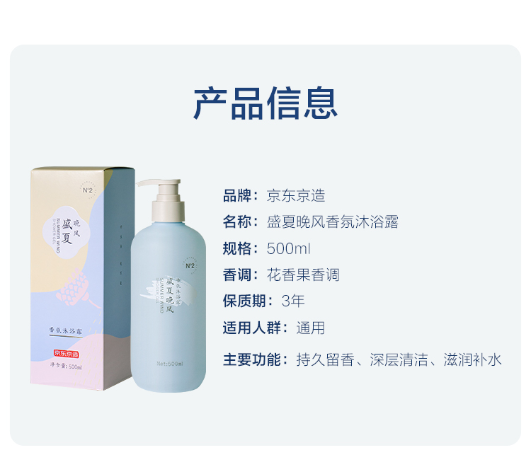 京东京造 盛夏晚风香氛沐浴露500ml 留香24h 氨基酸清洁保湿润肤 商品图2