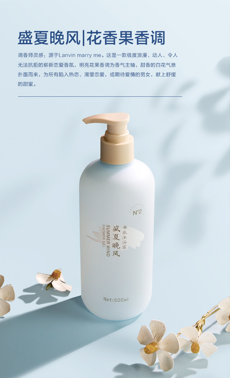 京东京造 盛夏晚风香氛沐浴露500ml 留香24h 氨基酸清洁保湿润肤 商品图3