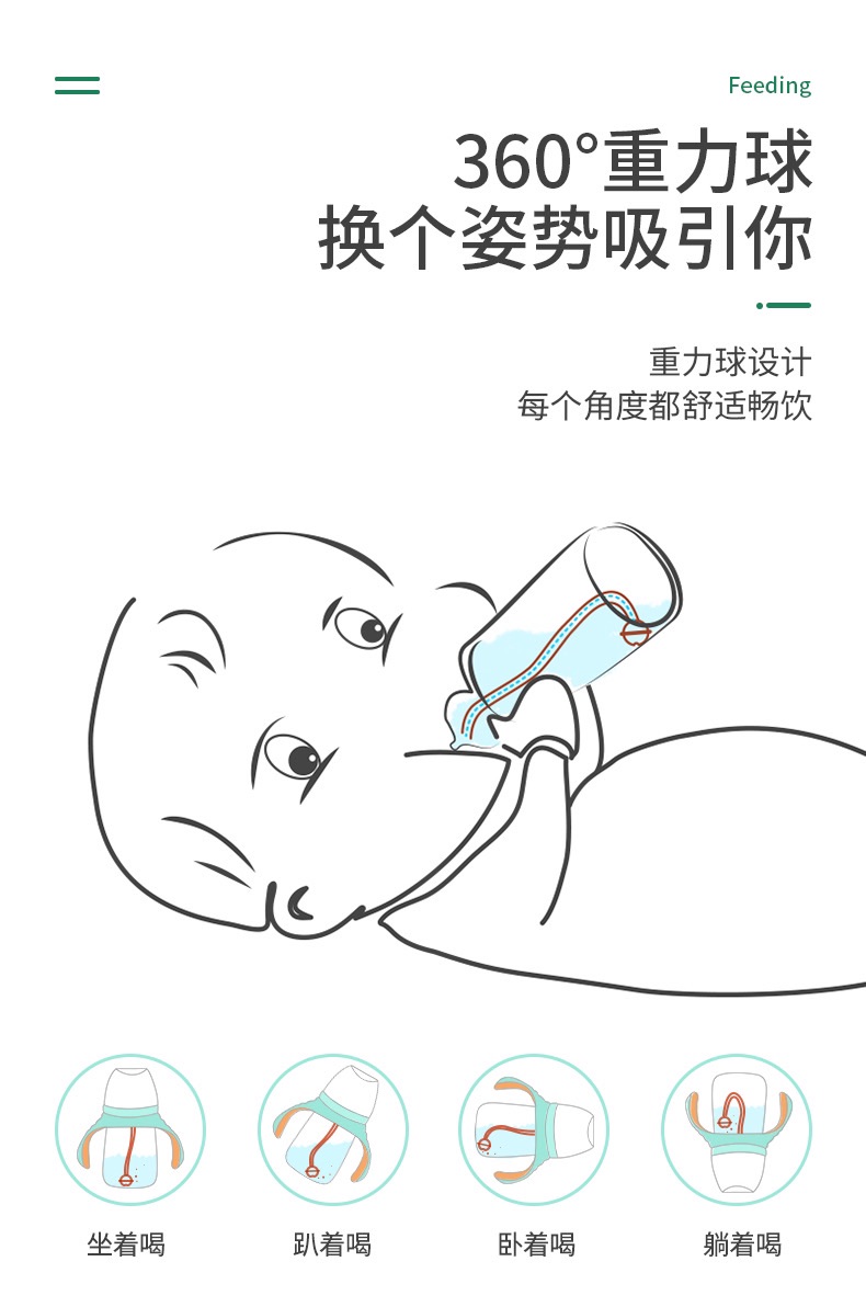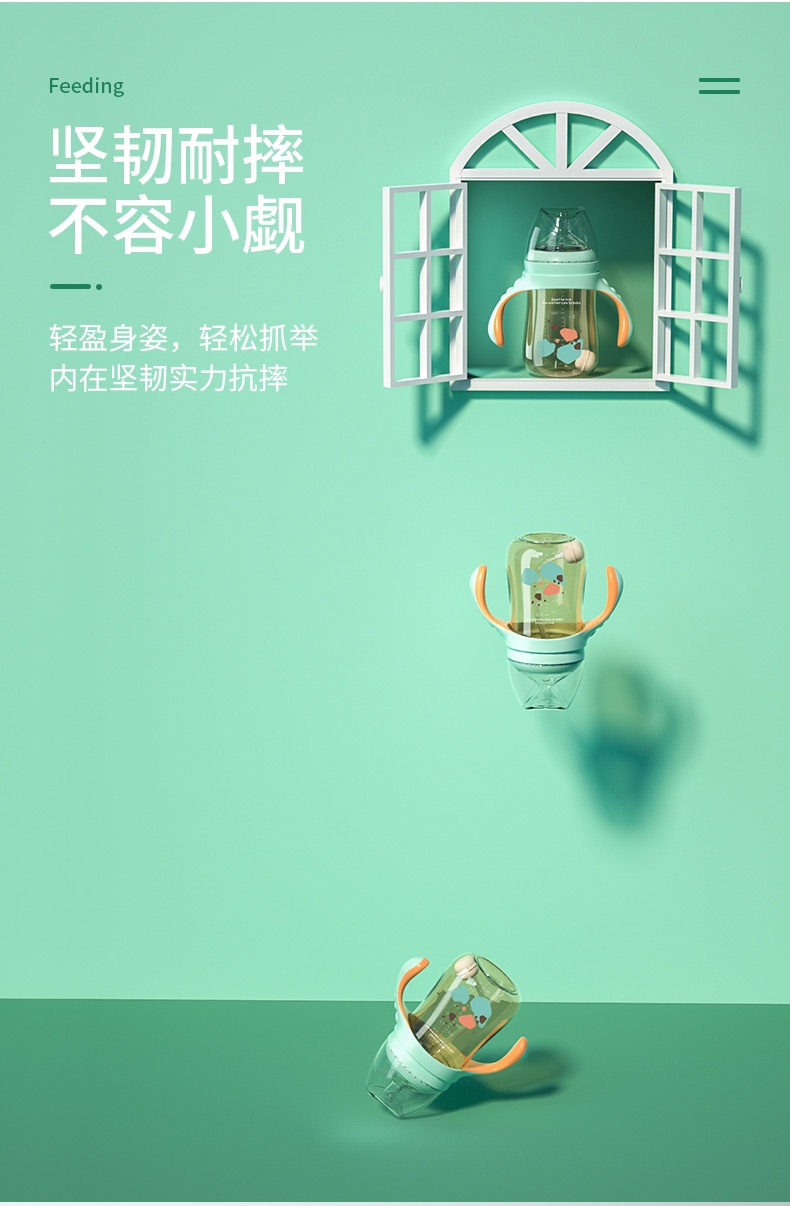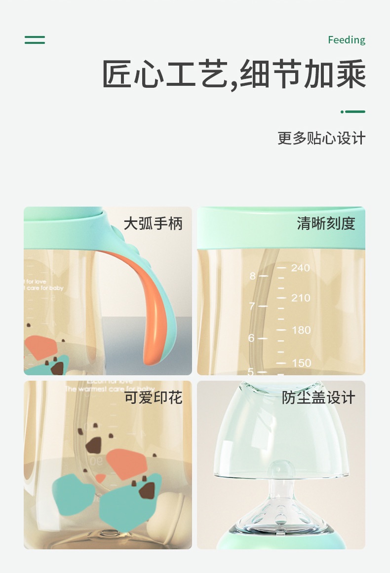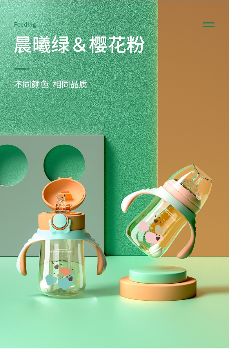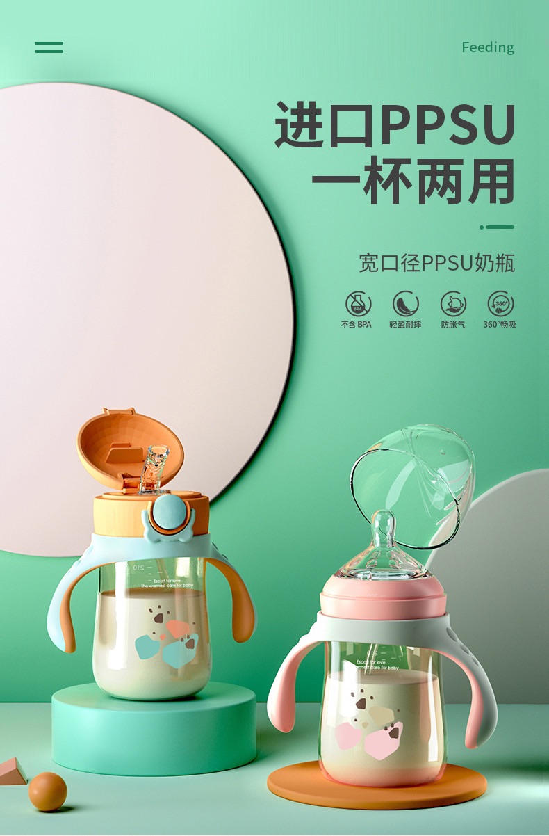 aynner新生婴儿奶瓶ppsu宽口径宝宝水杯 吸管杯奶瓶二合一
