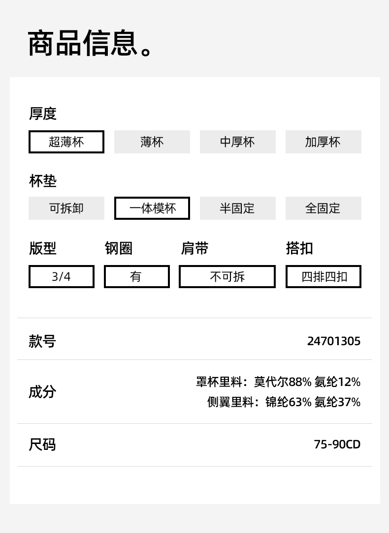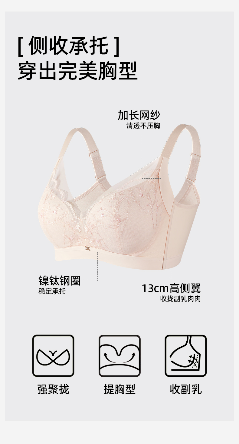 【商场同款】熳洁儿 繁花系列高级刺绣蕾丝大胸显小薄杯云感棉记忆钢圈24701305