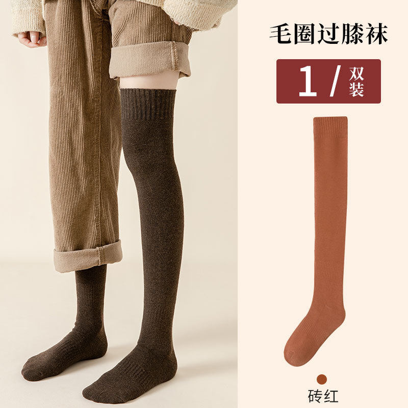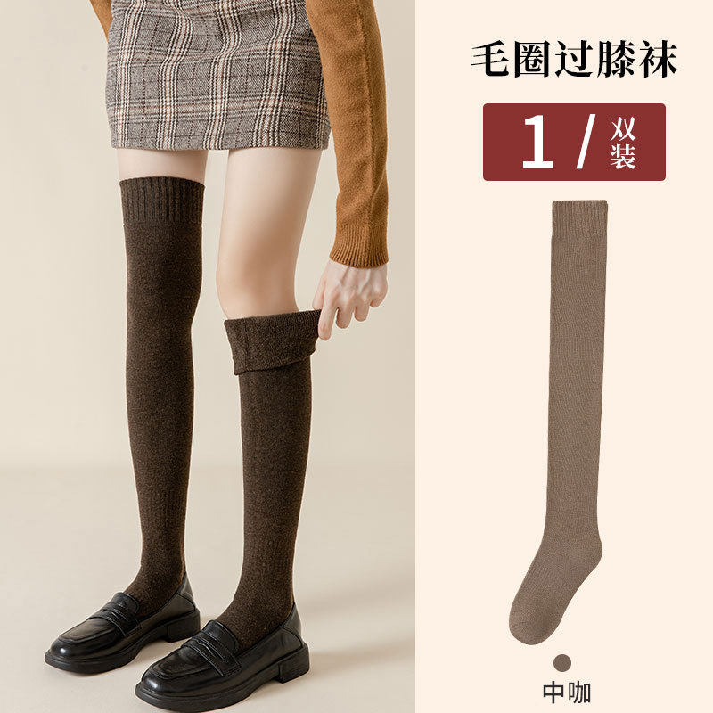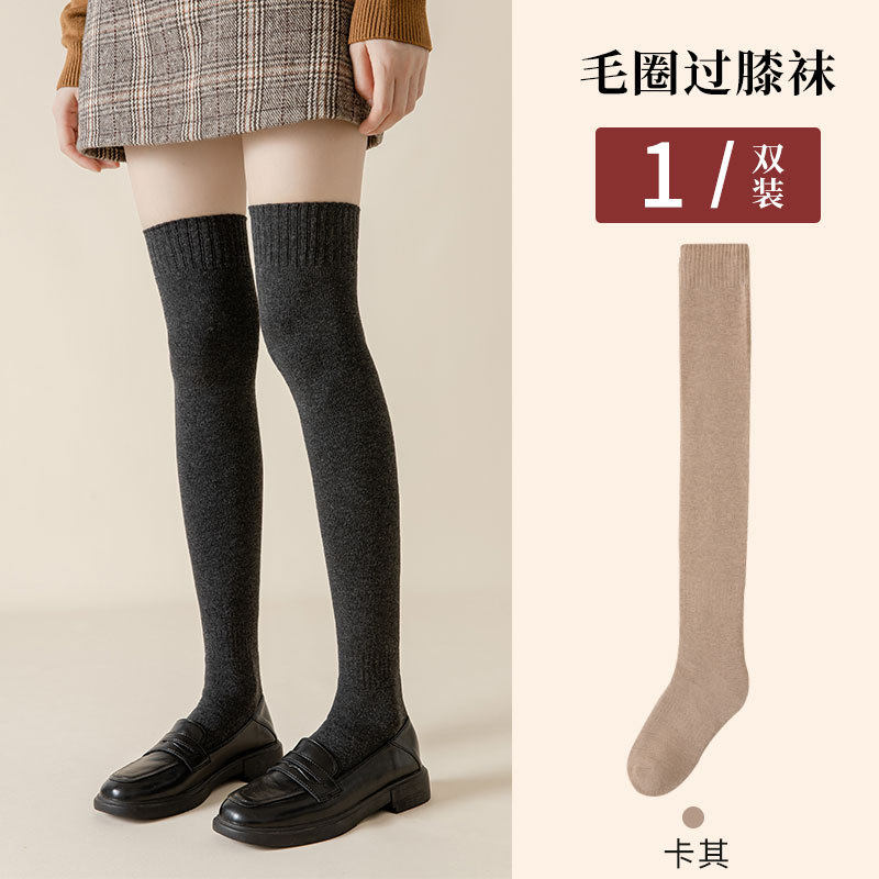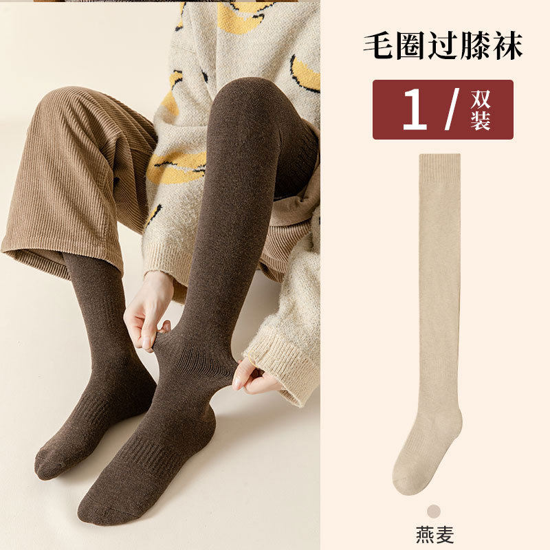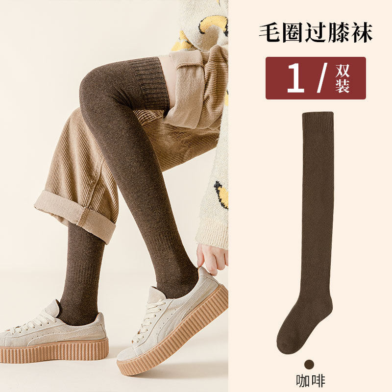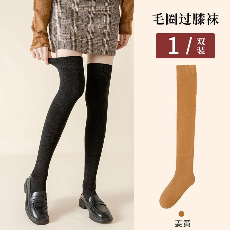 【任选二双29.9元】过膝袜子女高筒袜秋冬季加绒加厚保暖大腿长袜冬天毛圈长筒袜膝盖