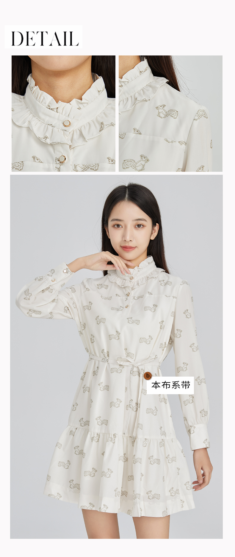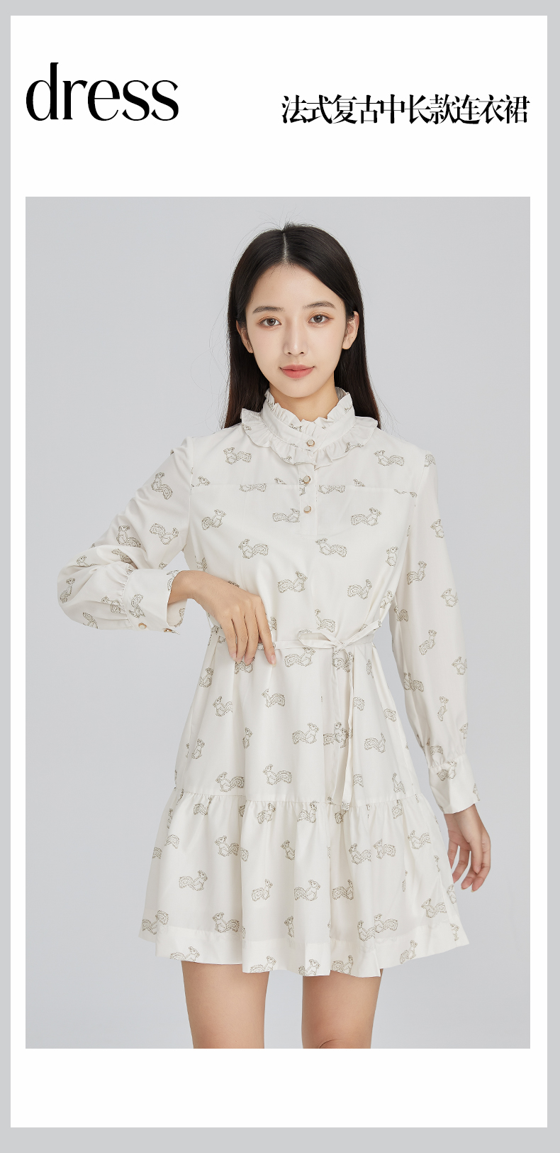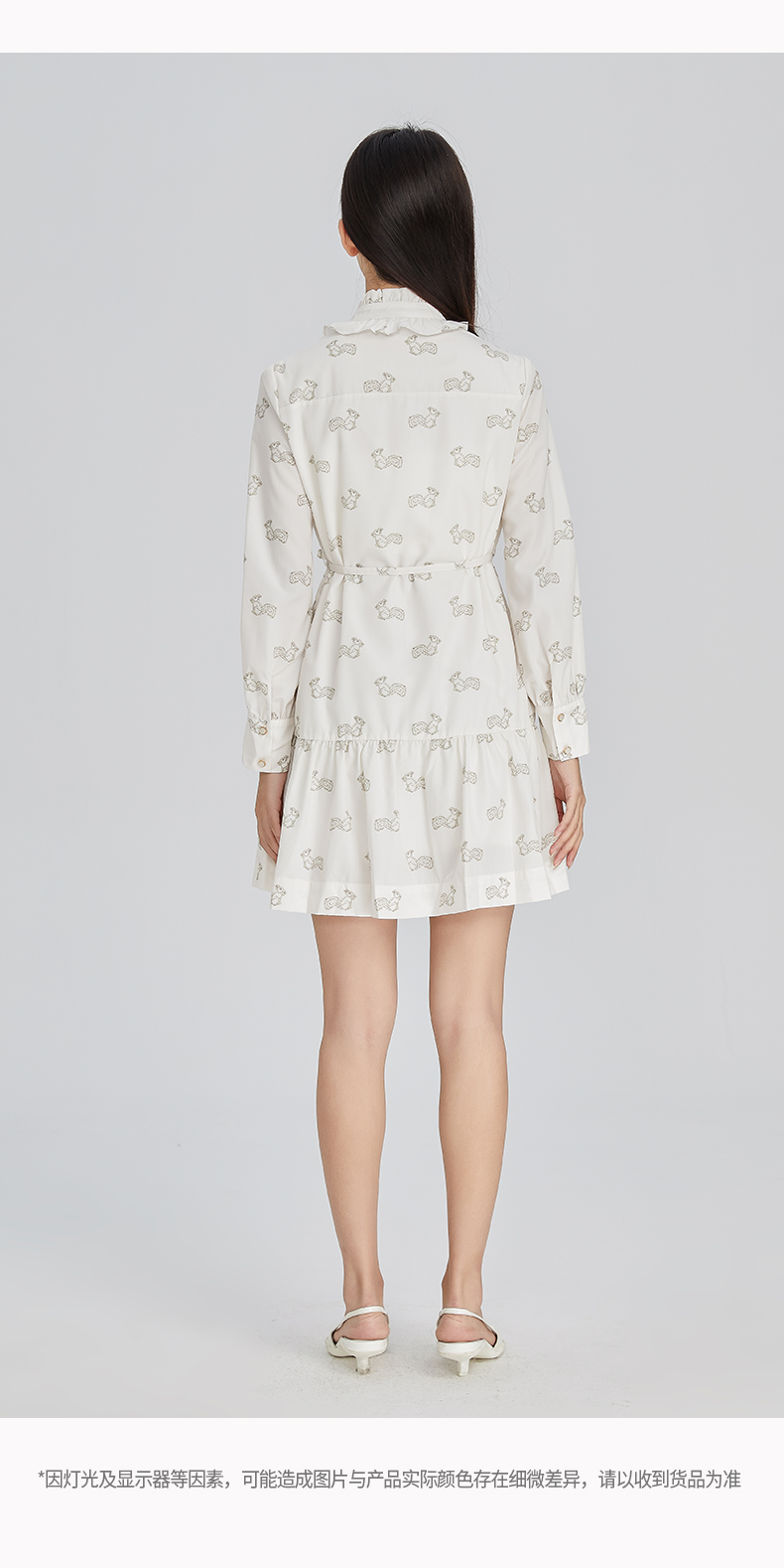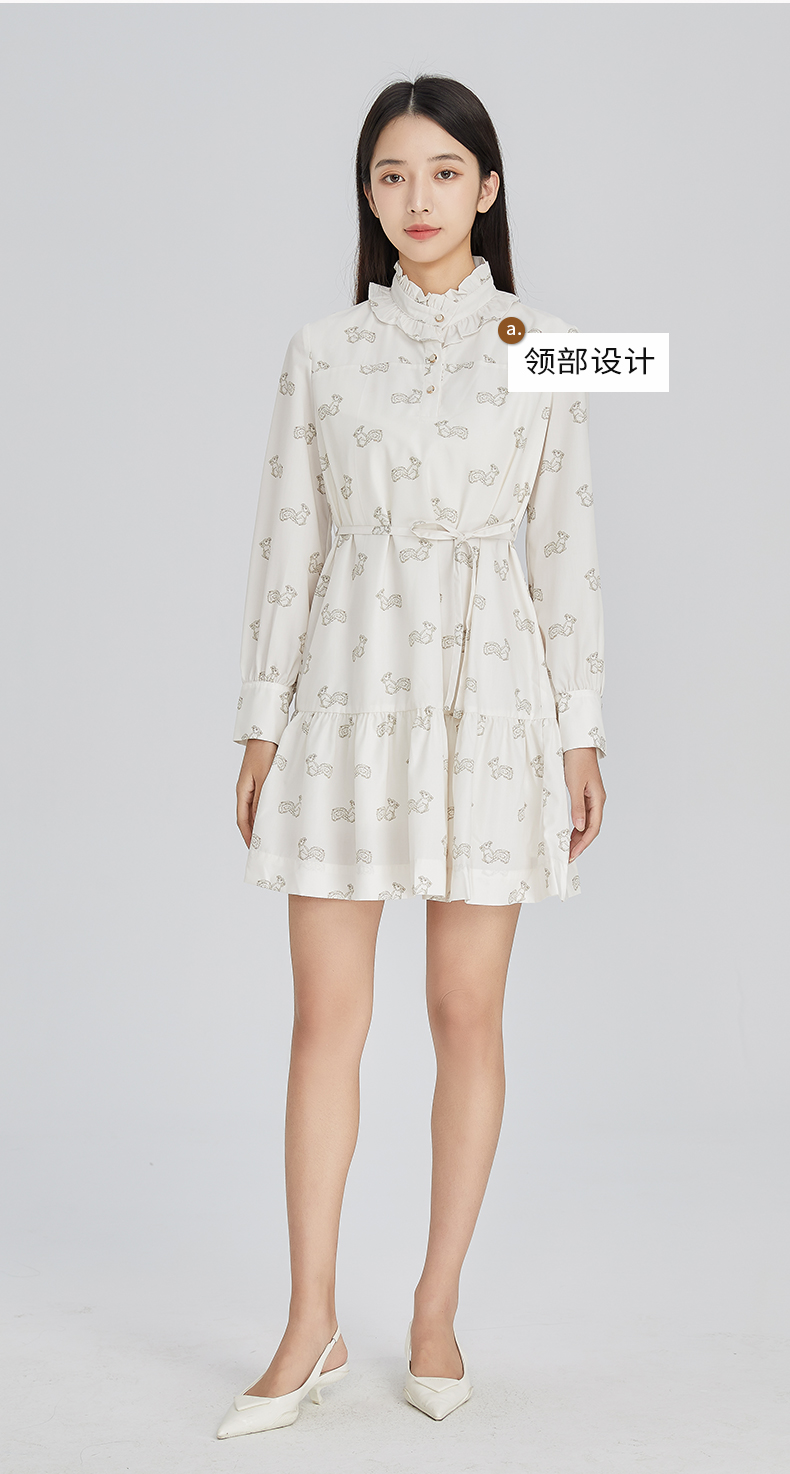 NUTS商场同款春秋季白色木耳领气质收腰长袖连衣裙女315103179B
