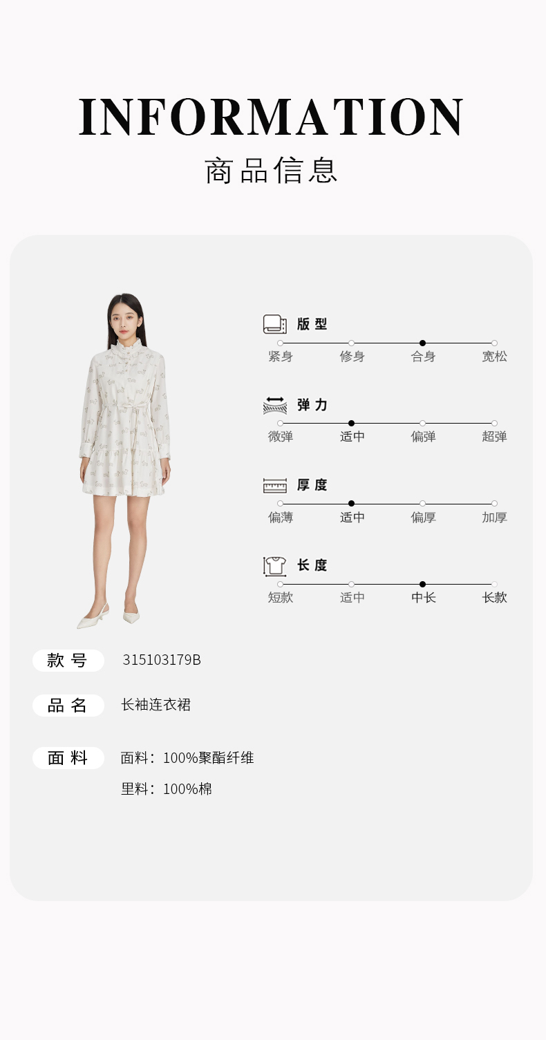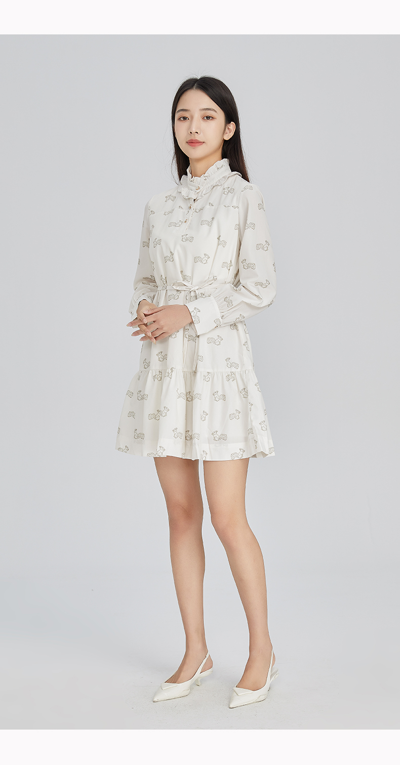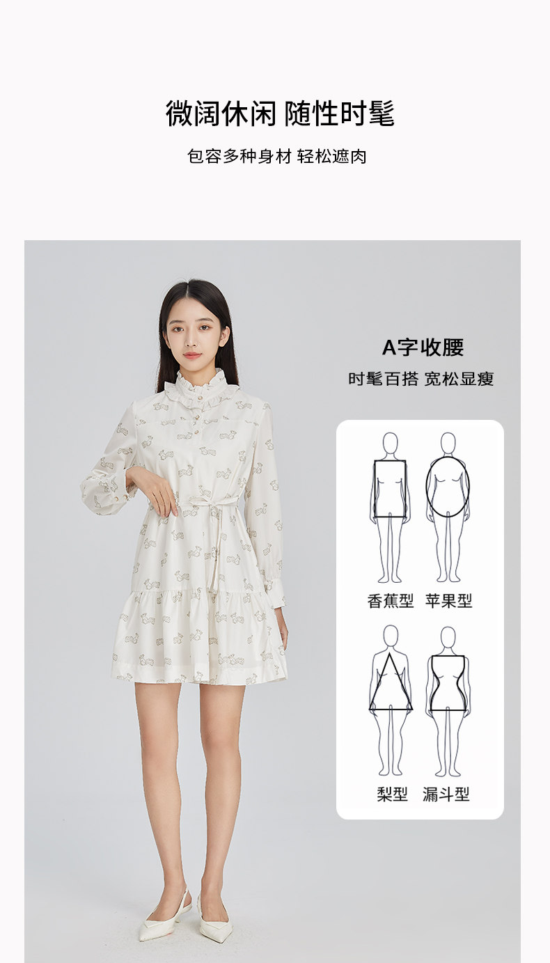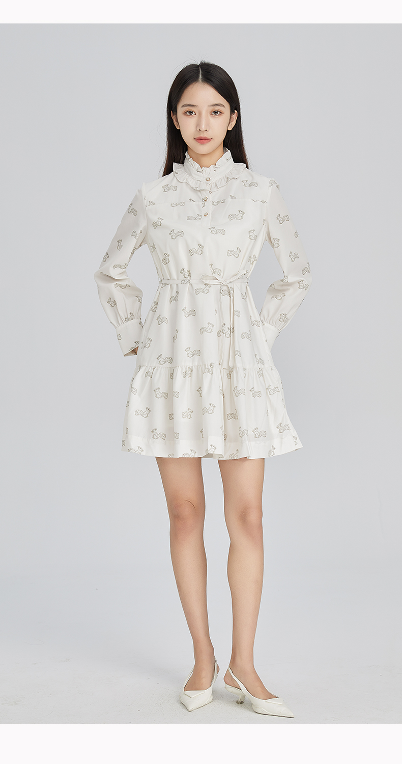 NUTS商场同款春秋季白色木耳领气质收腰长袖连衣裙女315103179B