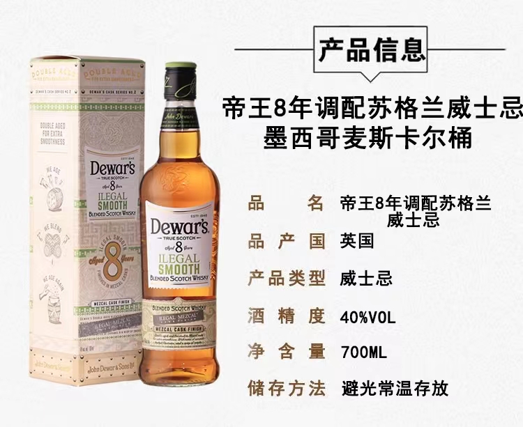 【有税版】帝王8年墨西哥麦斯卡尔桶700ml 调配苏格兰威士忌