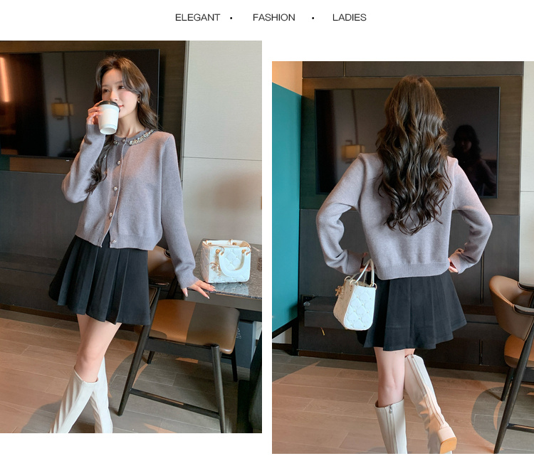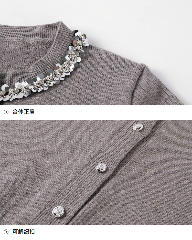 奢姿2024年秋冬新款大码女装圆领减龄上衣胖妹妹拼接亮片针织衫9844634389