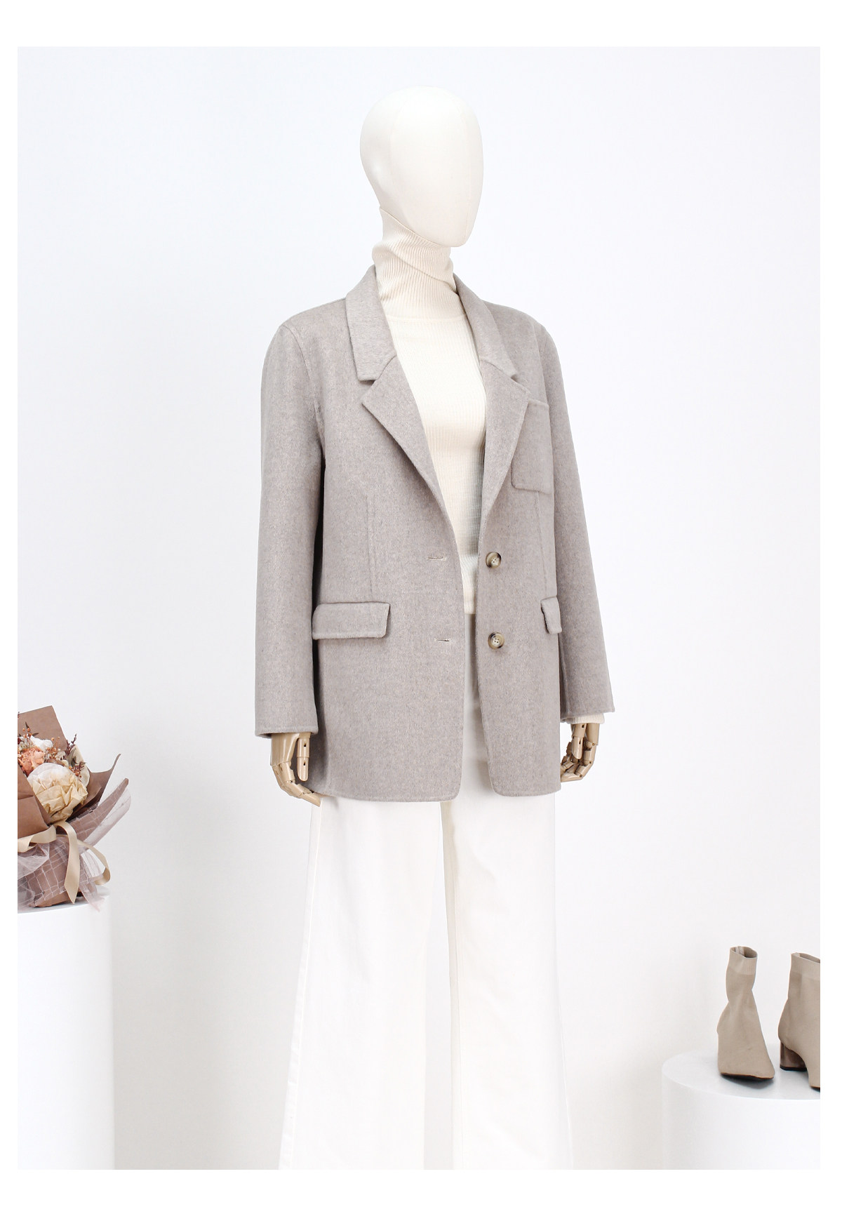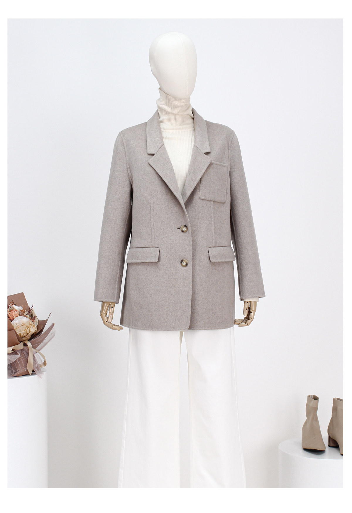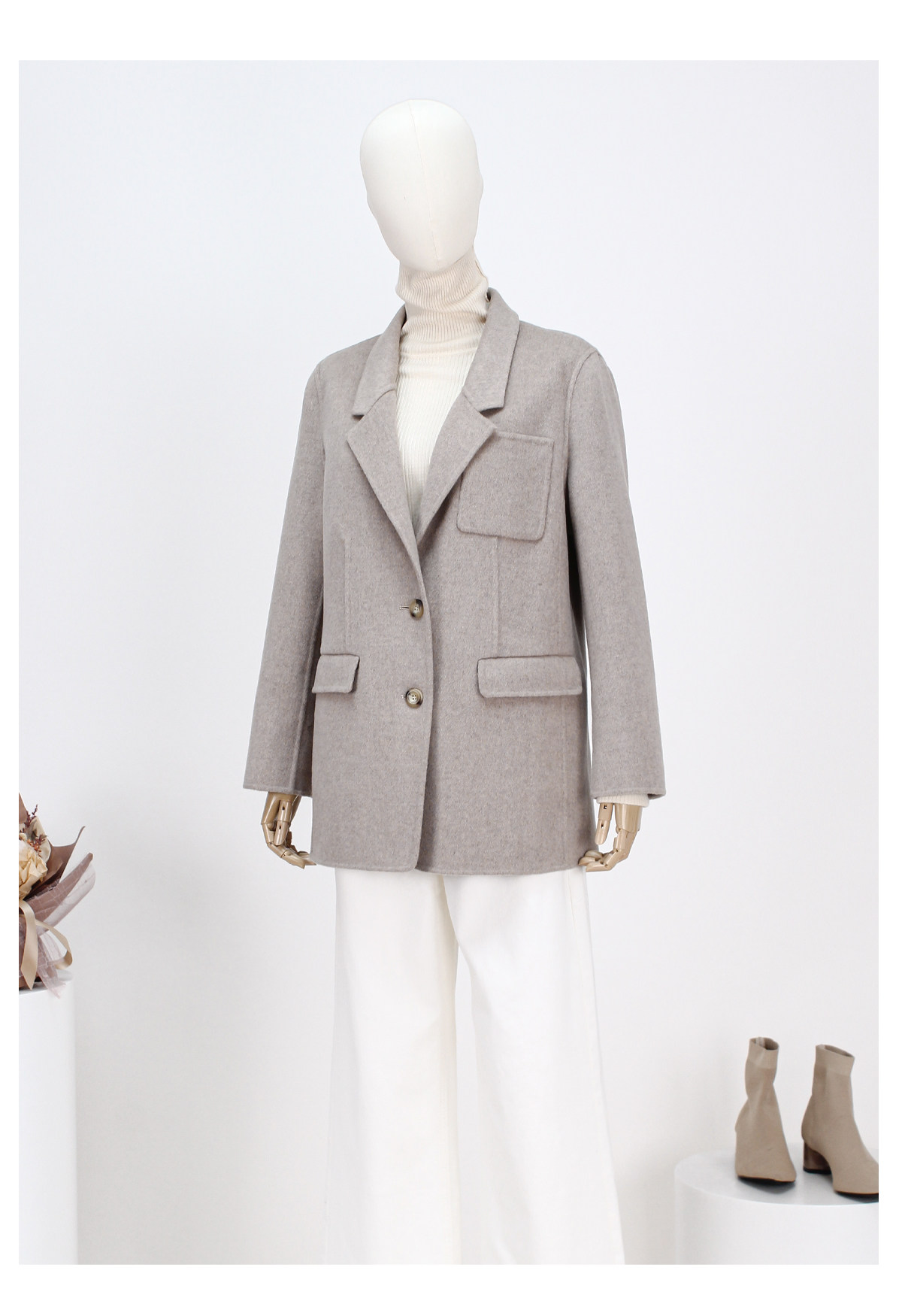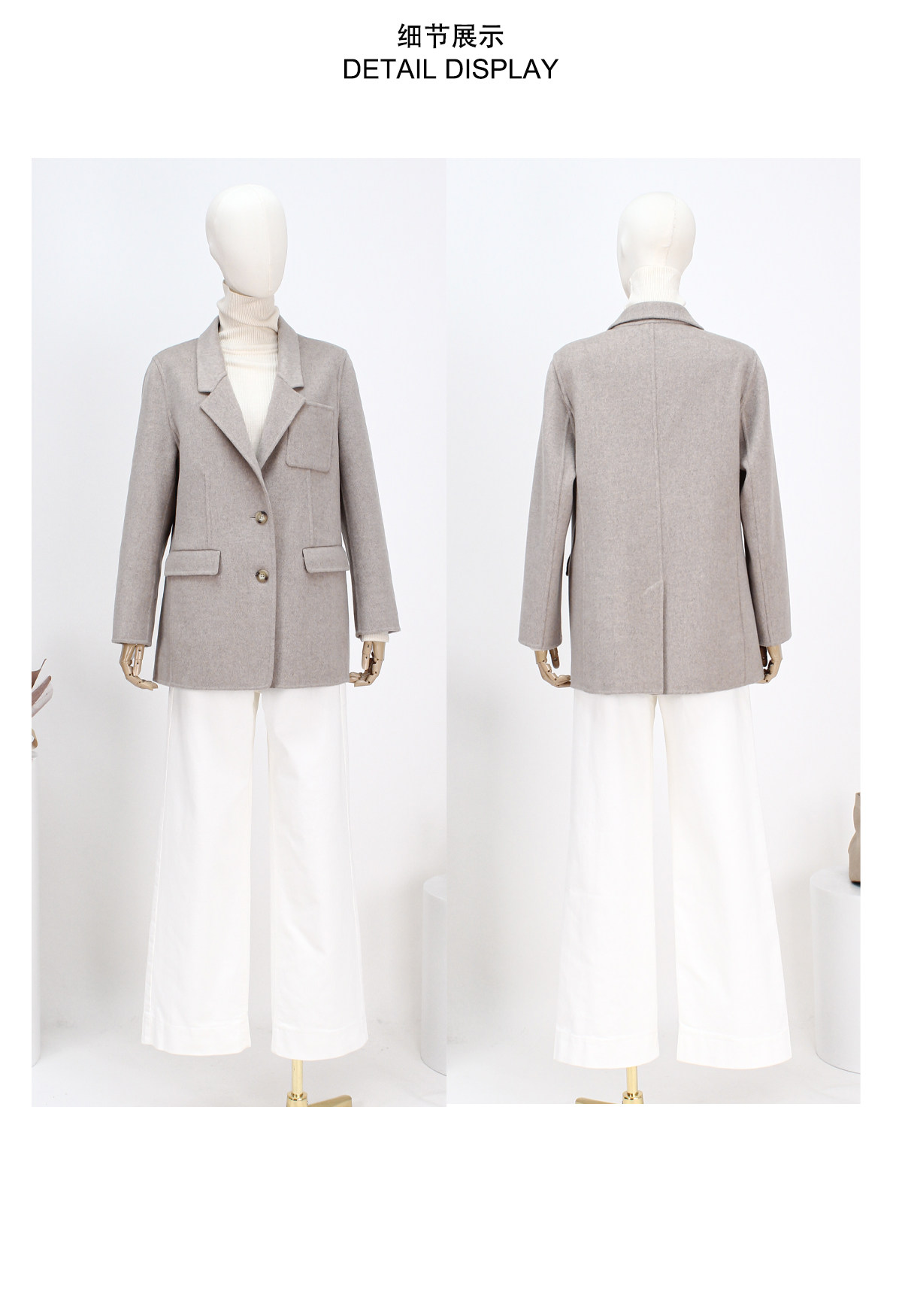 FOCALS冬季新款商务休闲西服领短款双面呢西装外套FRRDB671MW