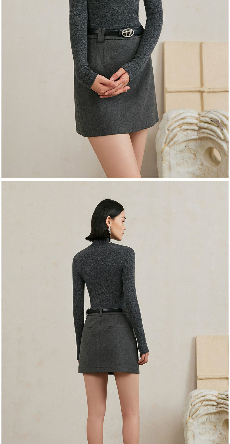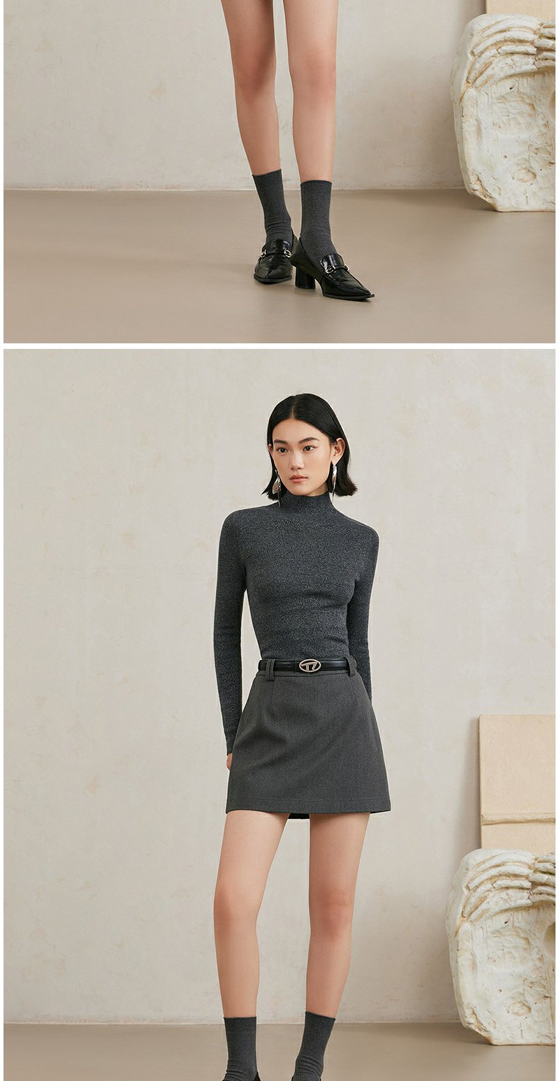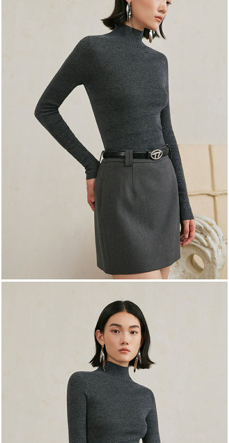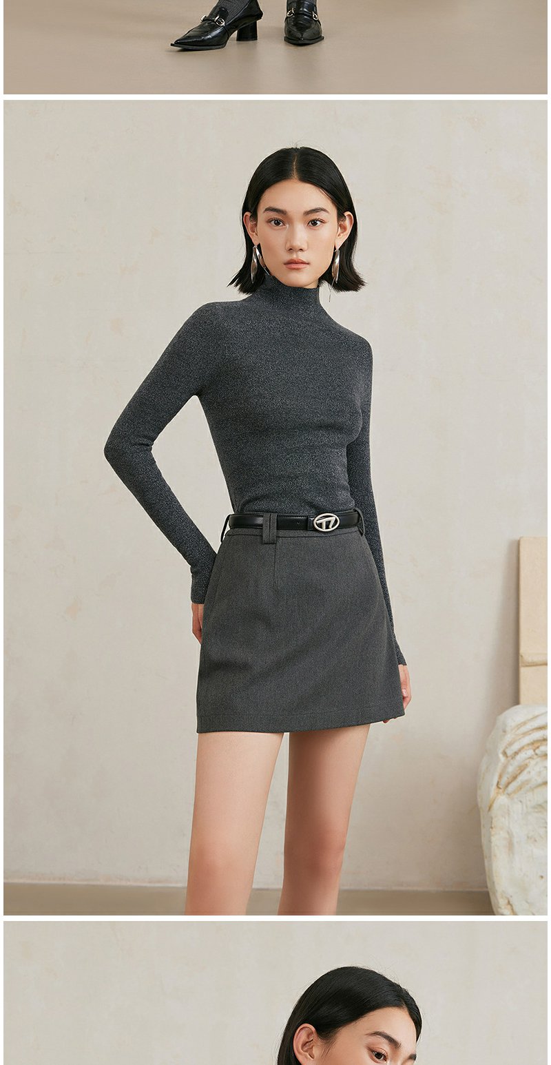 NEELLY纳俪商场同款冬季新款小高领无缝羊毛针织衫女高级灰色毛衣N24103A01070
