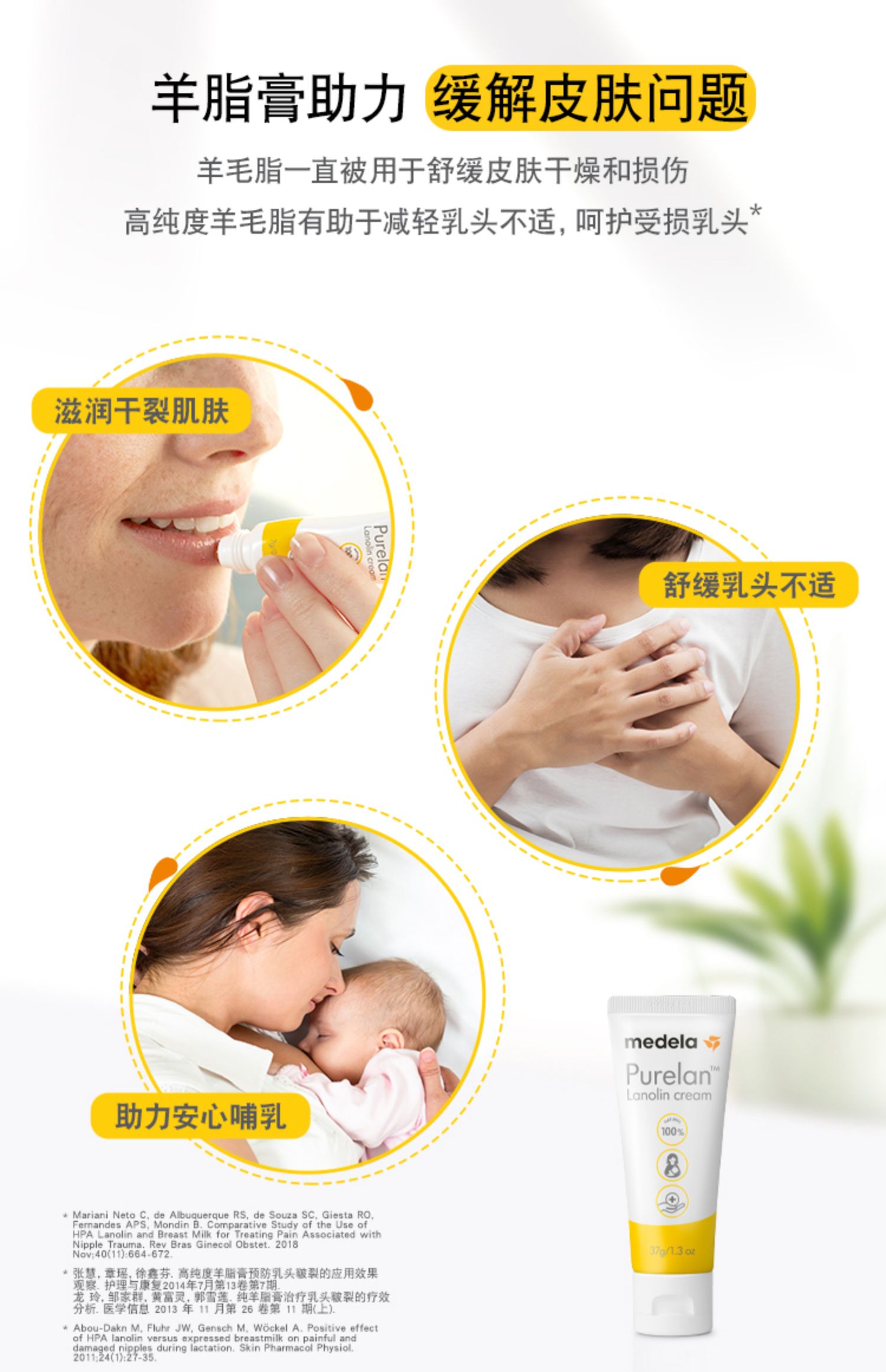 【一般贸易货】美德乐medela乳头膏哺乳期99.5%羊脂膏7g/37g乳头霜孕期防皲裂