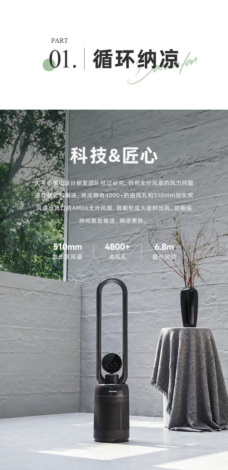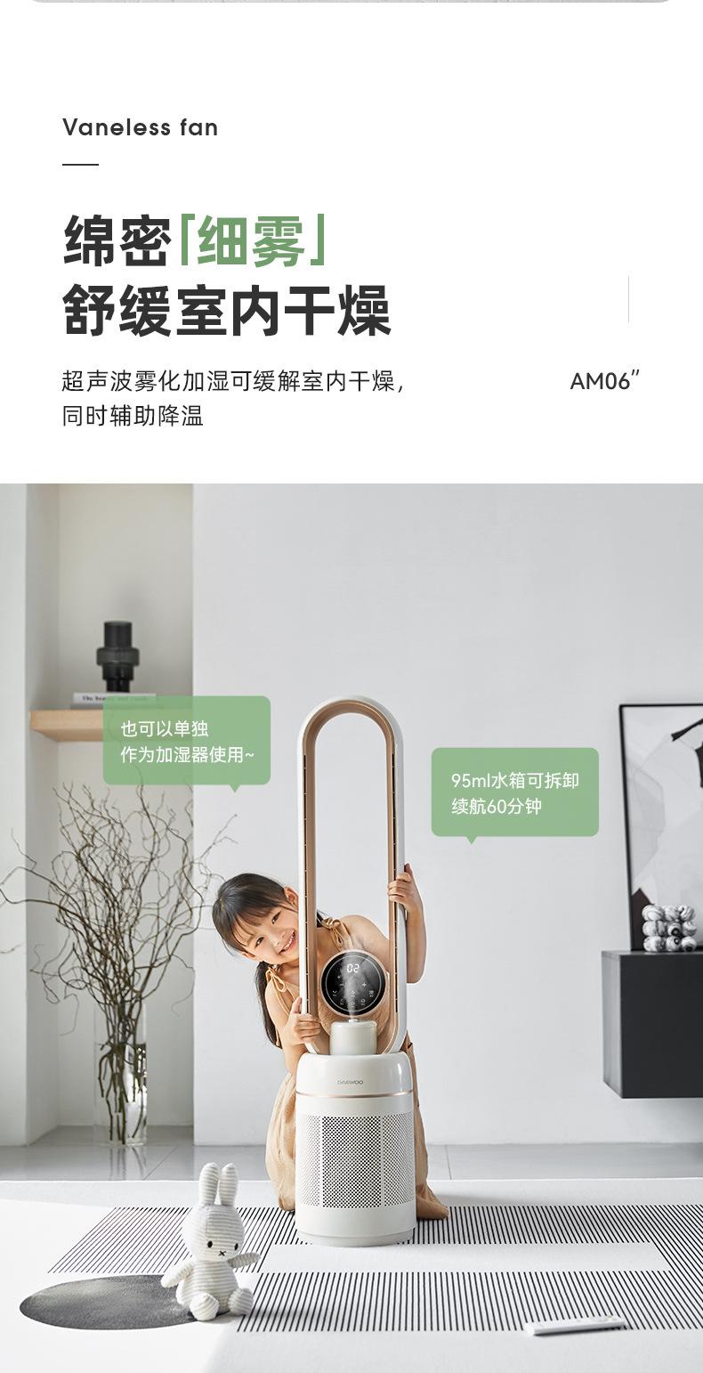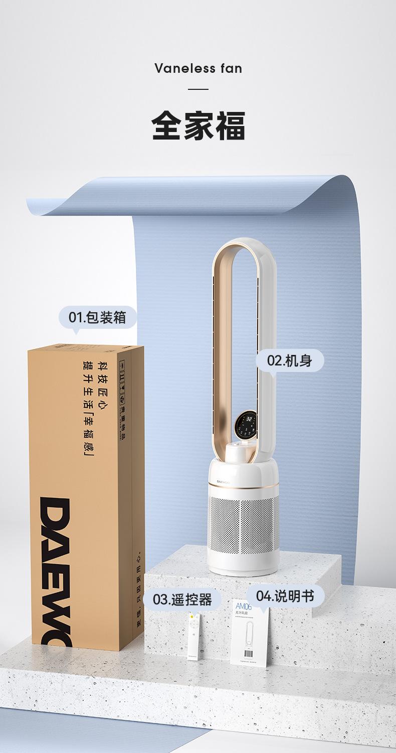 DAEWOO/大宇无叶风扇自带空气净化加湿器电风扇家用智能遥控低噪XHR