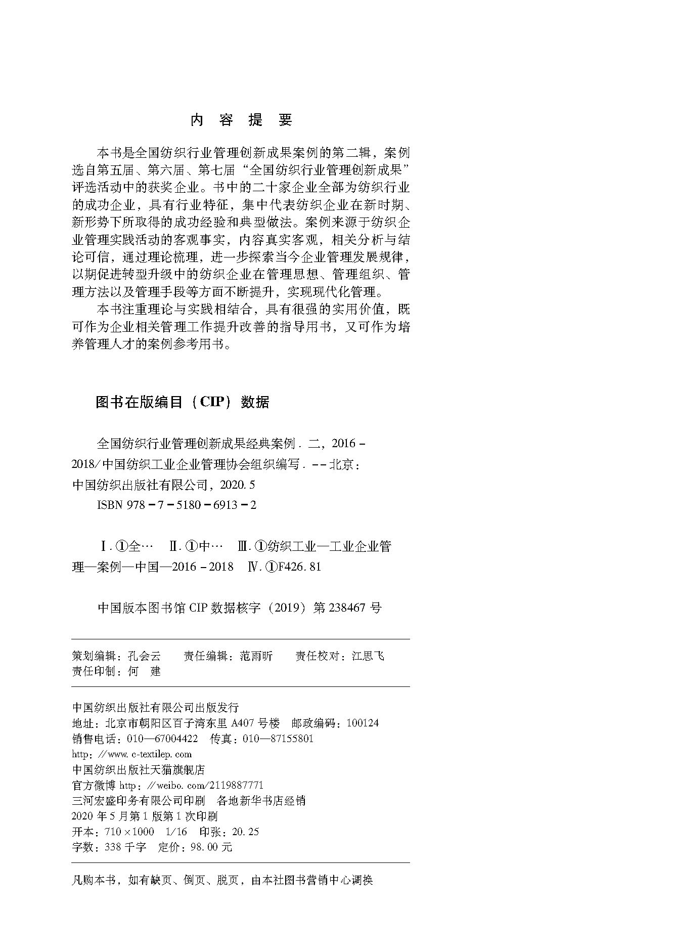 2020新书 全国纺织行业管理创新成果经典案例之二 2016~2018 纺织企业管理创新经验分享书籍 纺织企业深化改革 纺织企业现代化管理