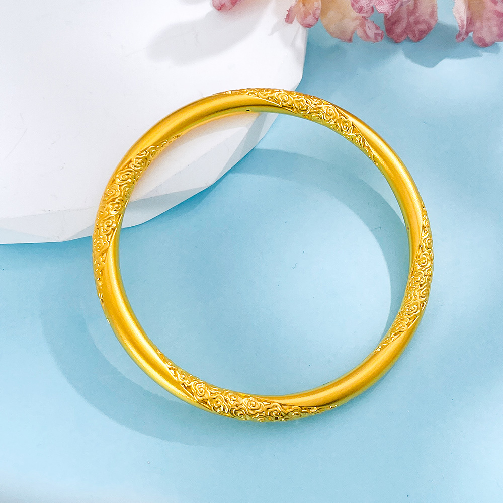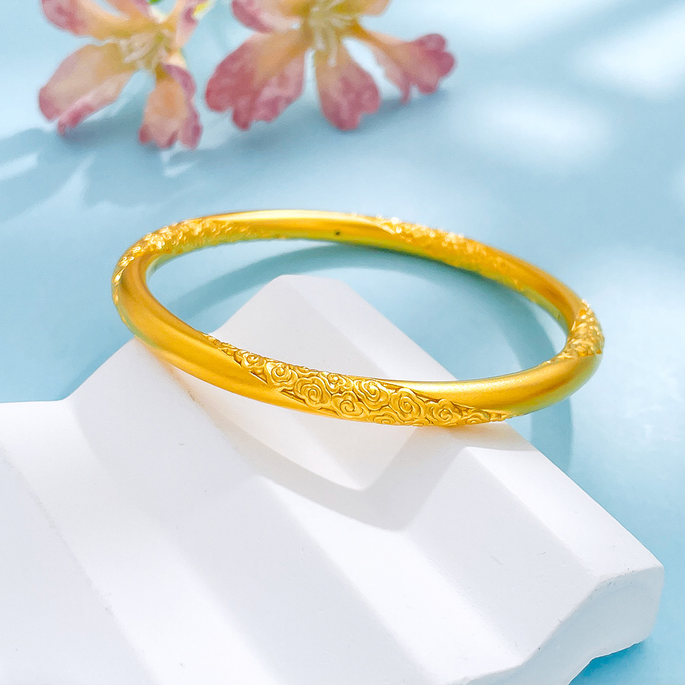 【限时克减150元】足金 3D空心固口手镯古风吉祥如意祥云斜卷草纹圆管手镯(面宽约4.9-5.3mm)(AR3DSZ00032)预售产品下单后不退款不退货不换货不补差价)
