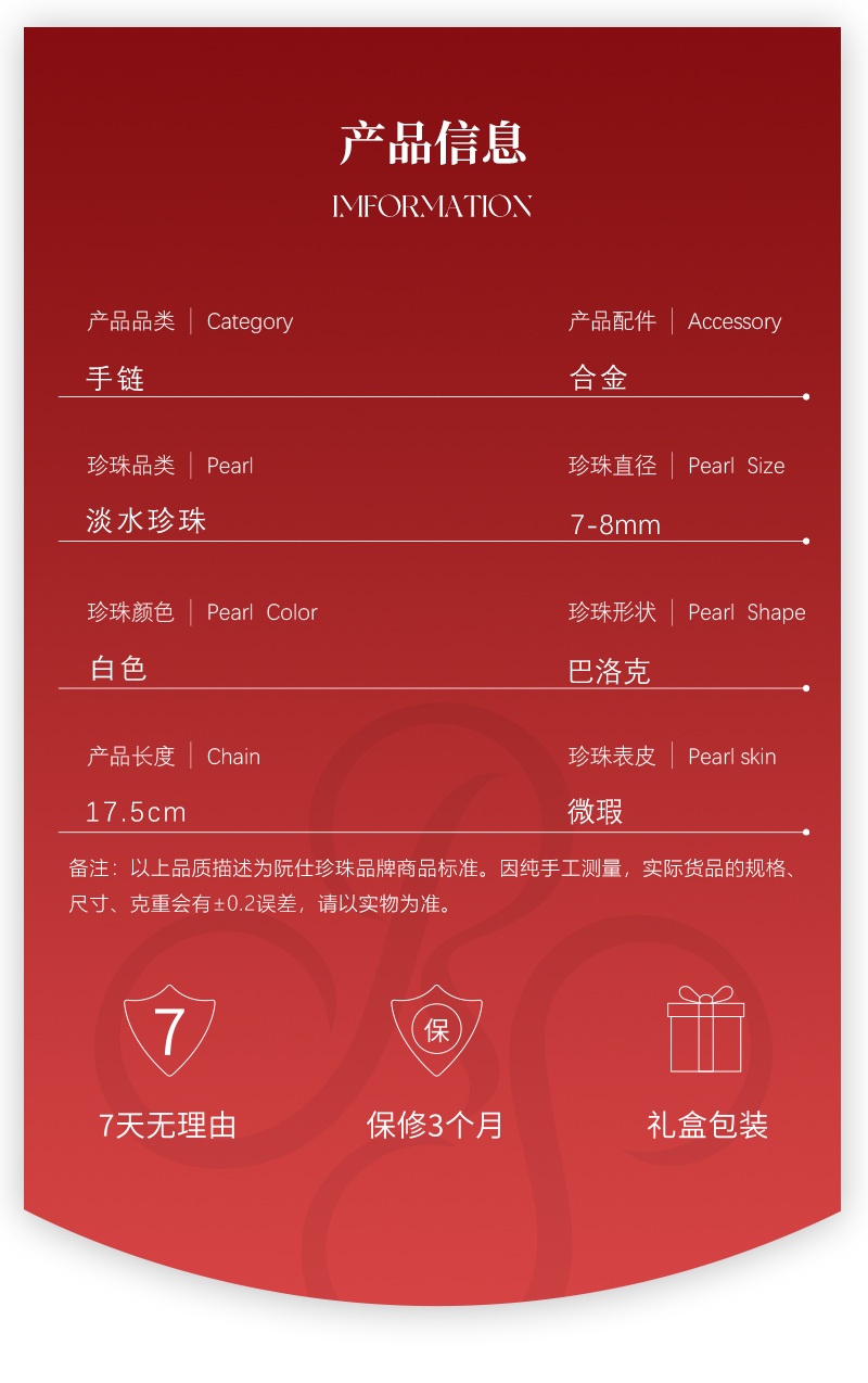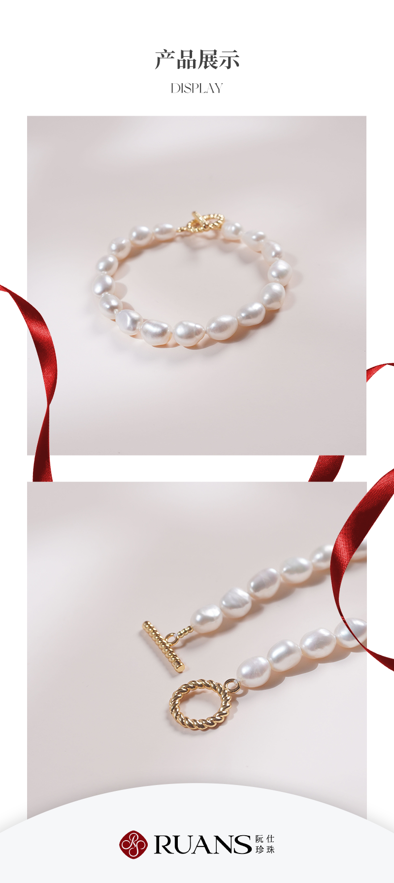 【阮仕珍珠】星絮系列 合金 淡水珍珠手链 7-8mm 巴洛克 S7-8XXD 无证书