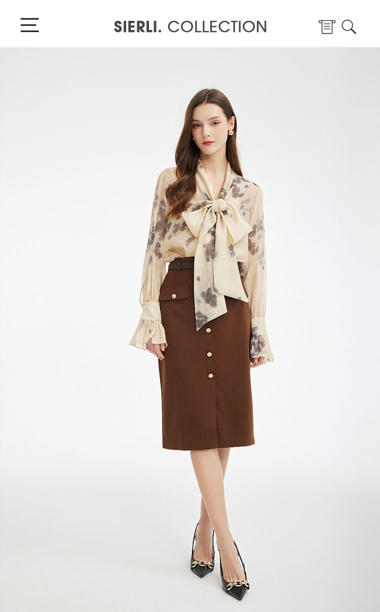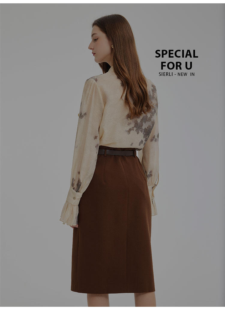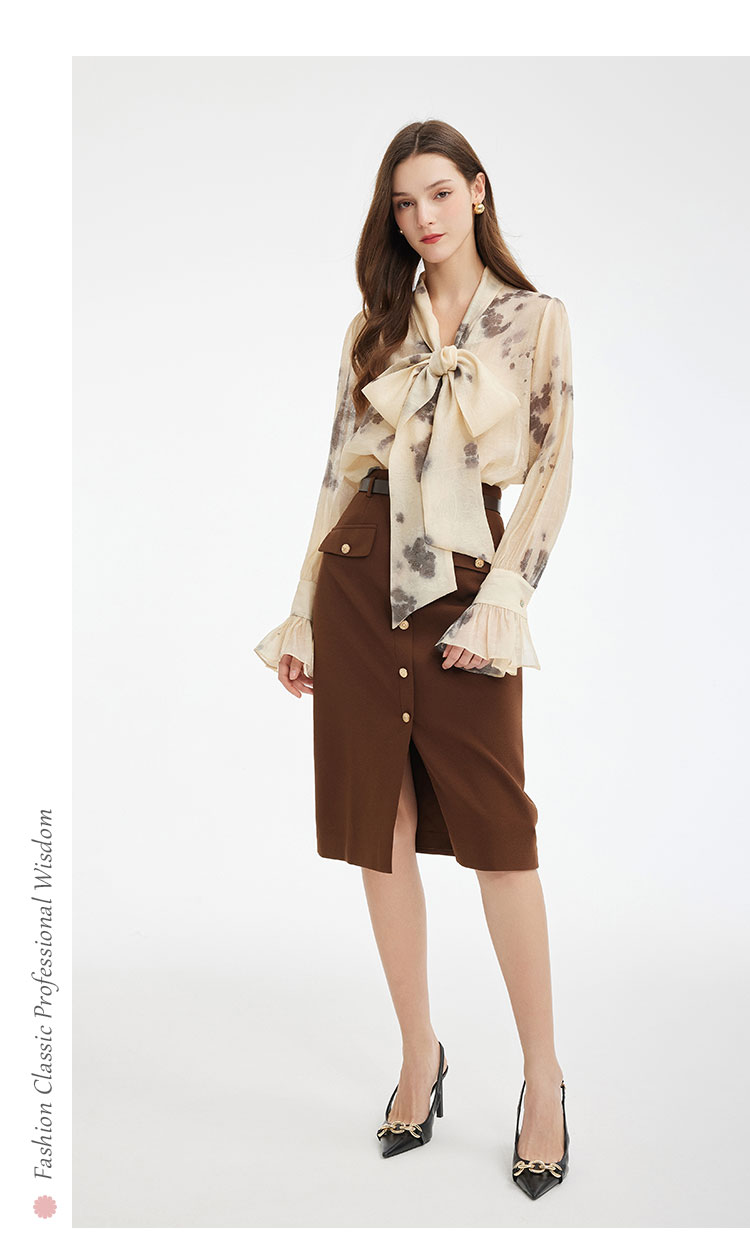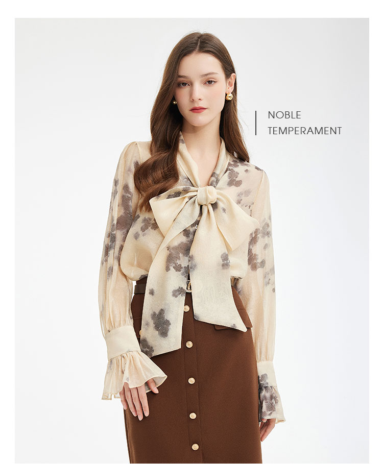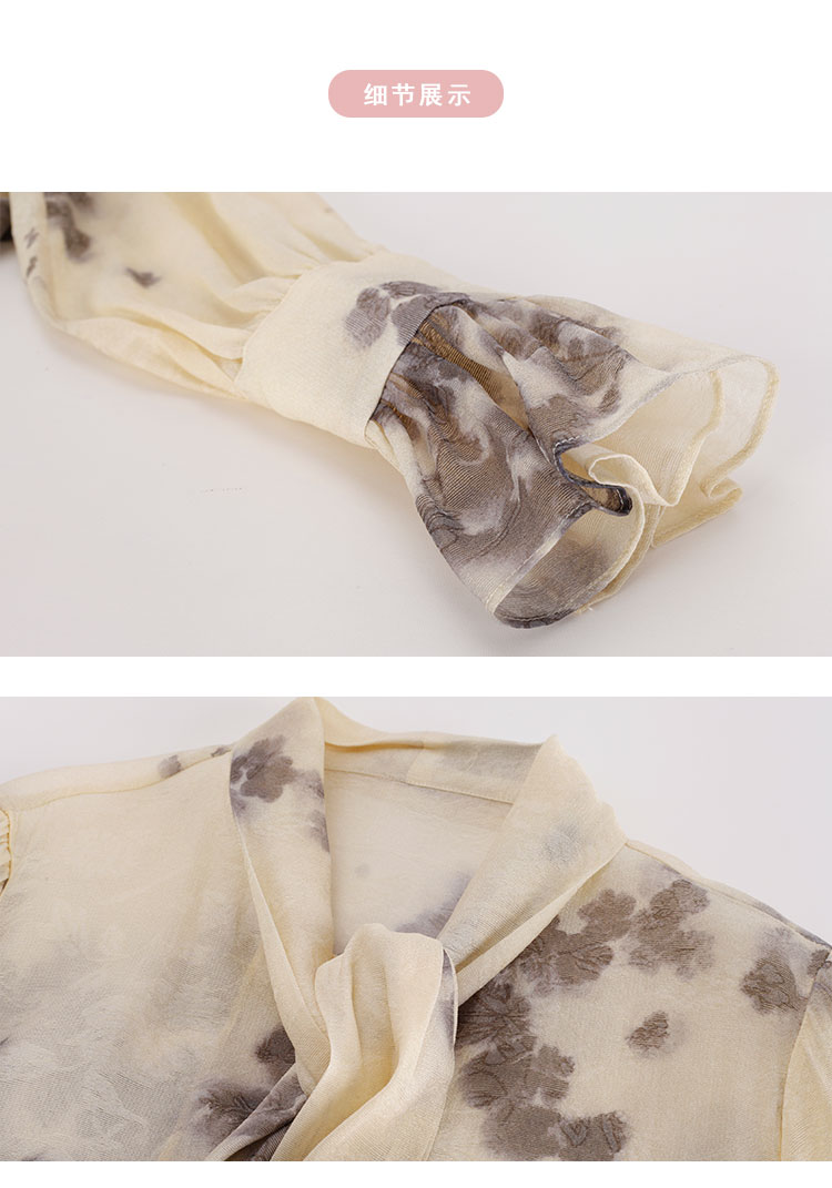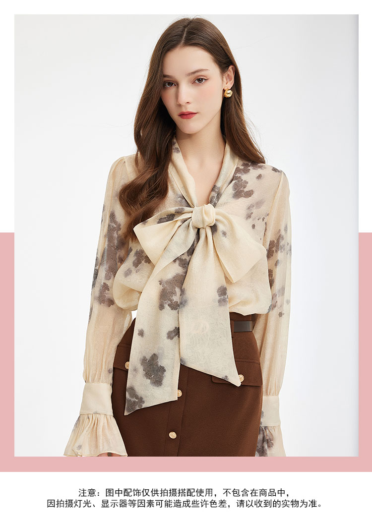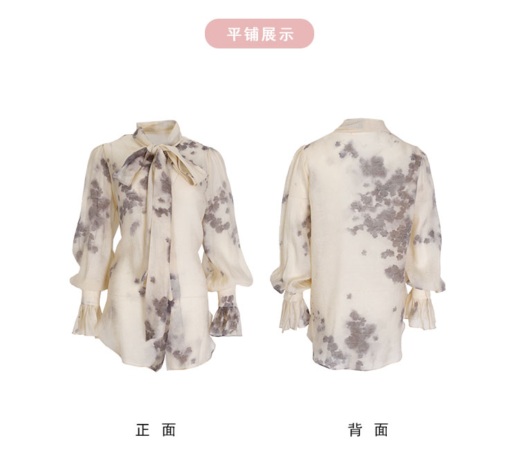 PF268斯尔丽2024新款晕染效果机理质感时尚气质复古飘带长袖上衣