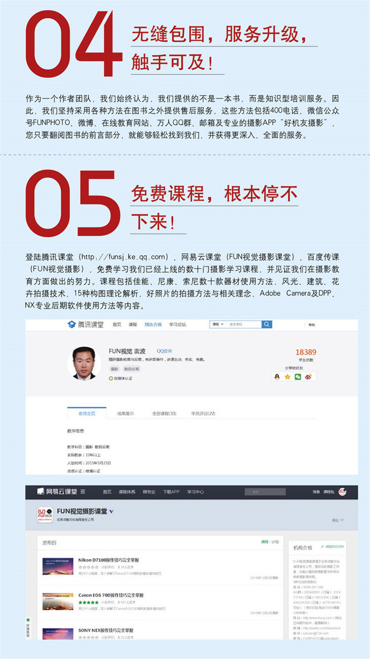 本书是一本全面解析索尼黑卡强大功能、实拍设置技巧及各类拍摄题材实战技法的实用类书籍,将官方手册中没讲清楚的内容以及抽象的功能描述,以实拍测试、精美照片展示、文字详解的形式讲明白、讲清楚。在相机功能及拍摄参数设置方面,本书不仅针对黑卡相机结构、菜单功能以及光圈、快门速度、白平衡、感光度、曝光补偿、测光模式、对焦模式、拍摄模式等设置技巧进行了详细的讲解,更有详细的菜单操作图示,即使是没有任何摄影基础的初学者也能够根据这样的图示,玩转相机的菜单及功能设置。在Wi-Fi功能方面,本书详细讲解了黑卡Wi-Fi功能在拍摄时的用途,如何将使用黑卡相机拍摄的照片发送给智能手机以及如何使用智能手机连接相机进行拍摄,使用户可以利用黑卡相机即时分享照片。在实战技术方面,本书以大量精美的实拍照片,深入剖析了使用黑卡拍摄人像、风光、动物、花卉、建筑、美食、人文纪实、旅游等常见题材的技巧,以便读者快速提高摄影技能,达到较高的境界。经验和解决方案是本书的亮点之一,本书精选了数位资深摄影师总结出来的大量关于黑卡相机的使用经验及技巧,这些来自一线摄影师的经验和技巧,能够帮助读者少走弯路,让您感觉身边时刻有“高手点拨”。本书还汇总了摄影爱好者初上手使用黑卡相机时可能会遇到的一些问题、出现的原因及解决方法,相信能够解决许多爱好者遇到这些问题求助无门的苦恼。全书语言简洁,图示丰富、精美,即使是接触摄影时间不长的新手,也能够通过阅读本书在较短的时间内精通黑卡相机的使用并提高摄影技能,从而拍摄出令人满意的摄影作品。