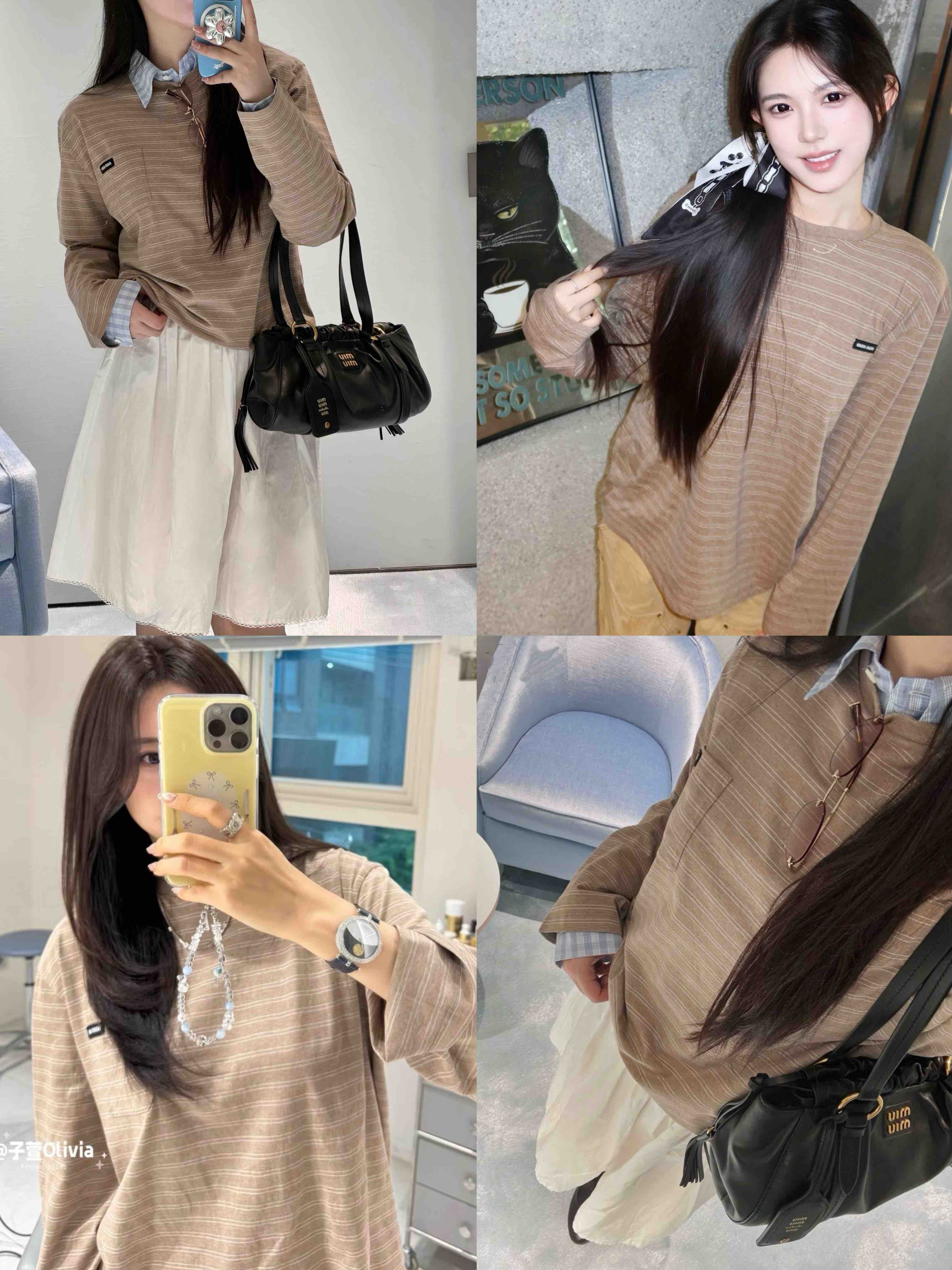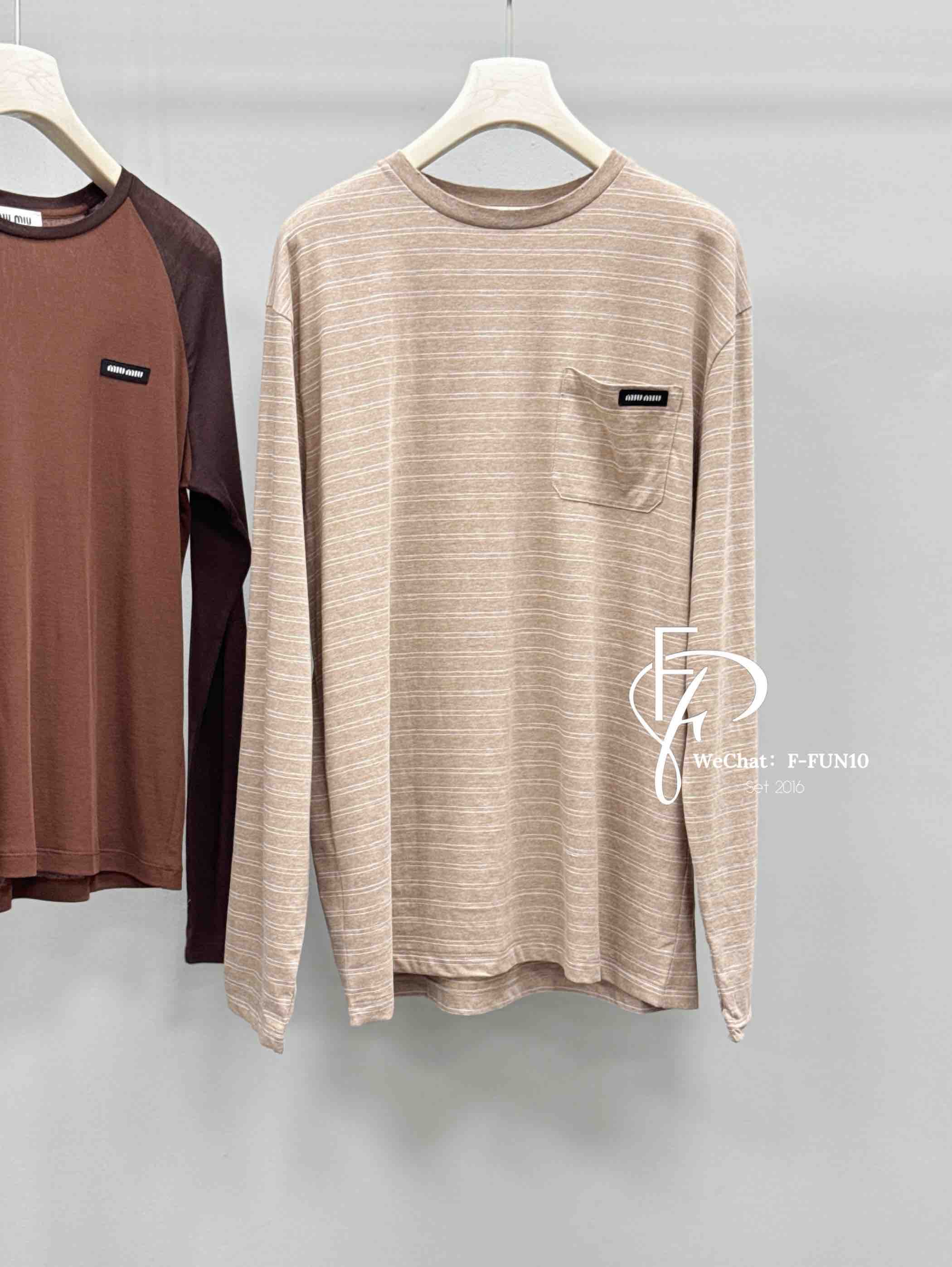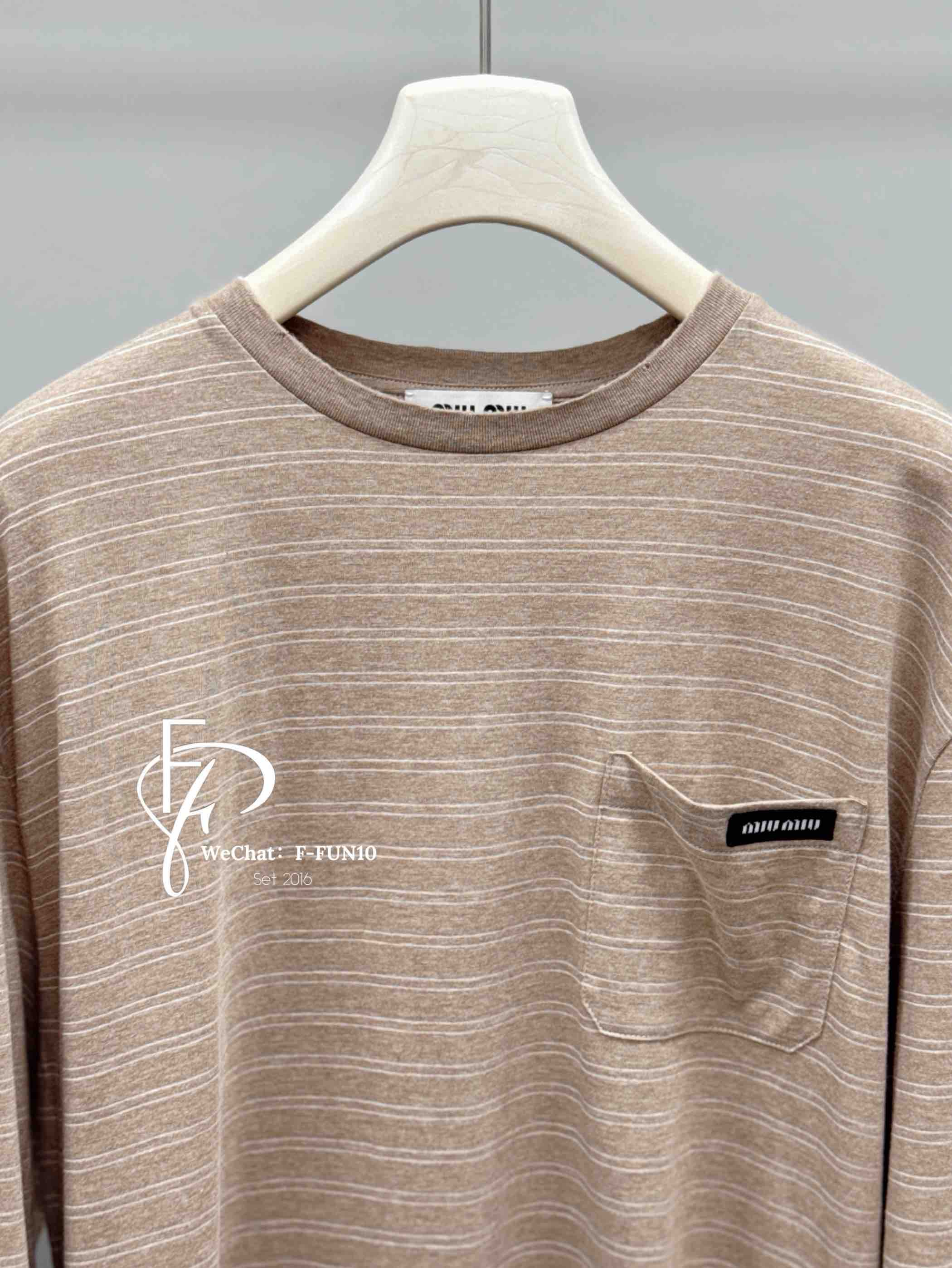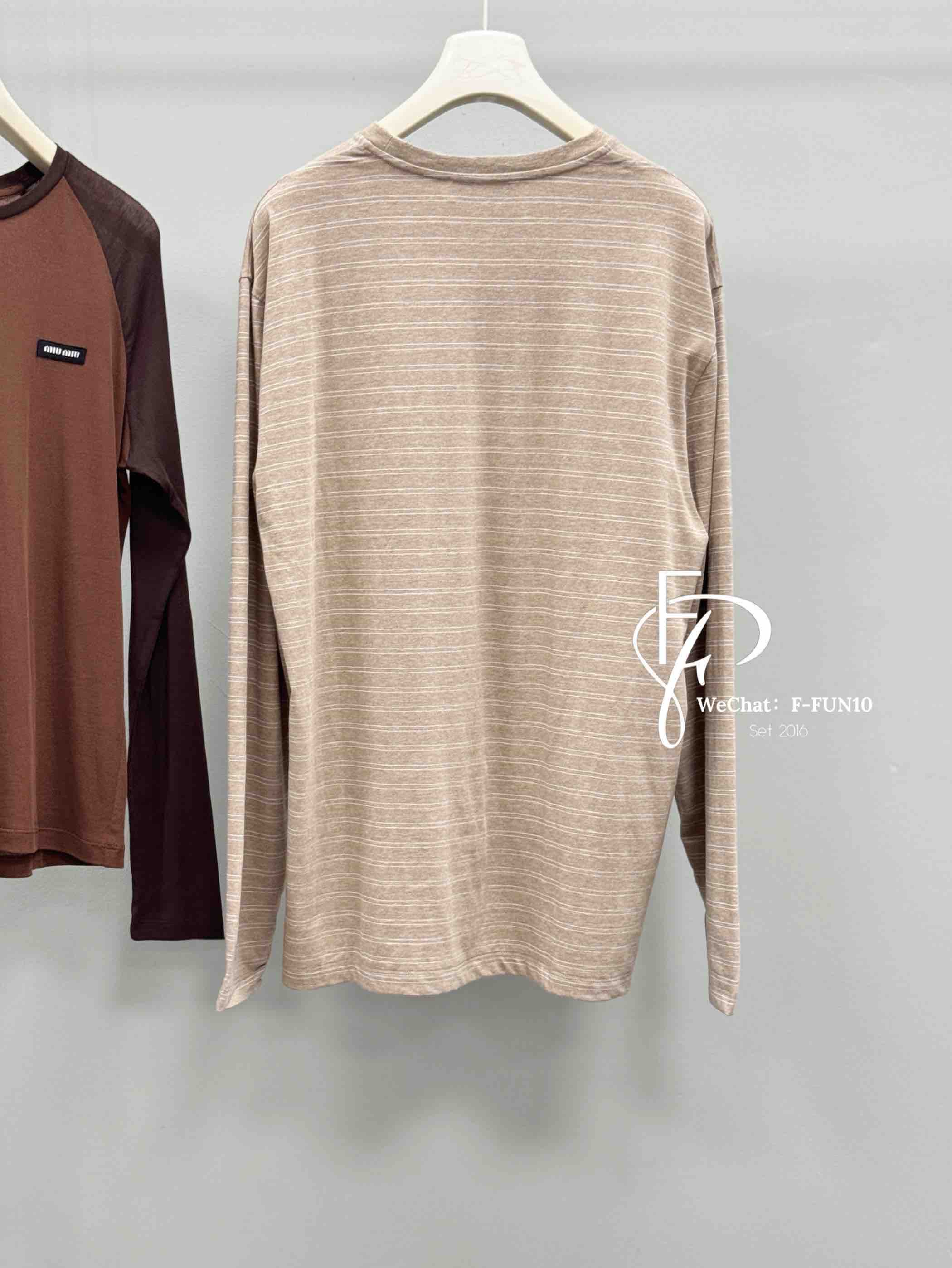 MIU-T 奶茶条纹长袖